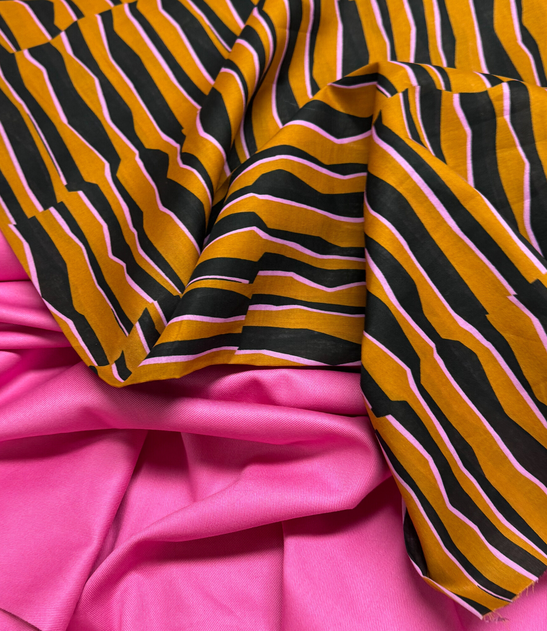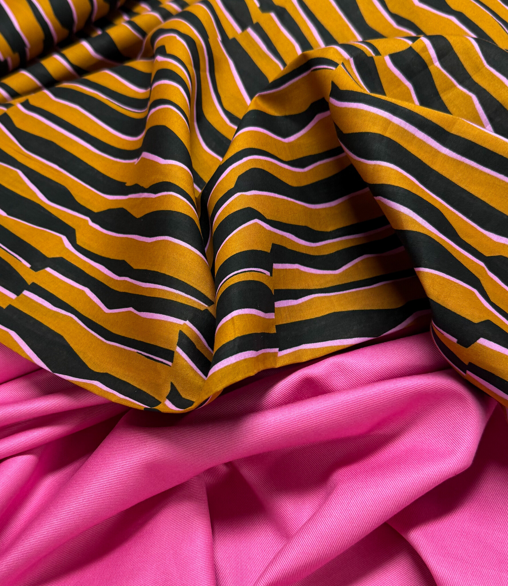 Ideal for summer tops and dresses. This fabric combines beautifully with fuchsia, feel free to ask for advice for a matching fabric. Our bamboo fuchsia , fuchsia linen or gabardine are perfect!