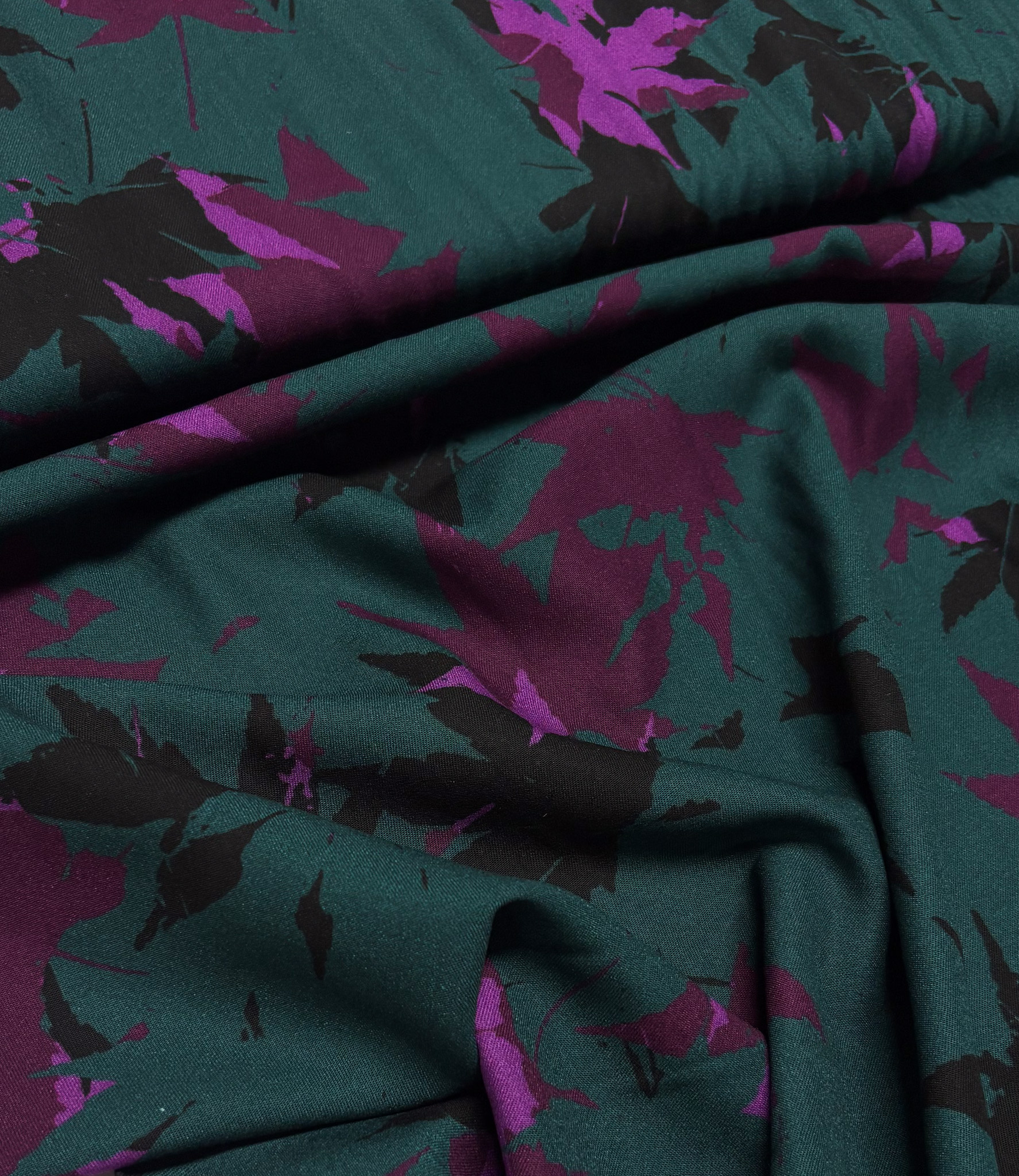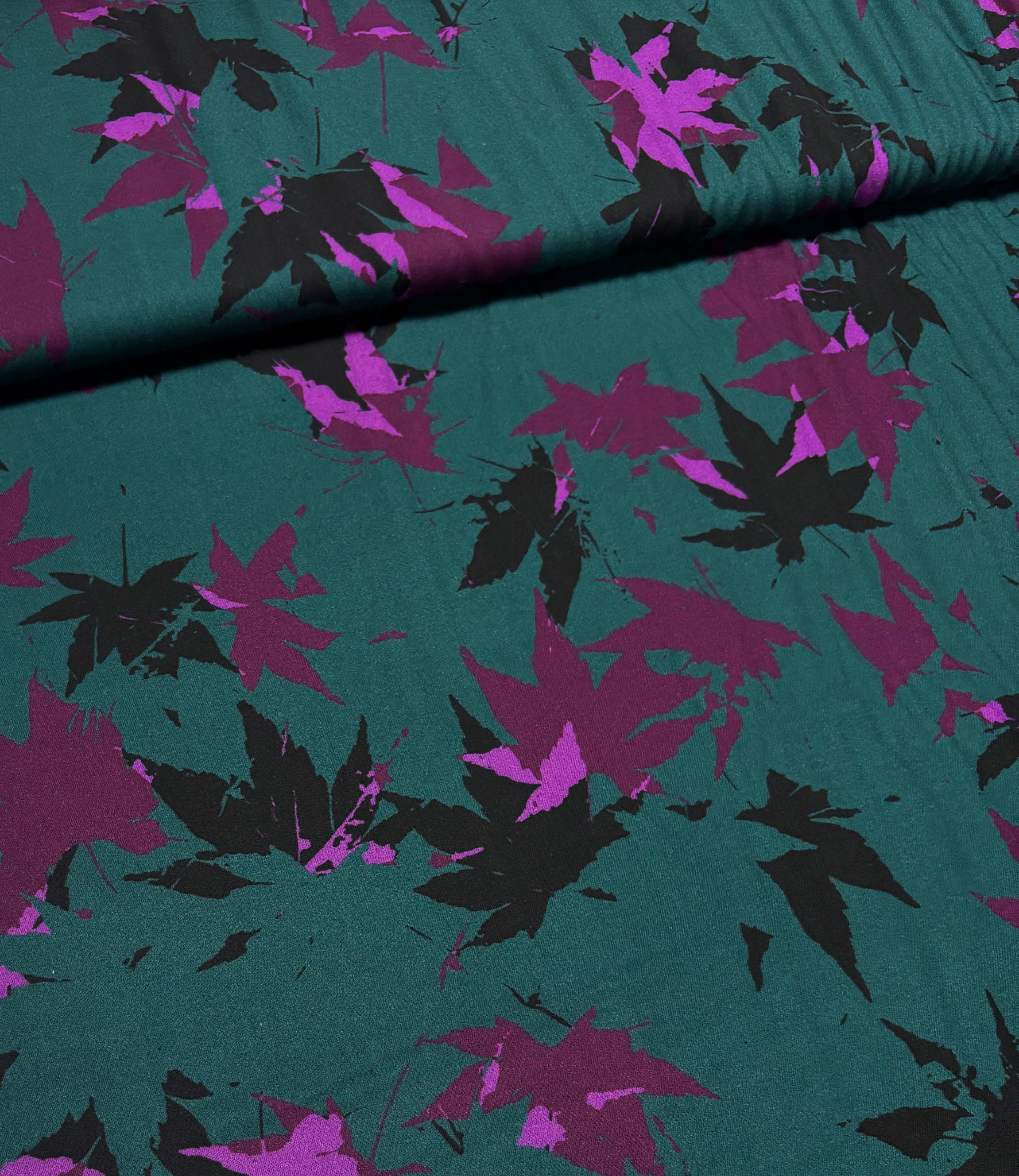 A beautiful viscose with purple leaves from Thorsten Berger. Perfect for blouses, linings, ...