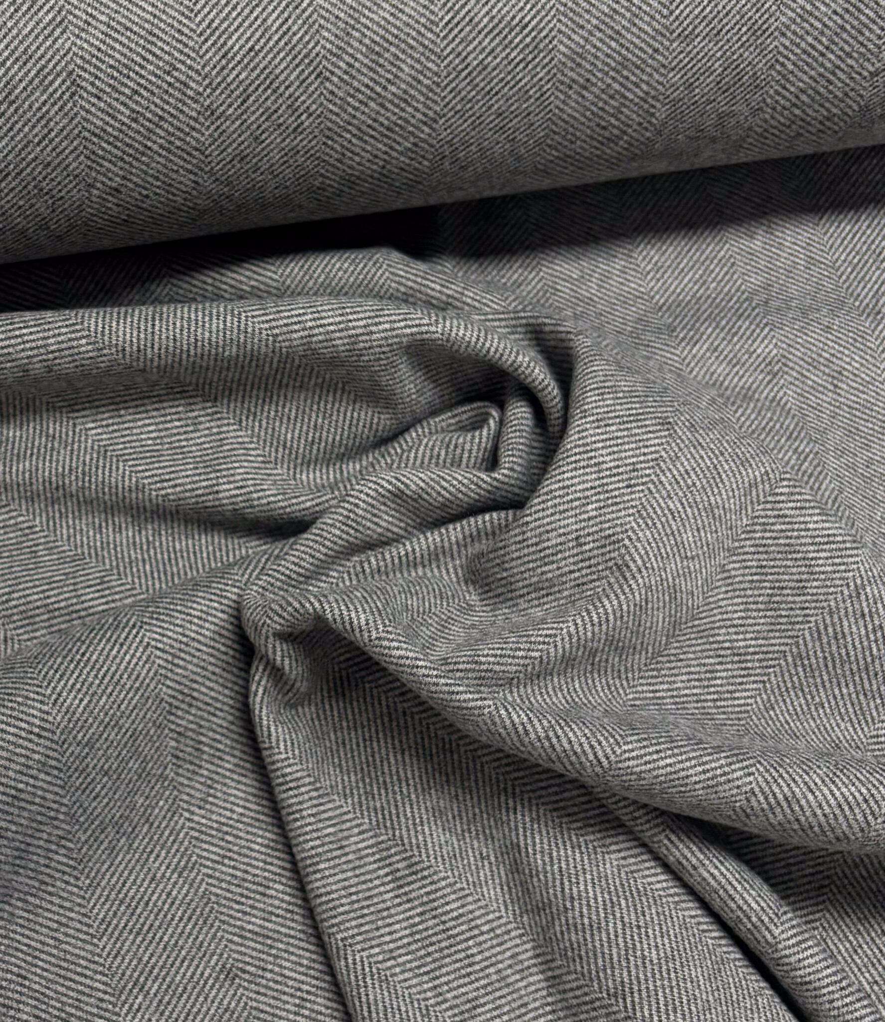 anthracite herringbone - wool touch jacquard - soft quality, perfect trouser fabric - Madeline De Stoffenmadam