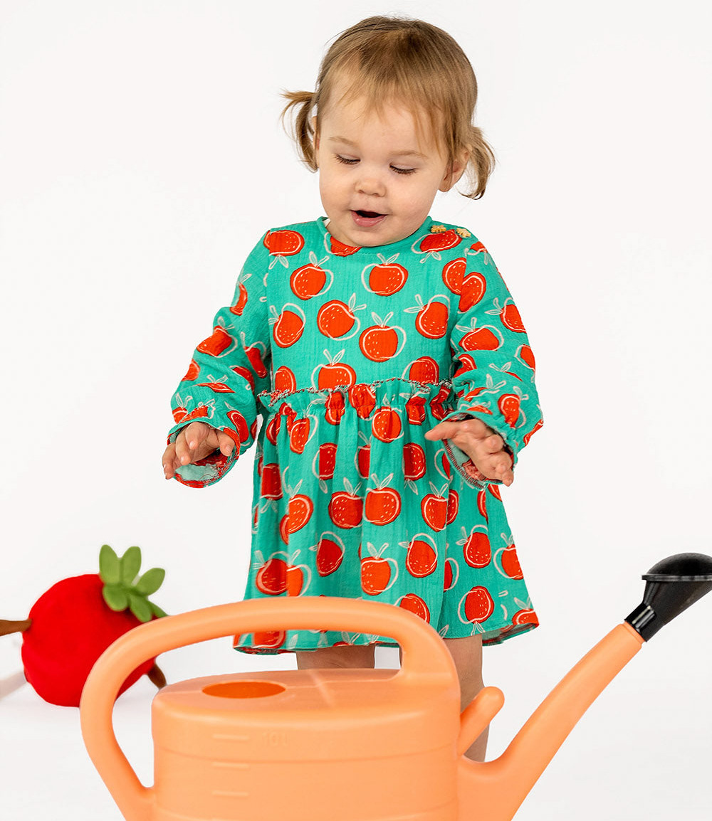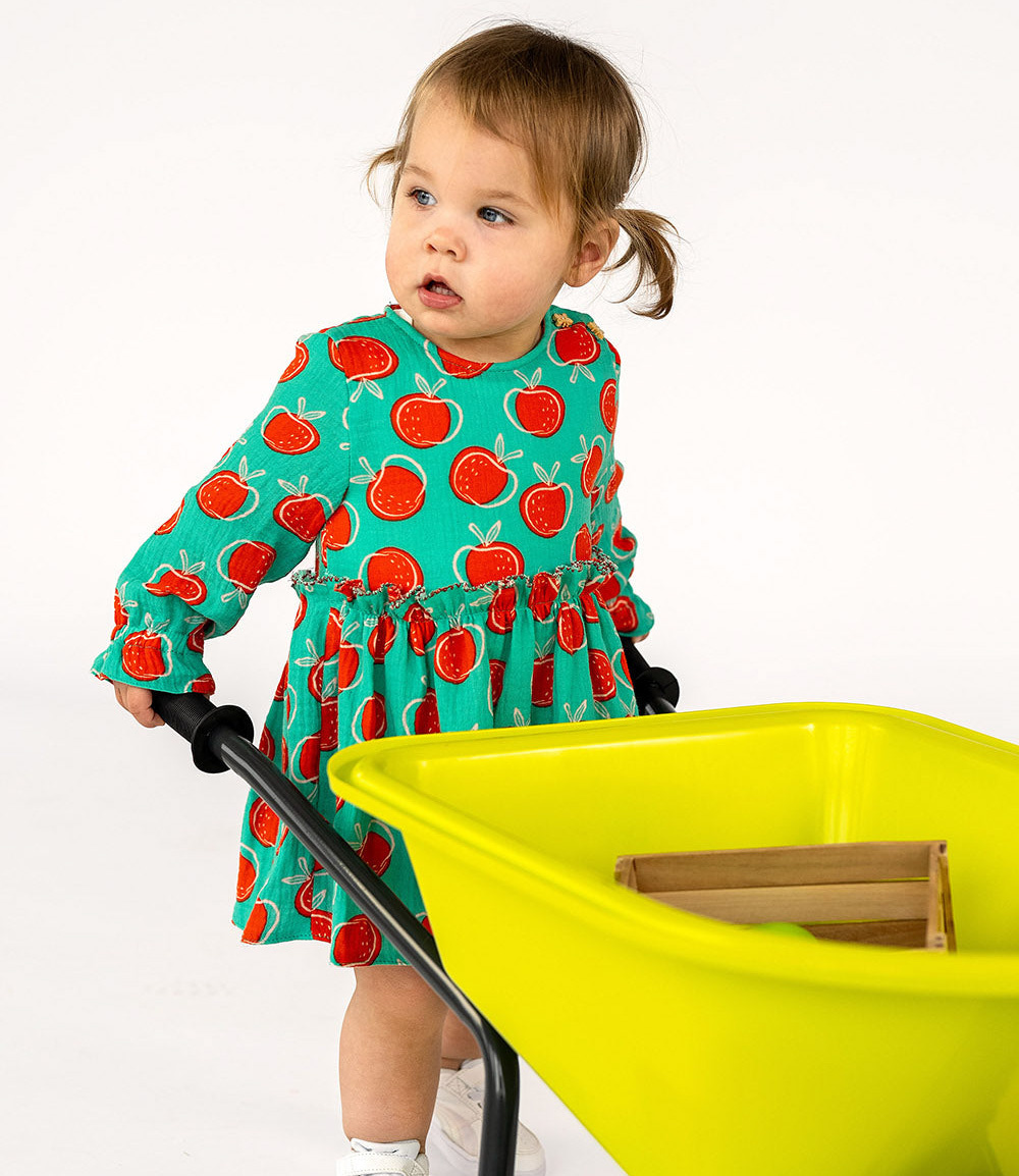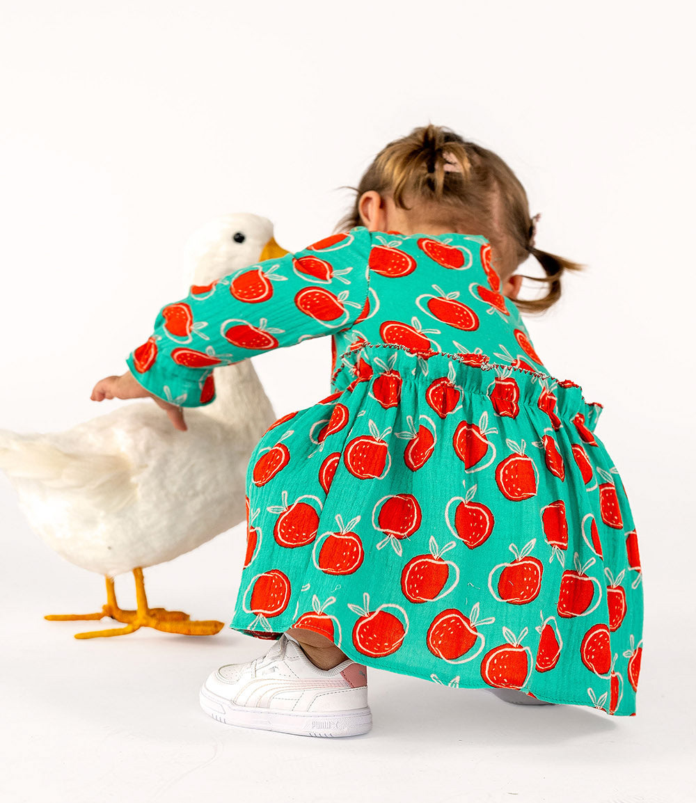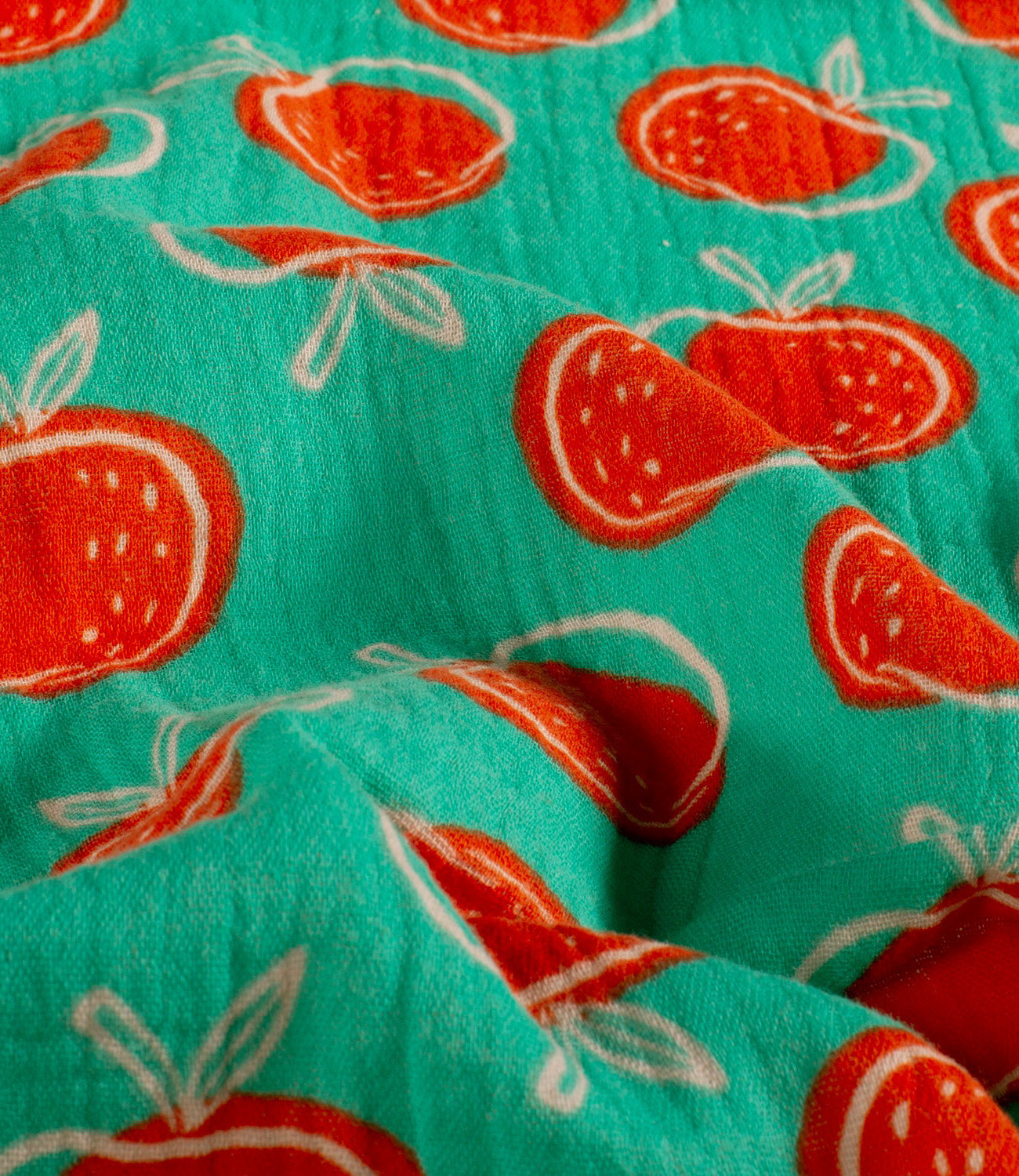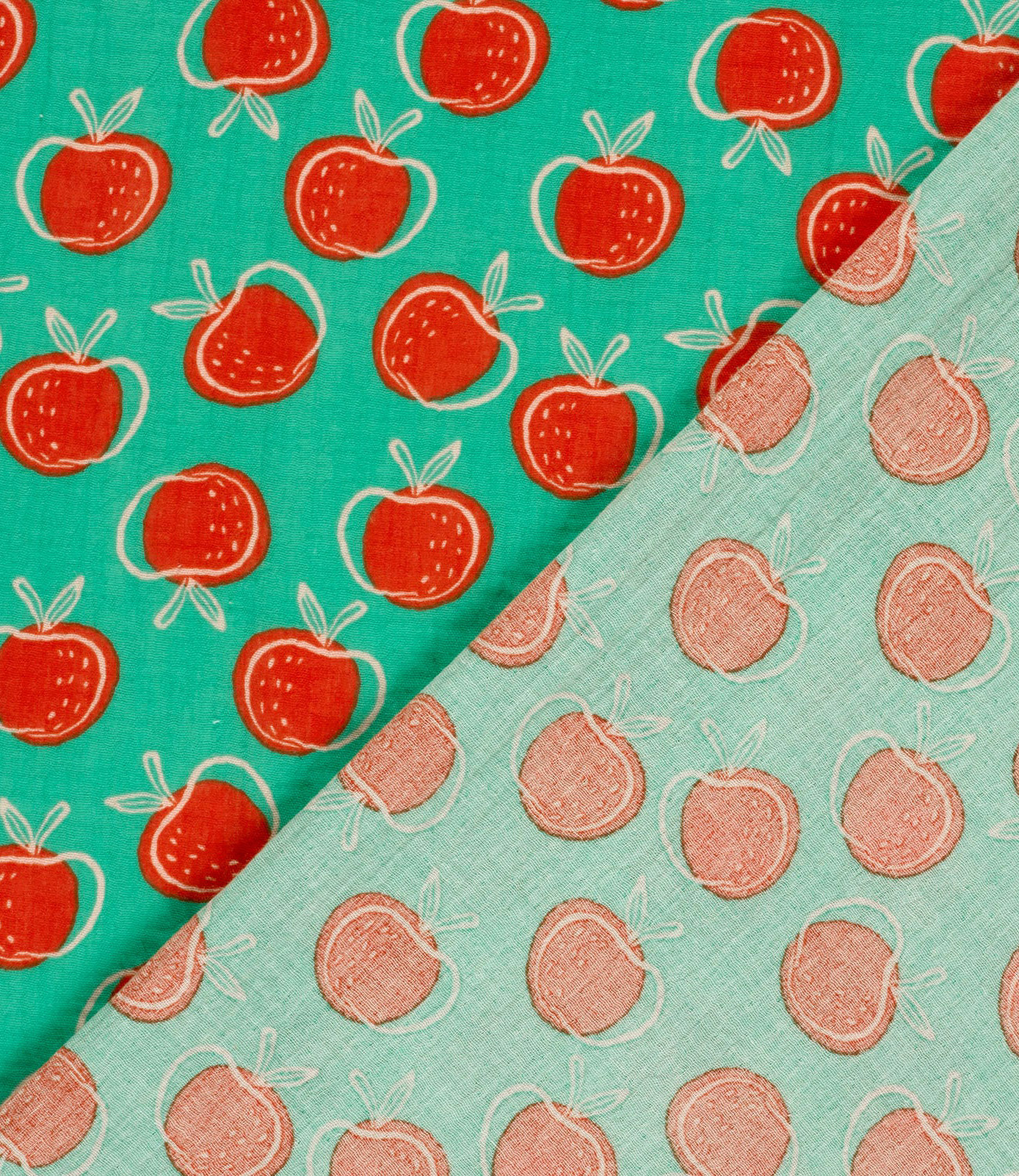 A soft muslin fabric, double gauze with apples. Perfect for baby sheets, pacifier cloths, dresses, and blouses. OEKO-tex certified. Suitable for both children and adults. Wonderfully soft and airy!
