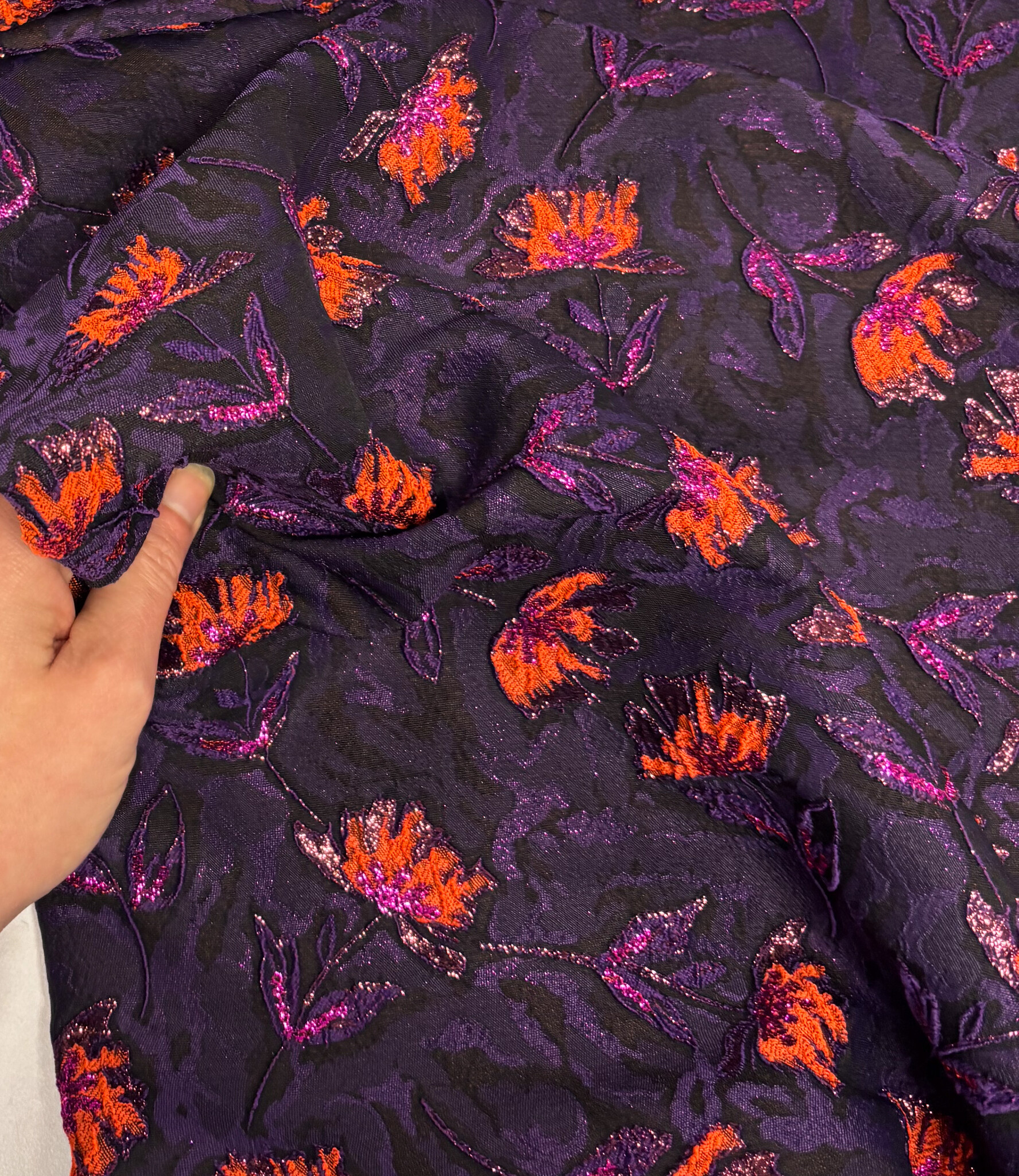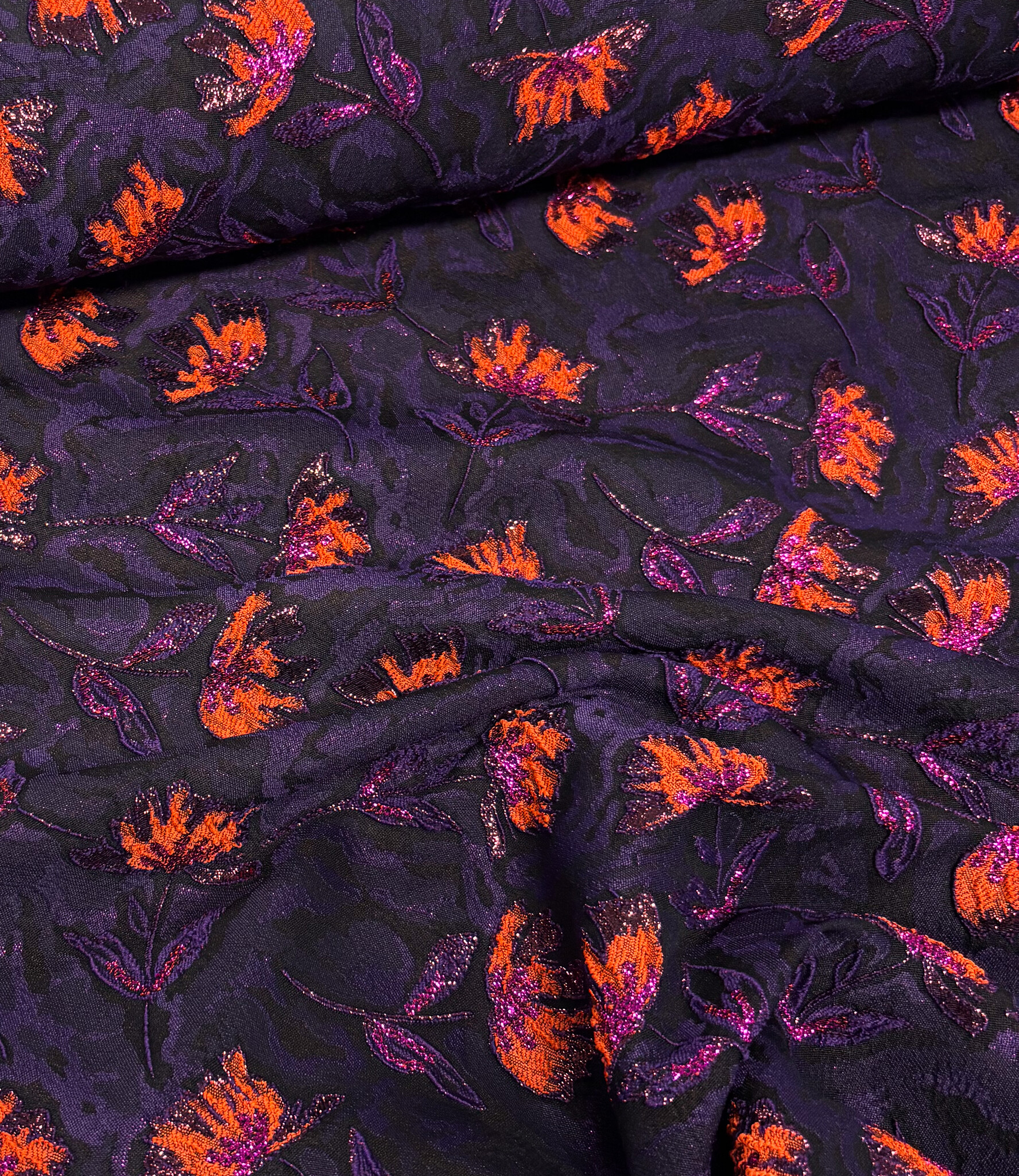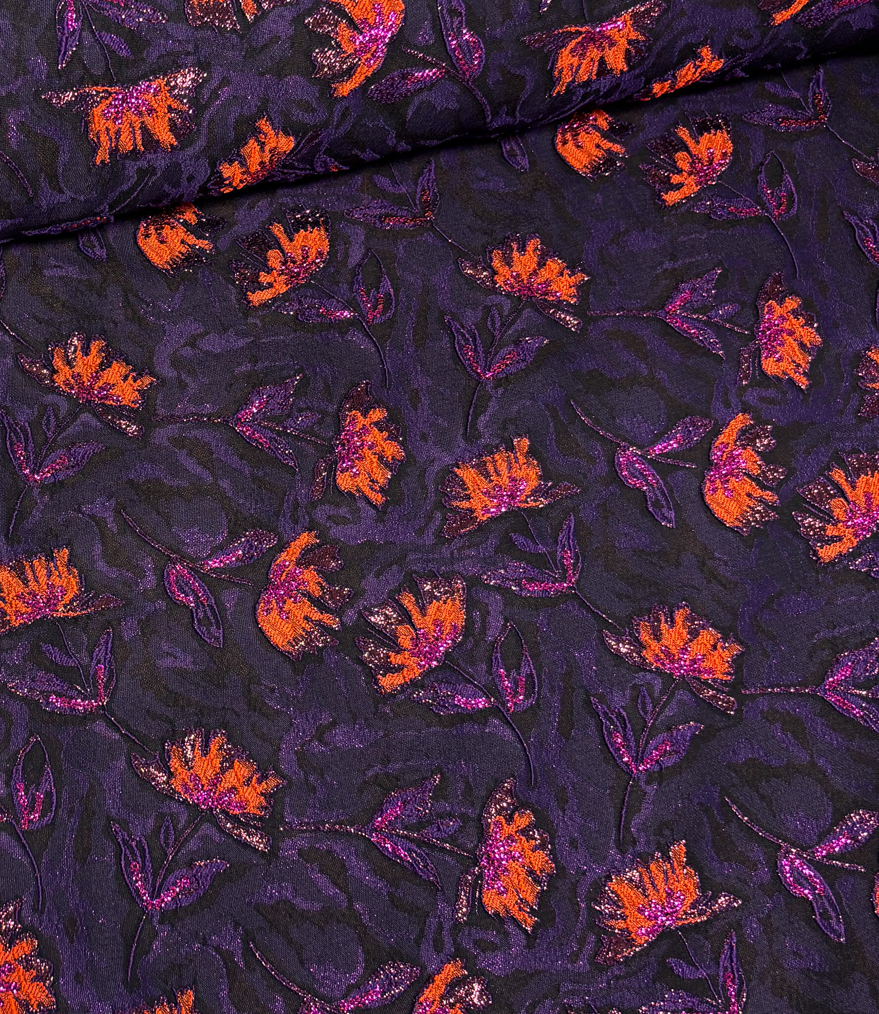 A beautiful woven jacquard with flowers and lurex. A la Ville - Bittoun fabrics. This fabric is used in Knipmode. This is a flowing jacquard. Ideal for blouses, dresses, skirts, and blazers. But also definitely suitable for loose-fitting trousers. Or as a sleeve detail on a sweater or blazer.