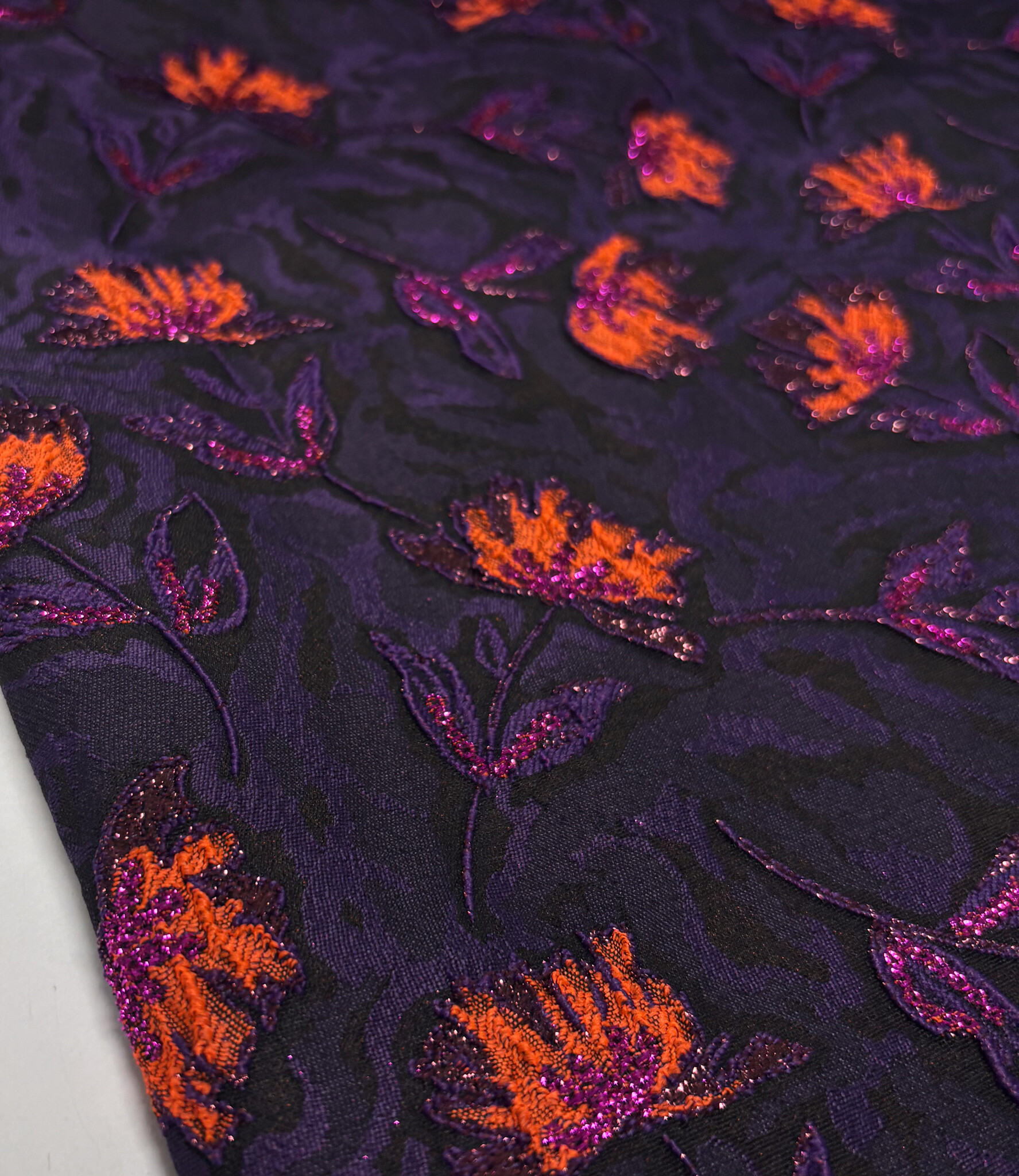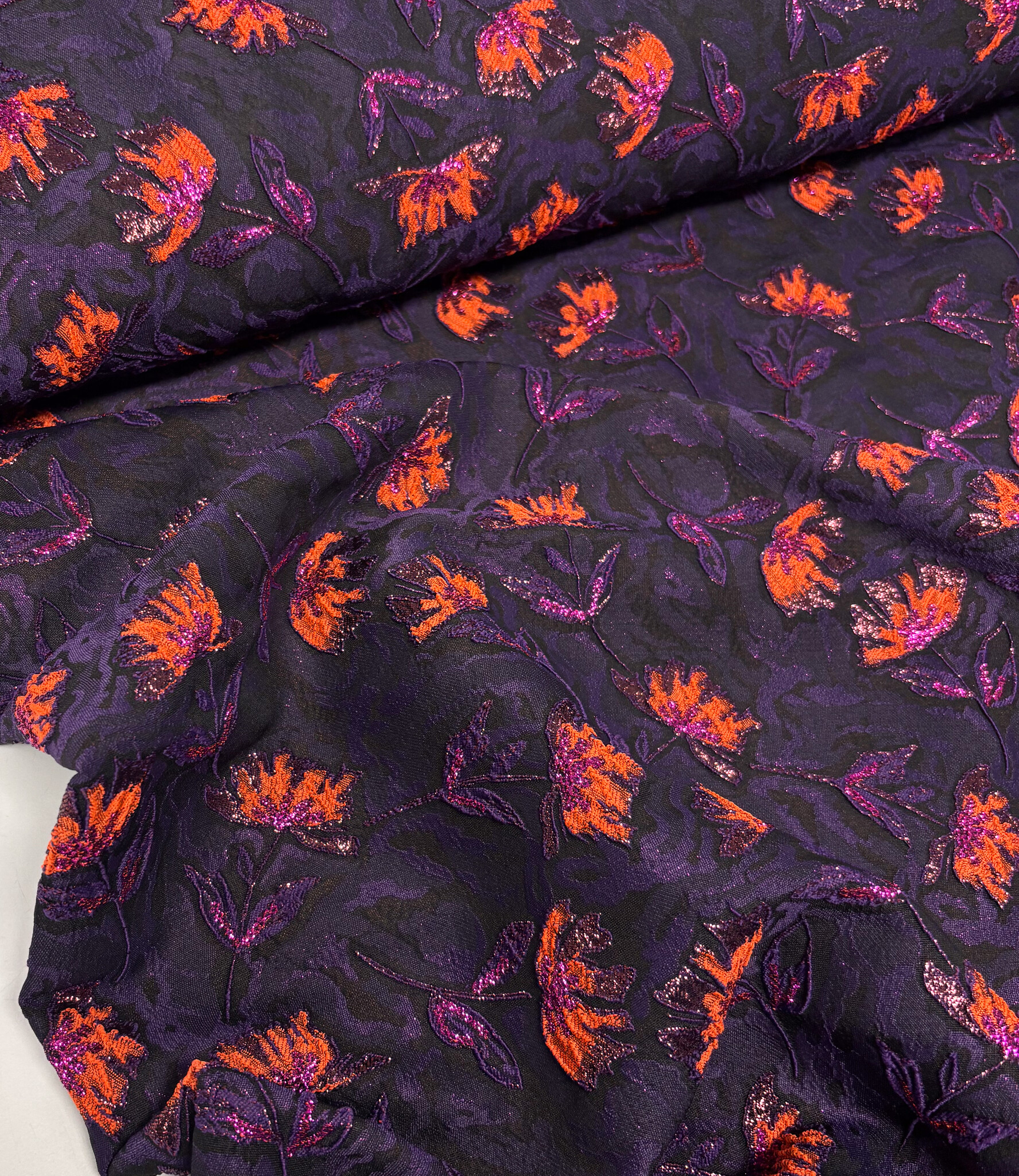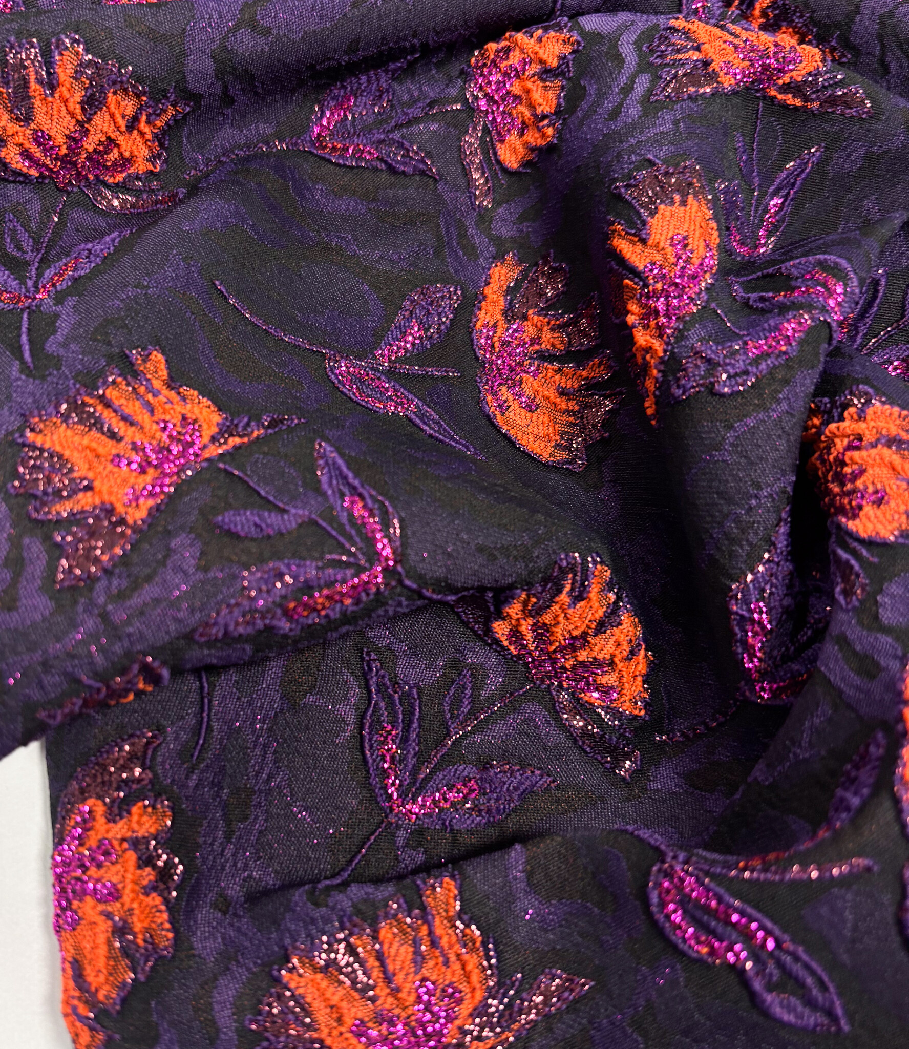 A beautiful woven jacquard with flowers and lurex. A la Ville - Bittoun fabrics. This fabric is used in Knipmode. This is a flowing jacquard. Ideal for blouses, dresses, skirts, and blazers. But also definitely suitable for loose-fitting trousers. Or as a sleeve detail on a sweater or blazer.