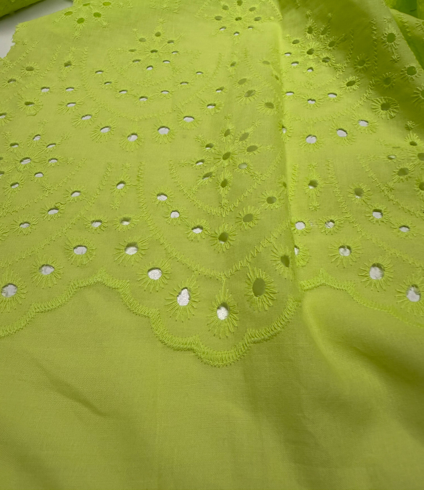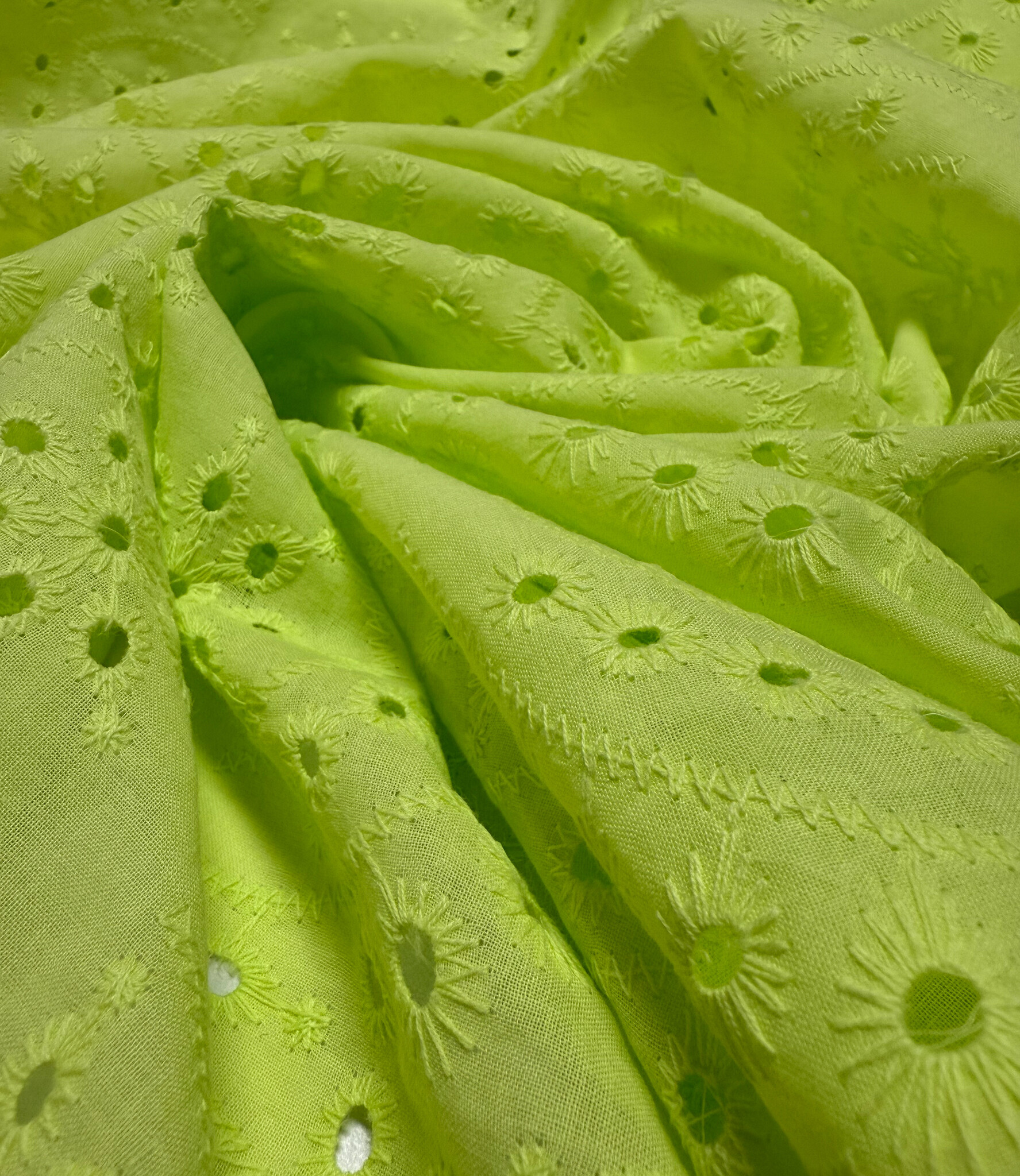 A beautiful cotton with embroidered flowers. We recommend using this fabric in width instead of length. Very nice for airy blouses, dresses.