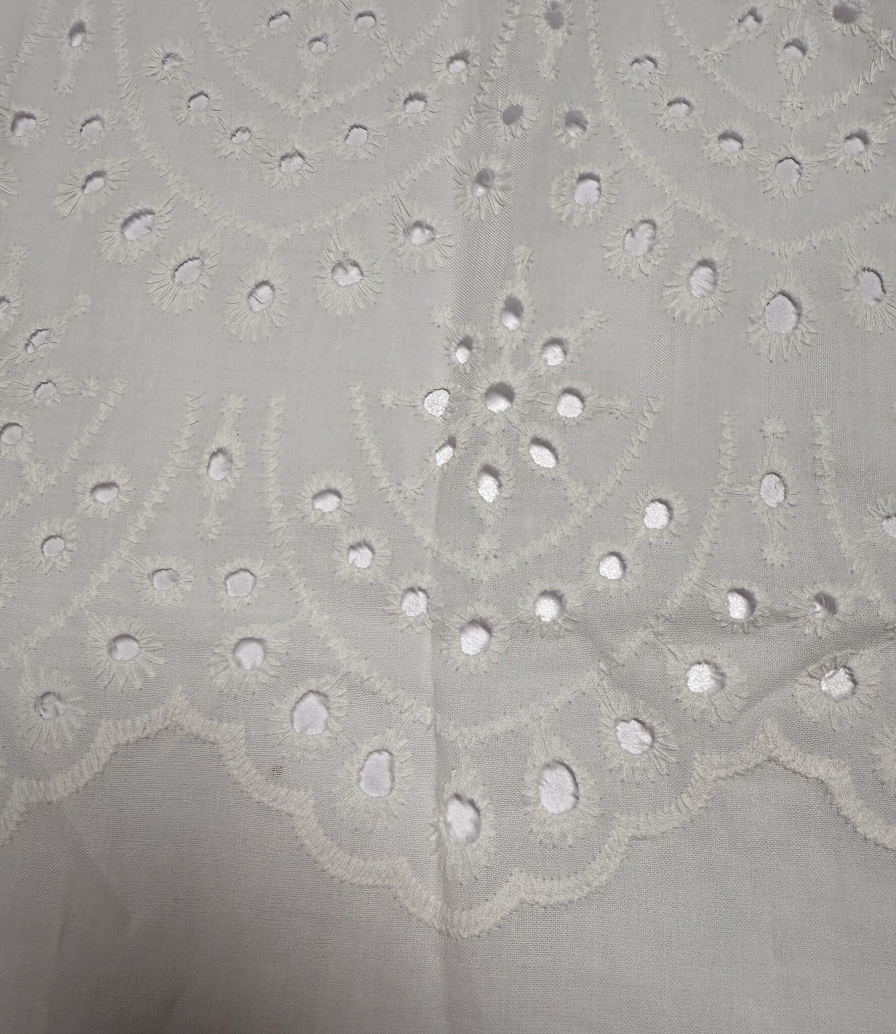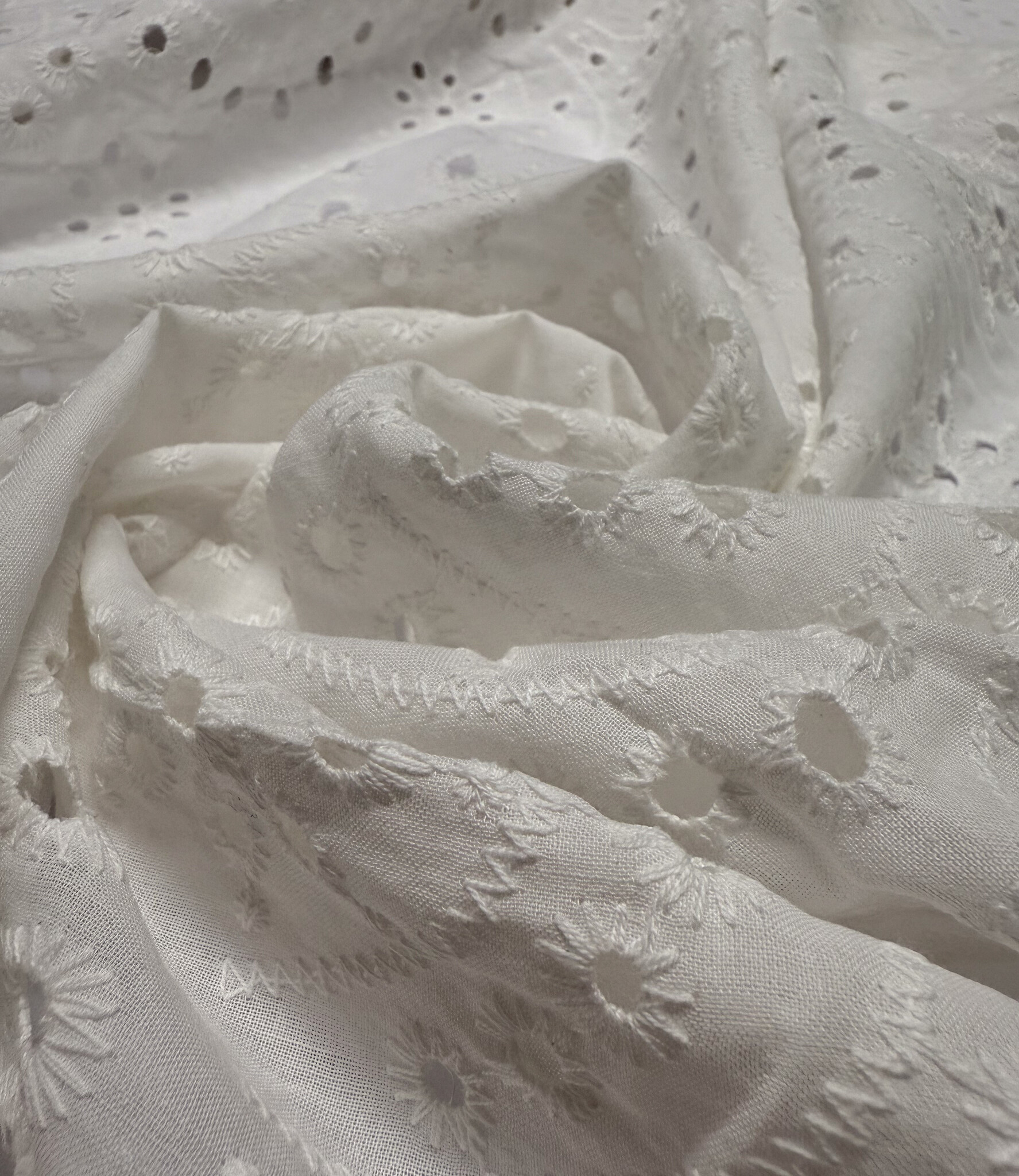 A beautiful cotton with embroidered flowers. We recommend using this fabric in width instead of length. Very nice for airy blouses, dresses.