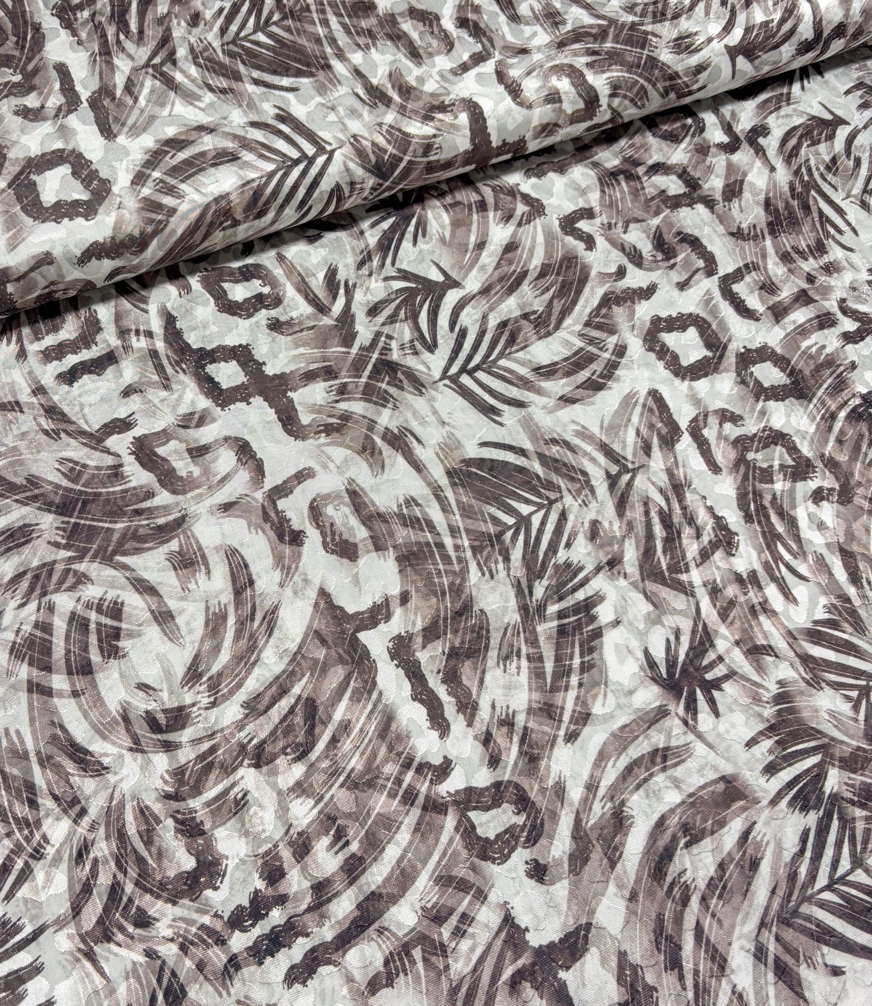 A beautiful viscose with a woven leopard print. It's opaque. Perfect for blouses, dresses, and skirts. Also great as a lining for a jacket.