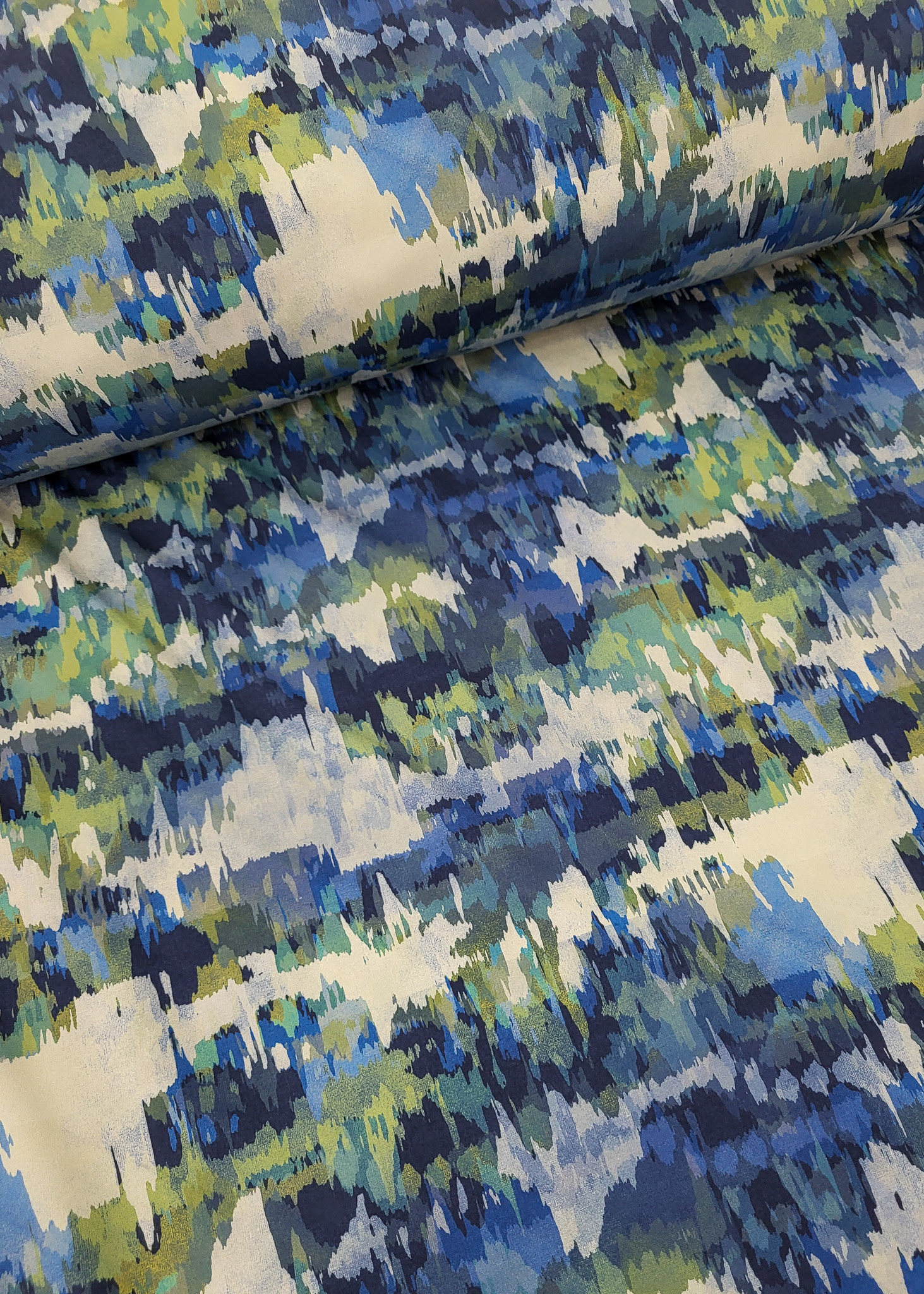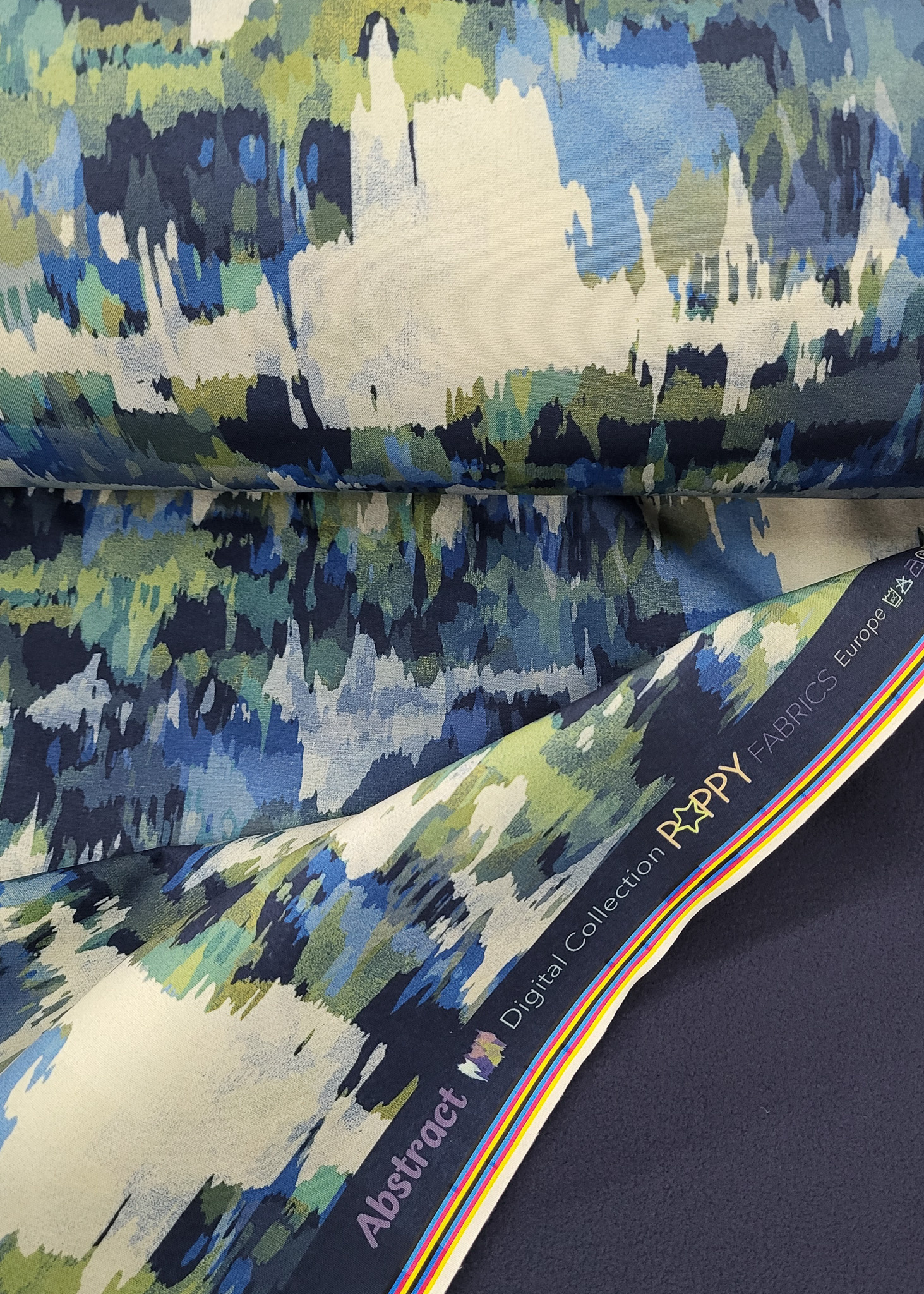 Softshell with beautiful green-blue print. This softshell is lined with a soft navy fleece. This softshell is water-repellent and windproof. Perfectly suited for jackets, bicycle sleeves ...