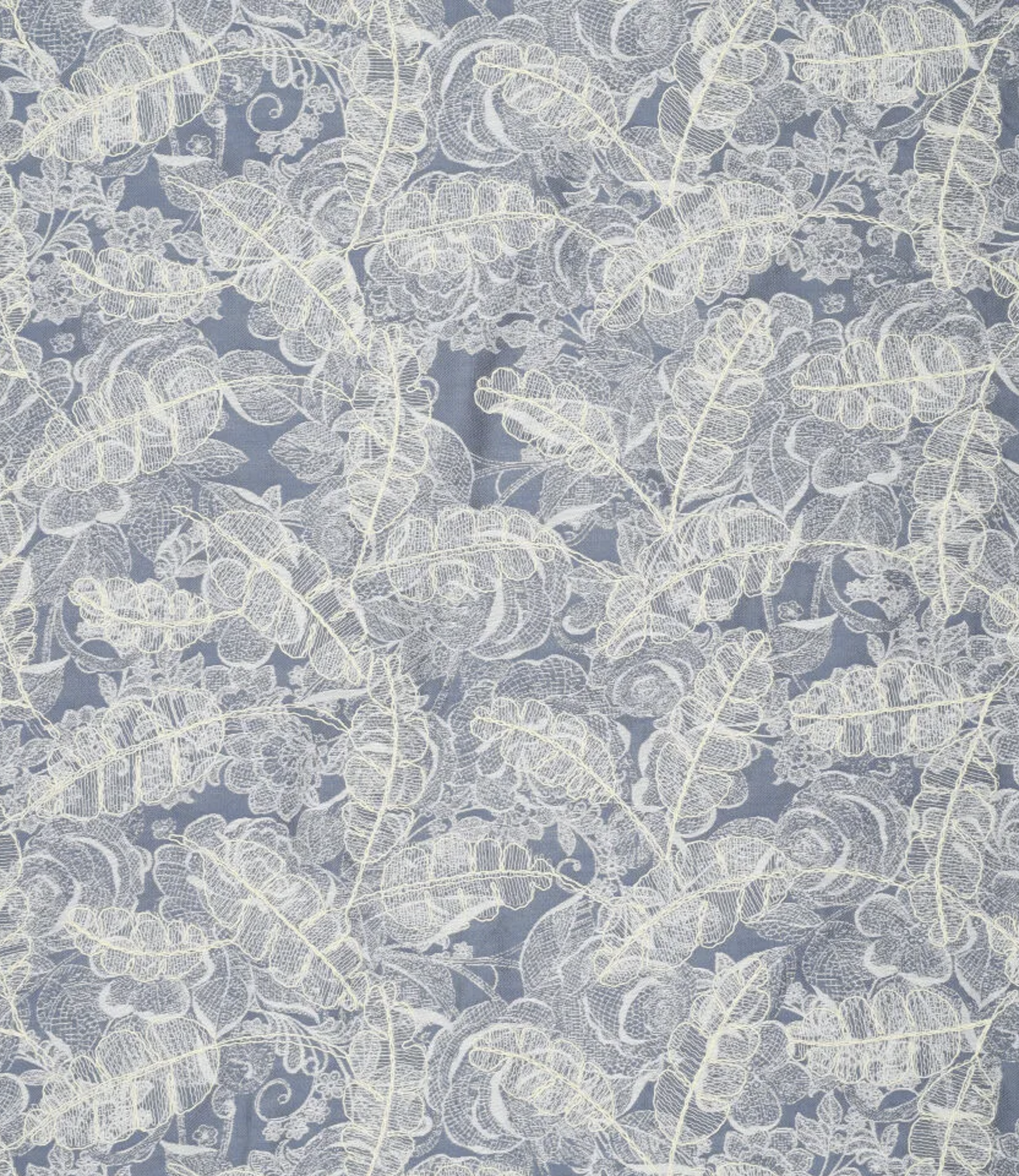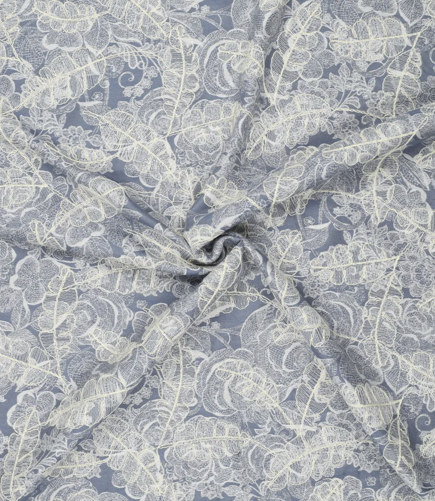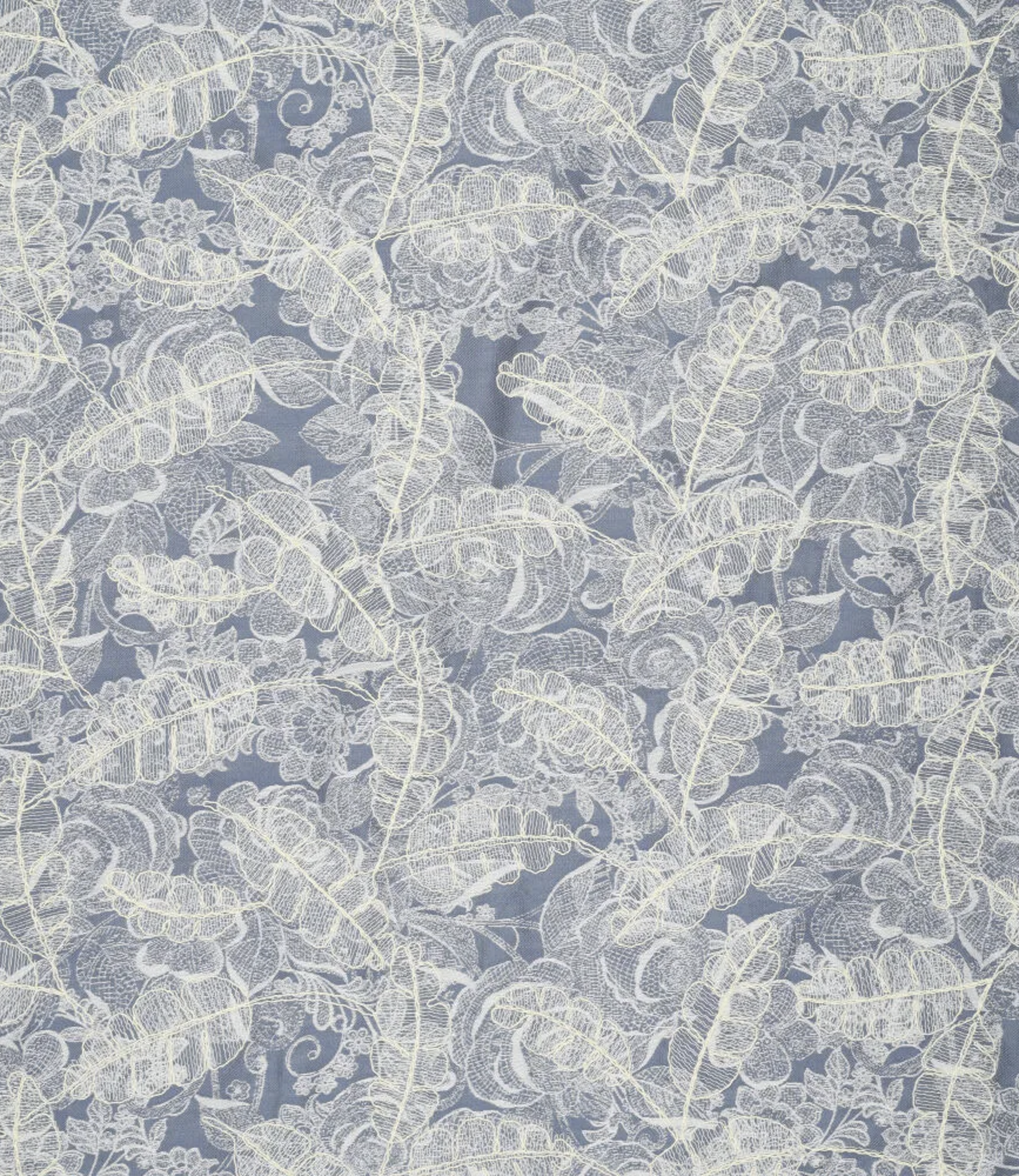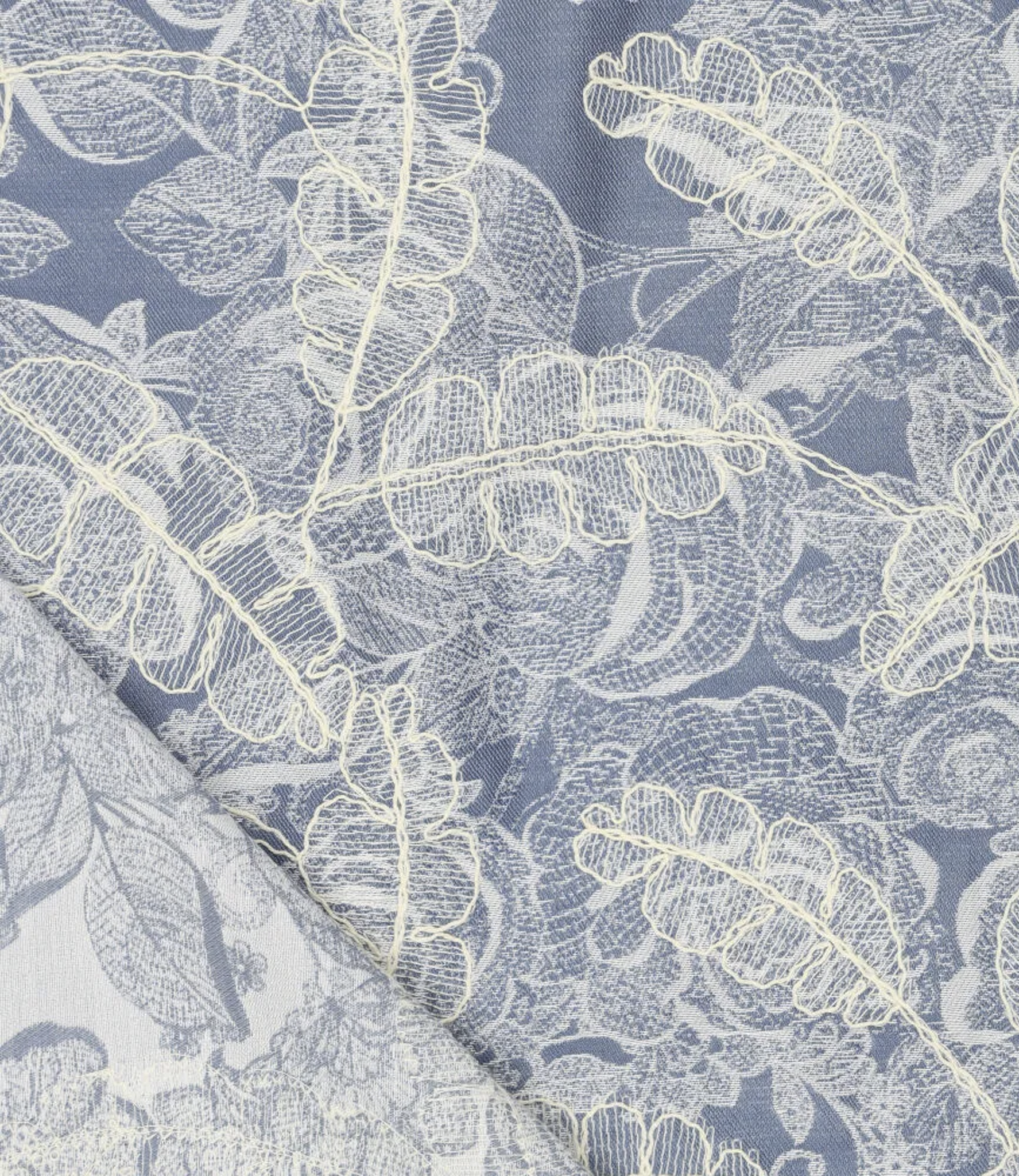 Supple, lightweight jacquard fabric. Flowers are woven into the fabric and also embroidered on it. This creates a unique fabric.