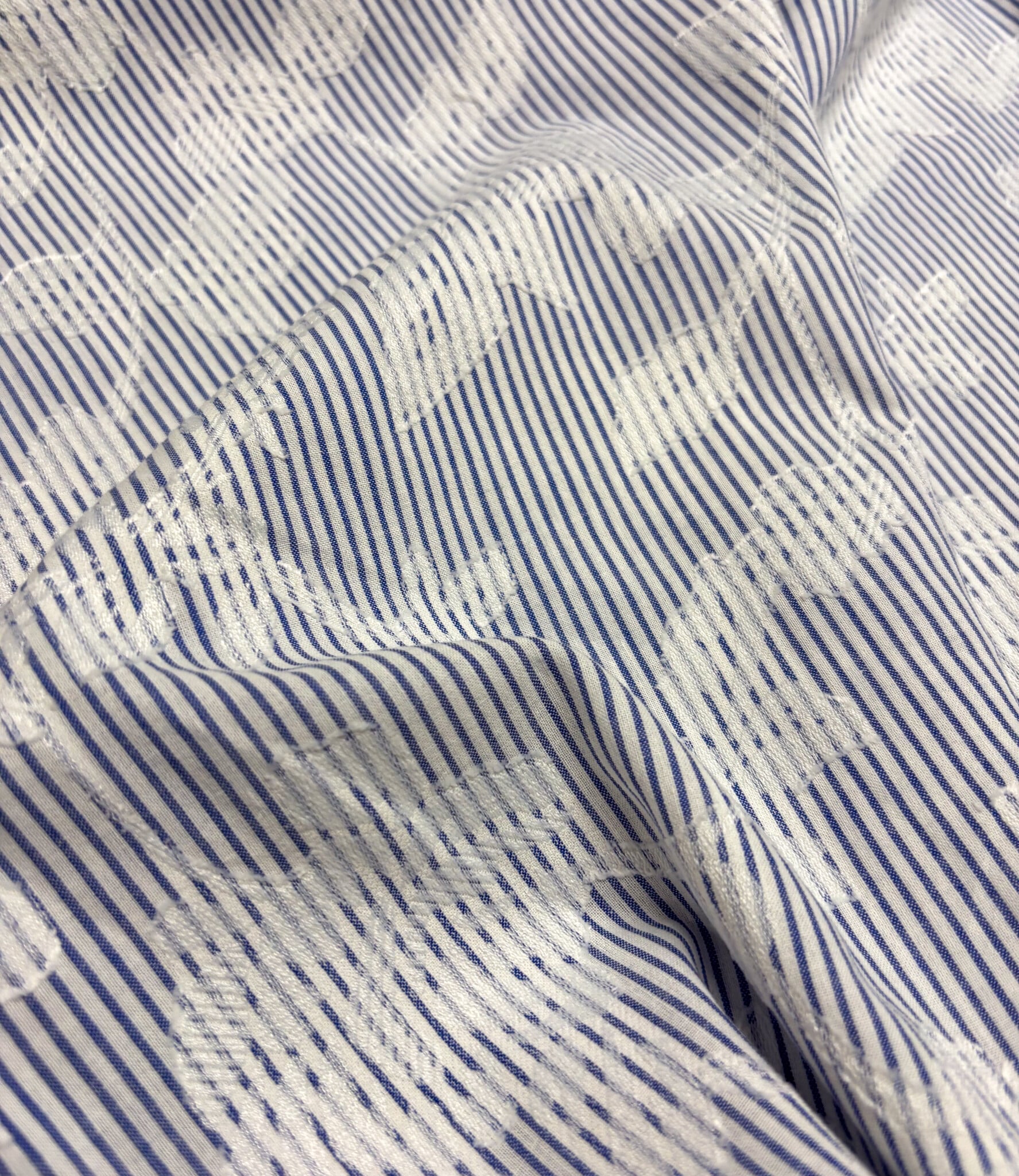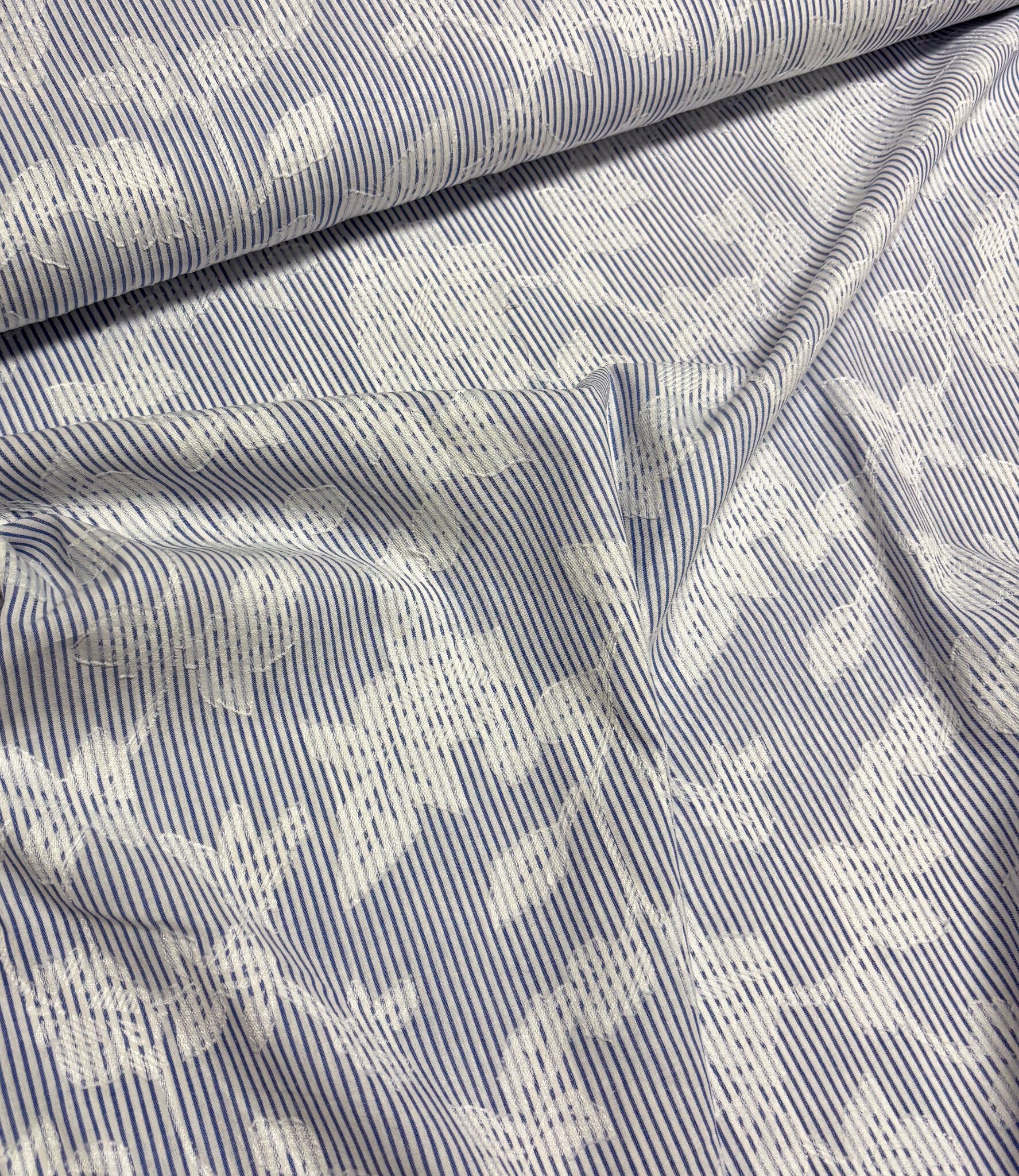A supple striped cotton with an interwoven motif. A la Ville fabrics.