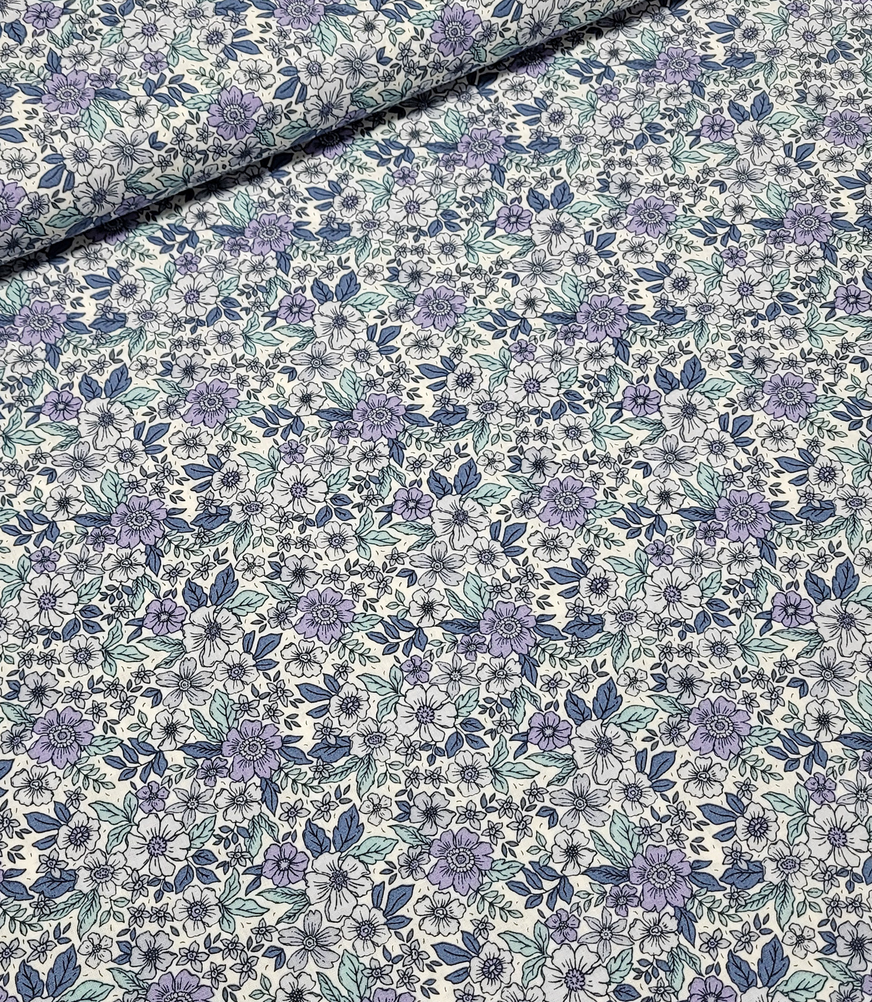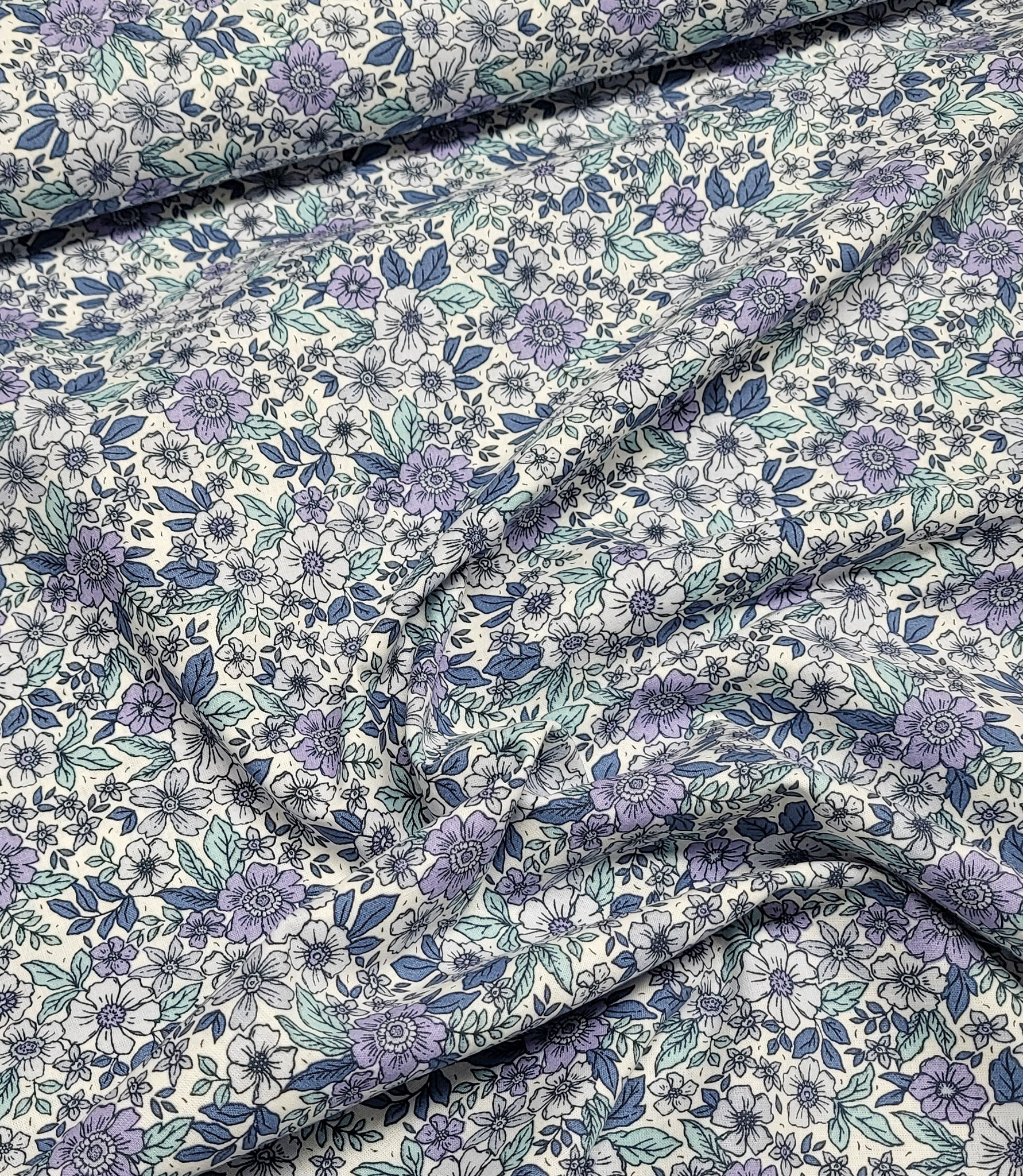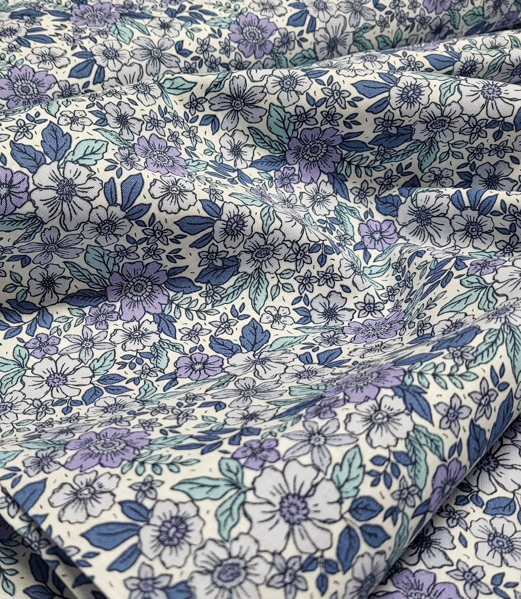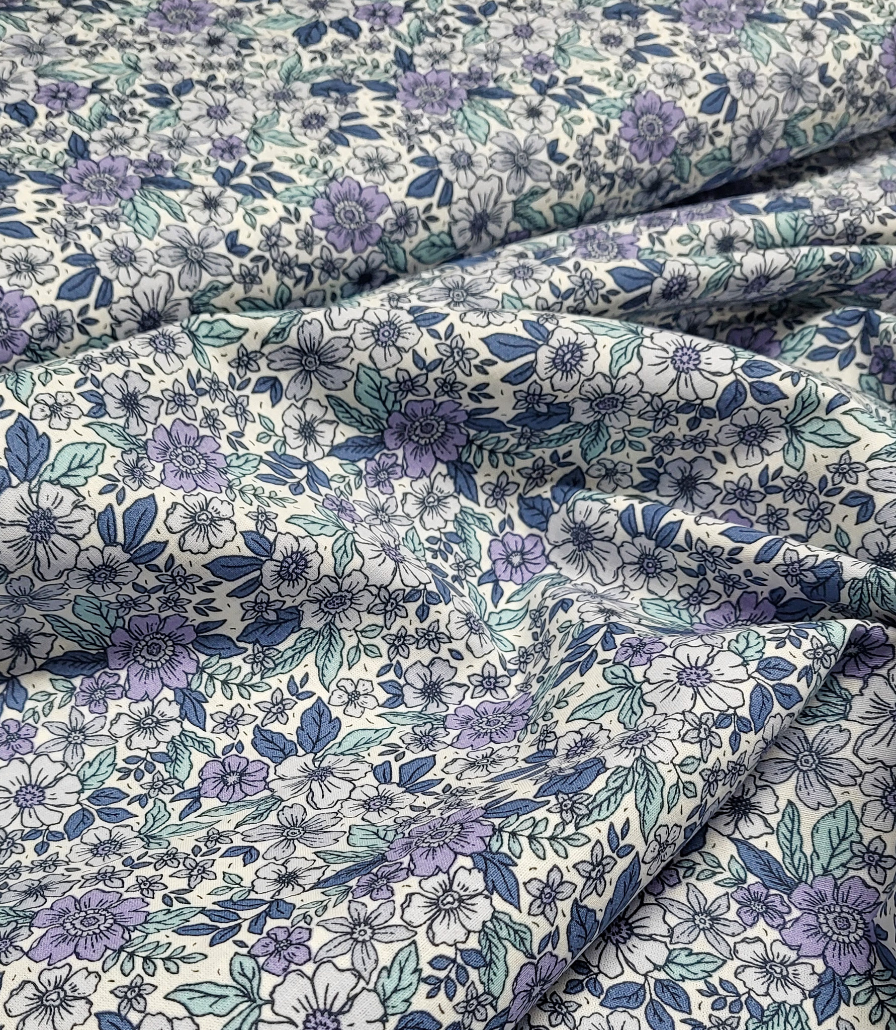 A beautiful cotton with a romantic floral print. Lovely as a lining, but also soft enough for a top, dress, or skirt.