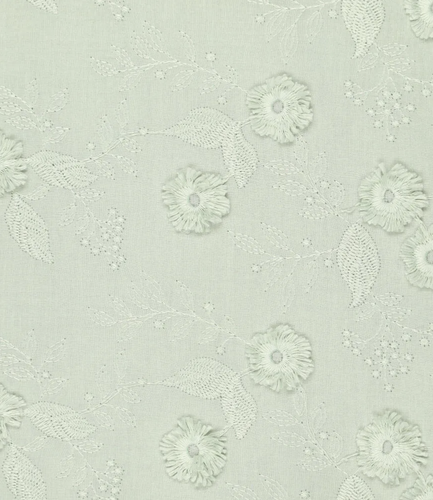 Embossed flower - cotton embroidery - mint green