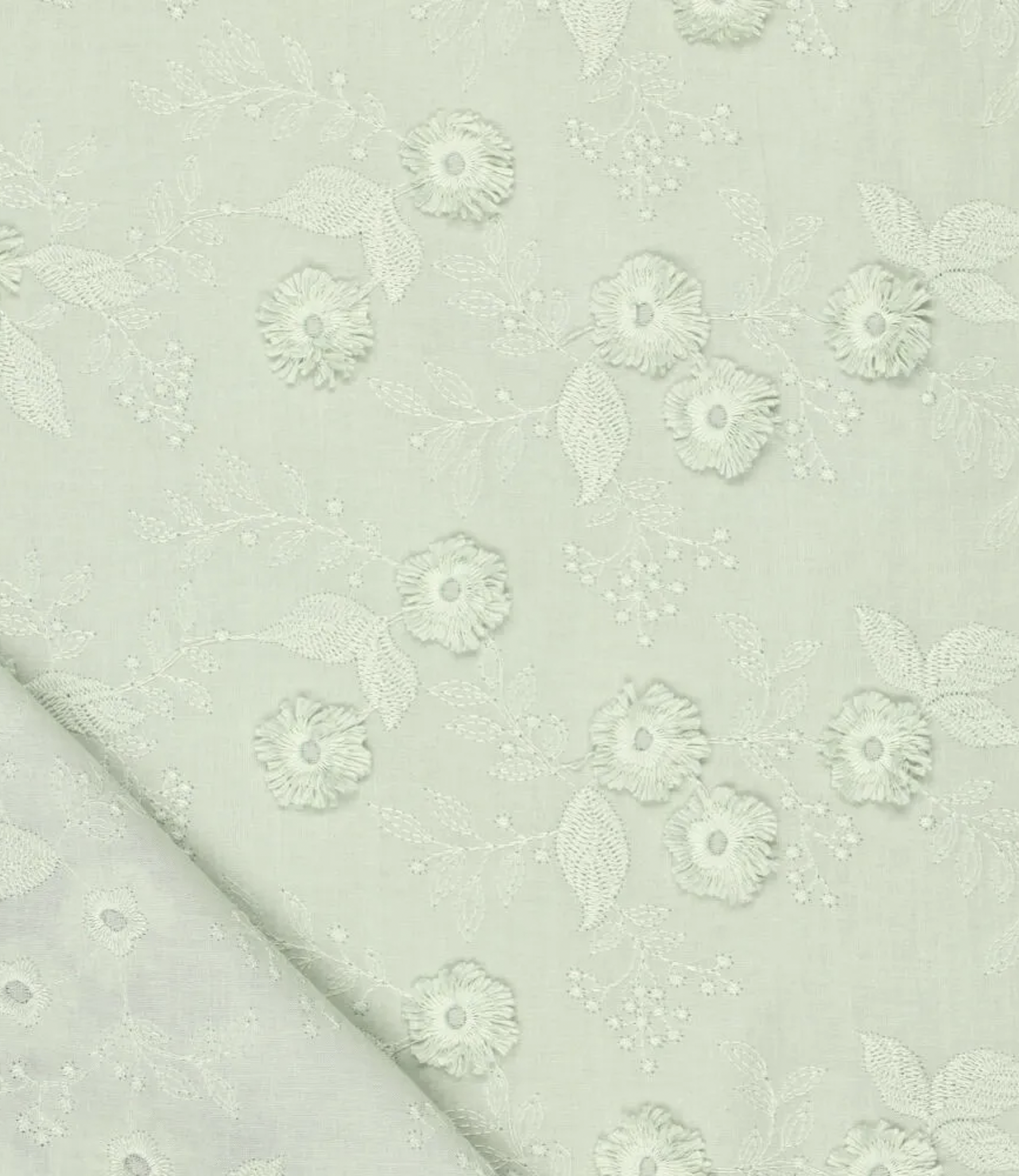 Embossed flower - cotton embroidery - mint green - Madeline De Stoffenmadam