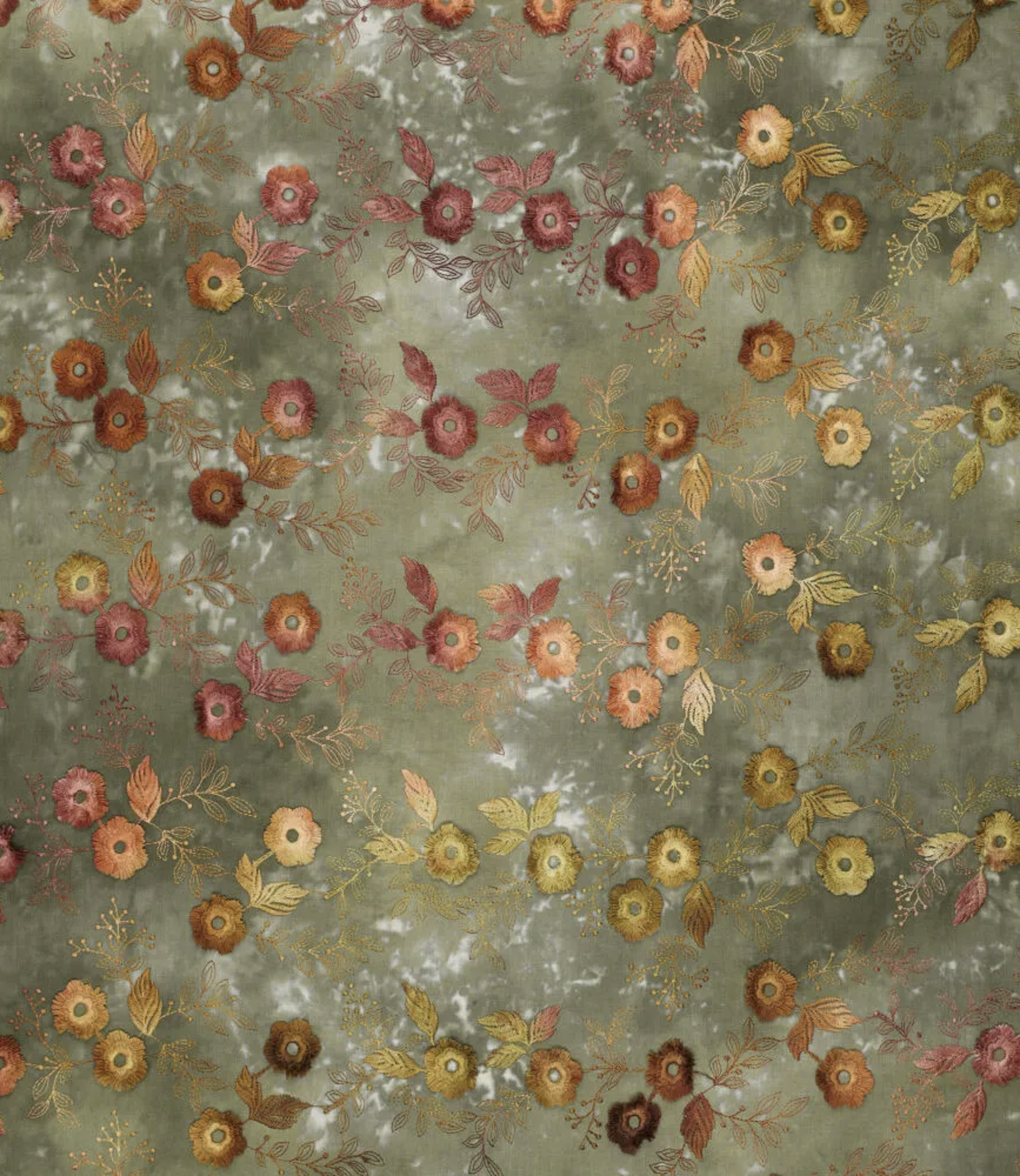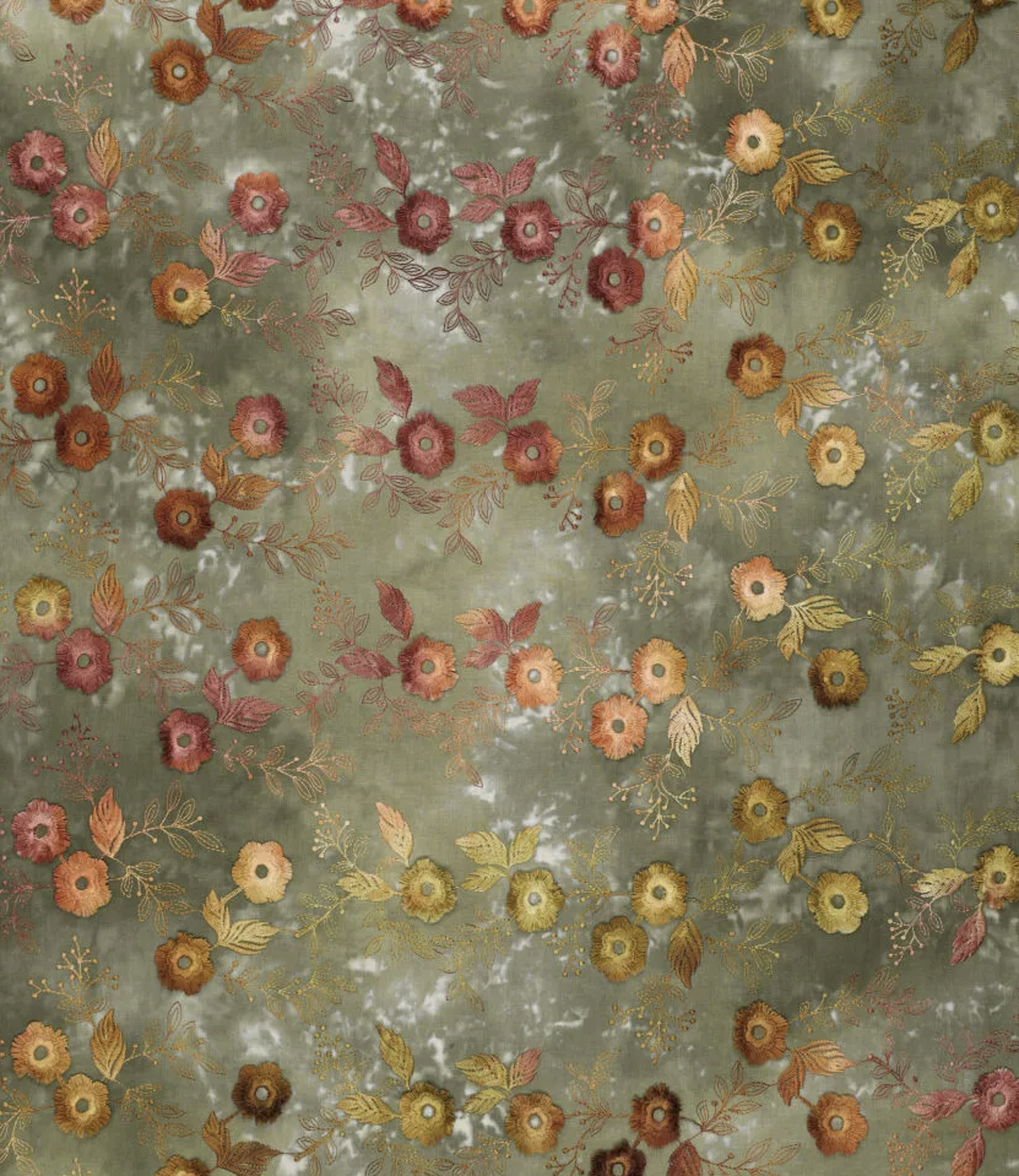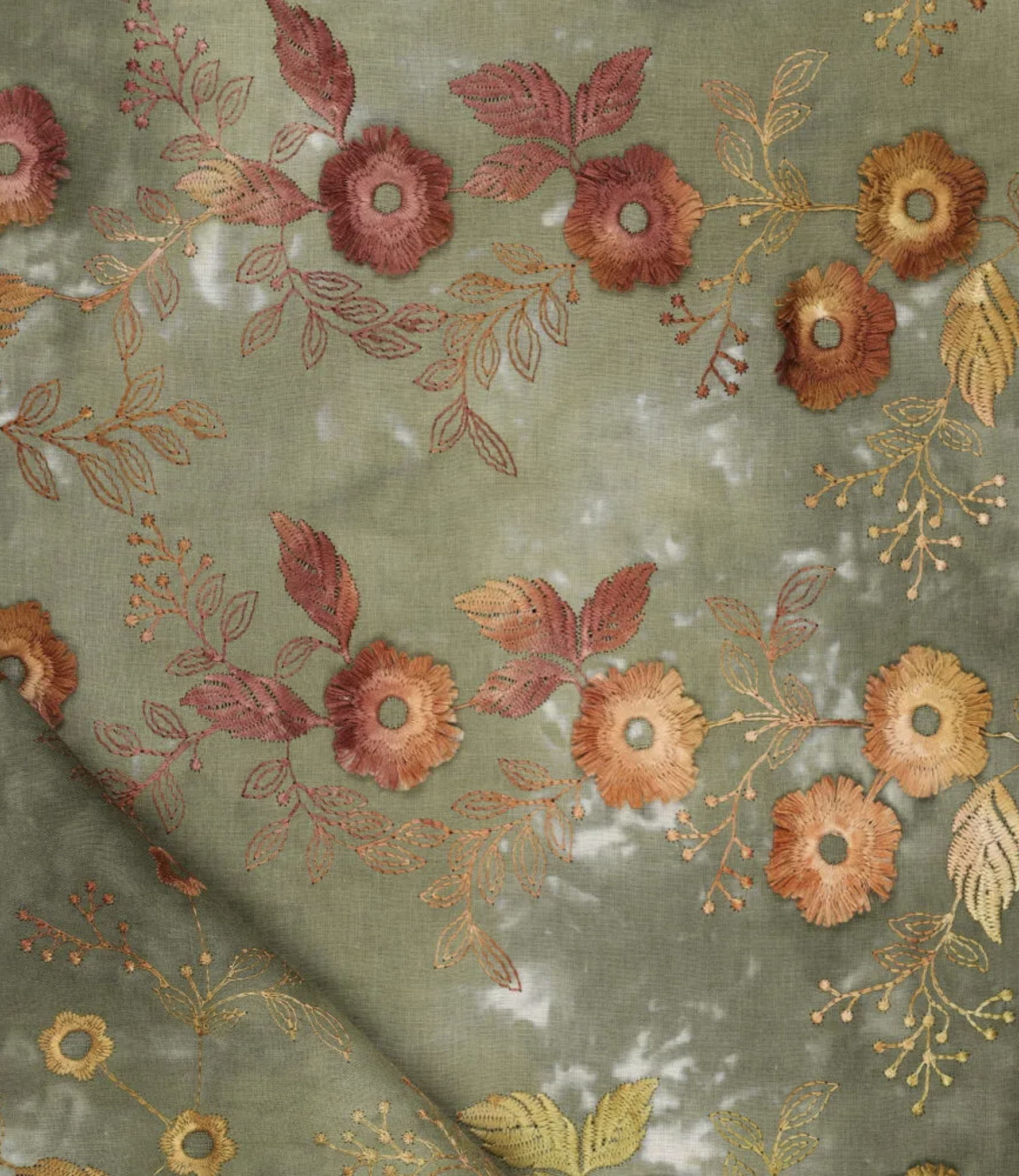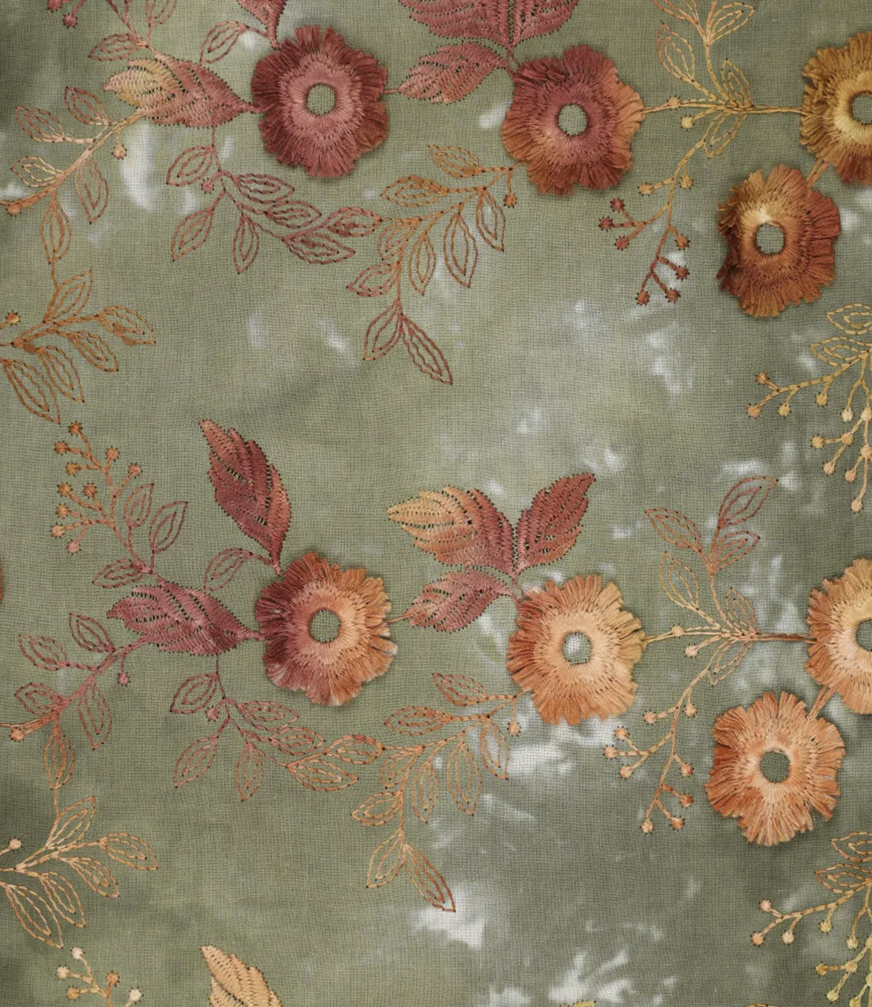 relief flower - cotton embroidery - tie-dye khaki