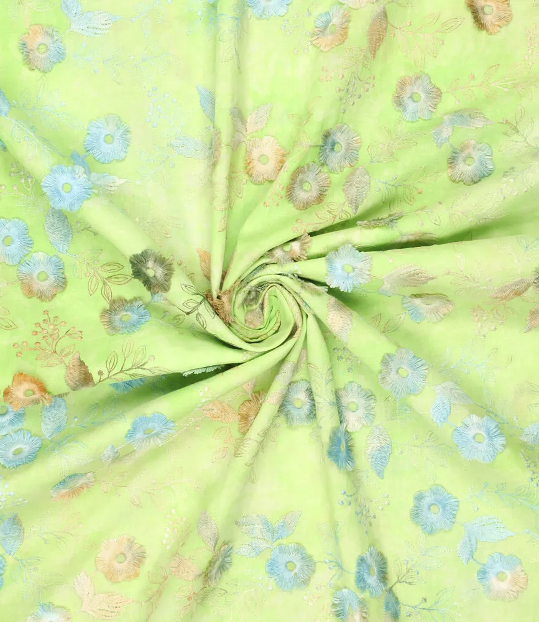 A beautiful cotton with embroidered flowers. Perfect for an airy blouse, skirt, ... OEKO-tex.