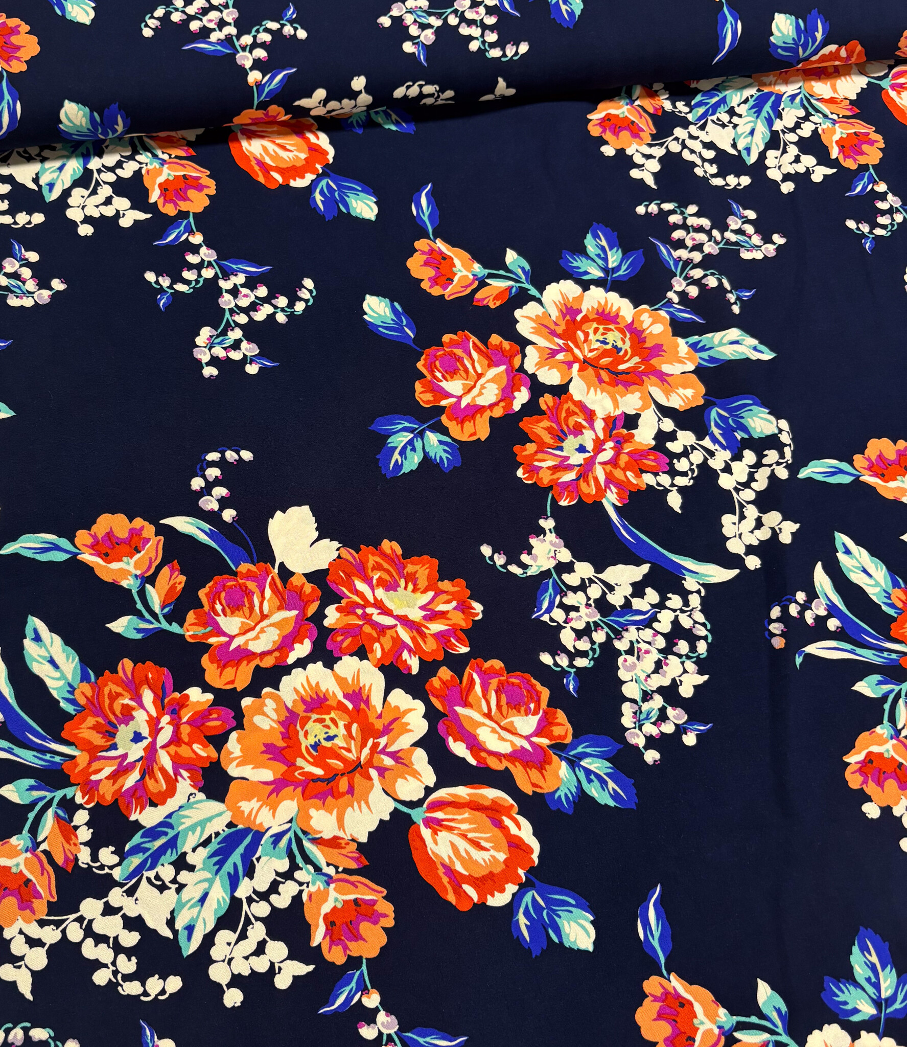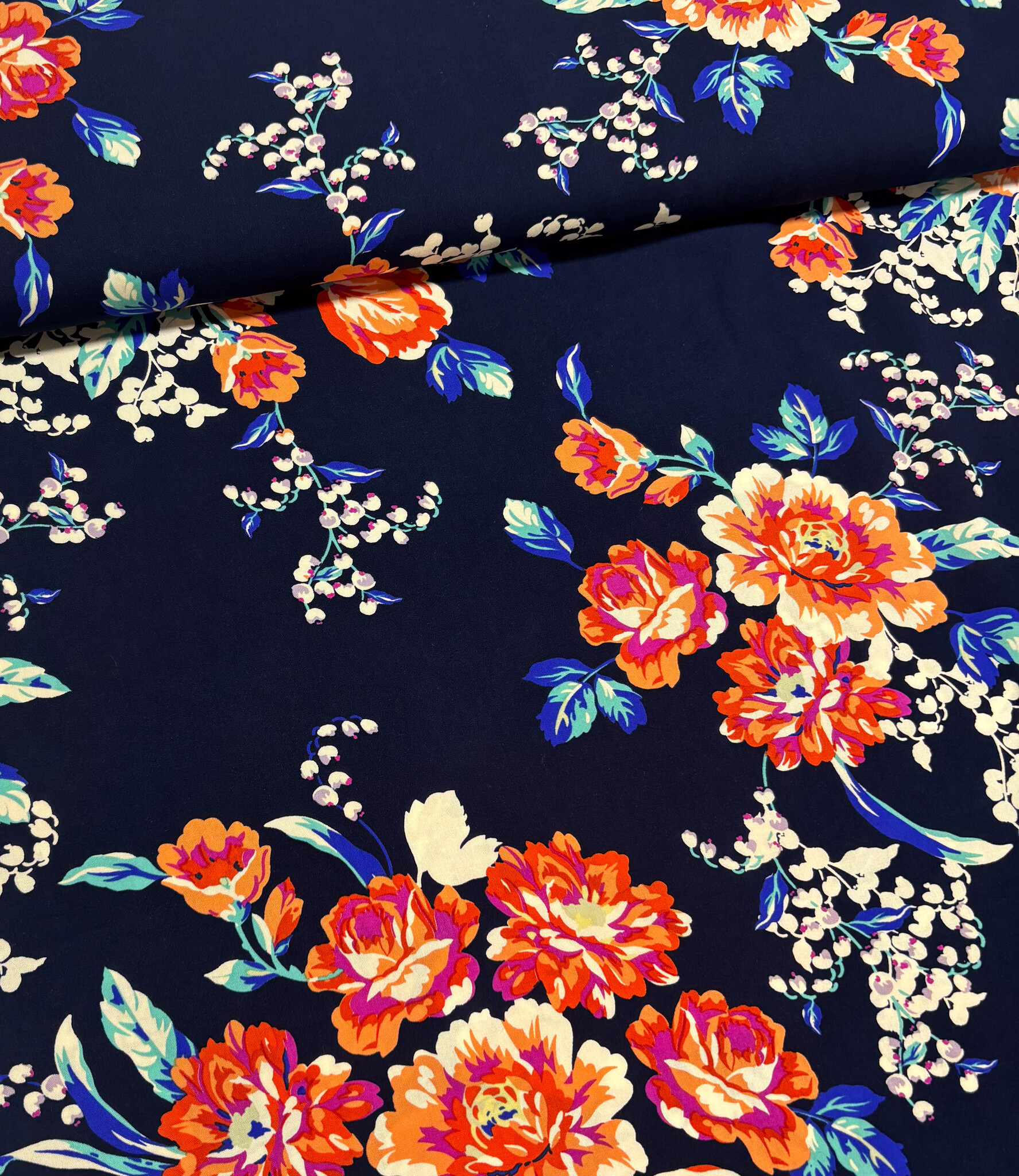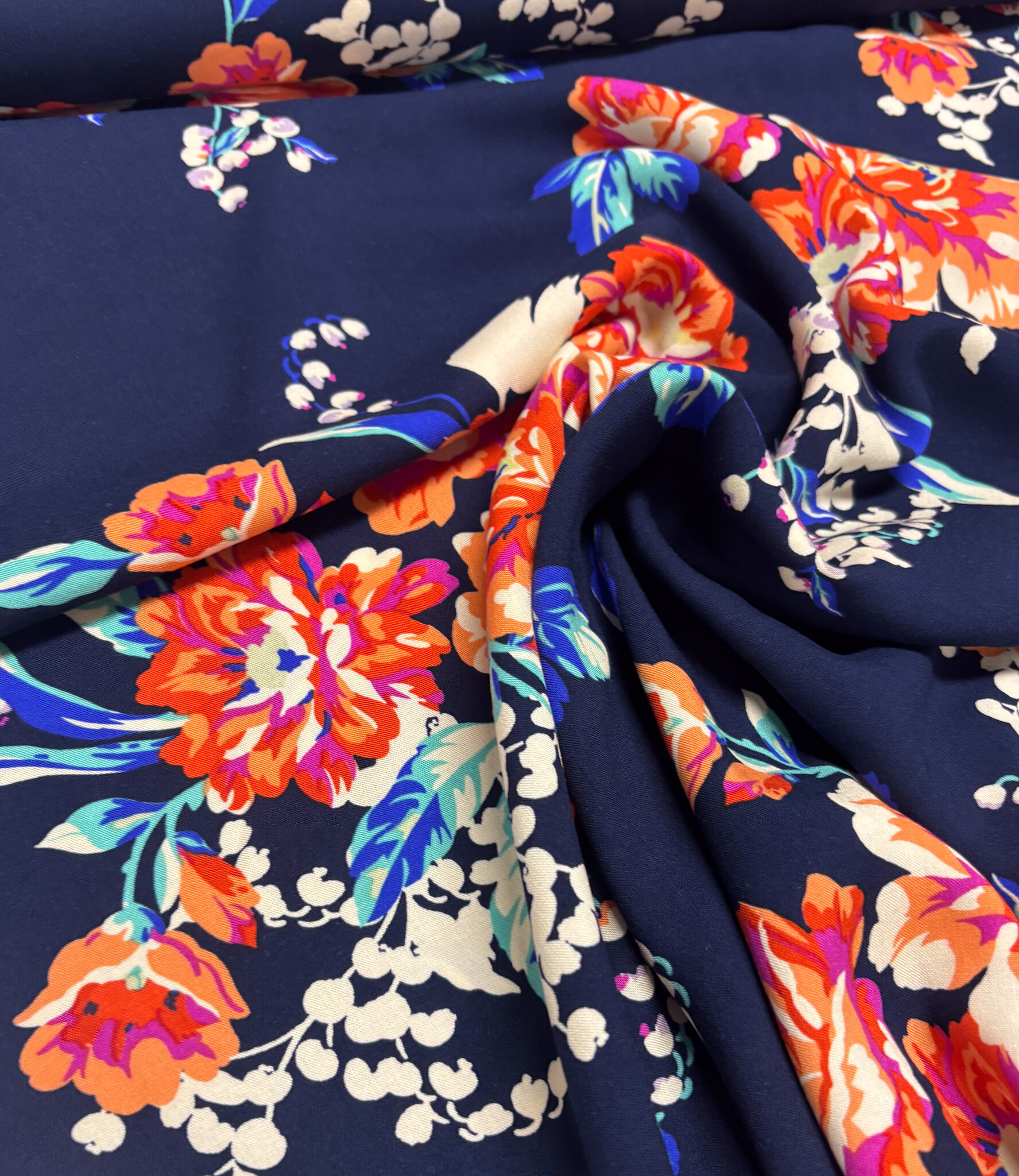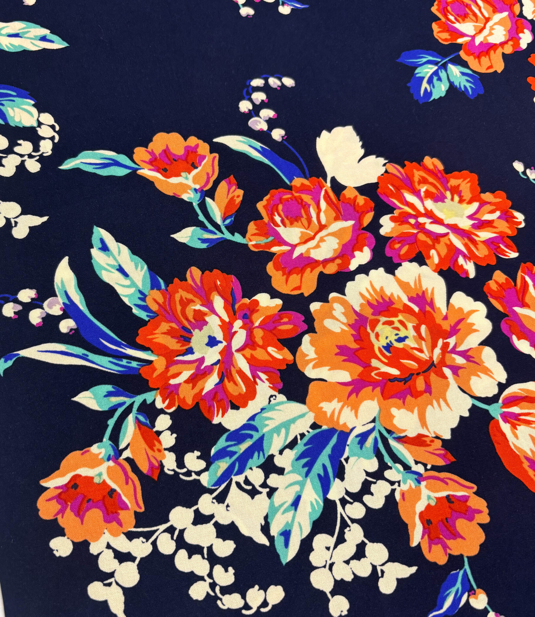 A beautiful bamboo poplin fabric with floral details. Soft and flowing, perfect for blouses, dresses, loose-fitting trousers, skirts, and more. OEKO-tex certified.