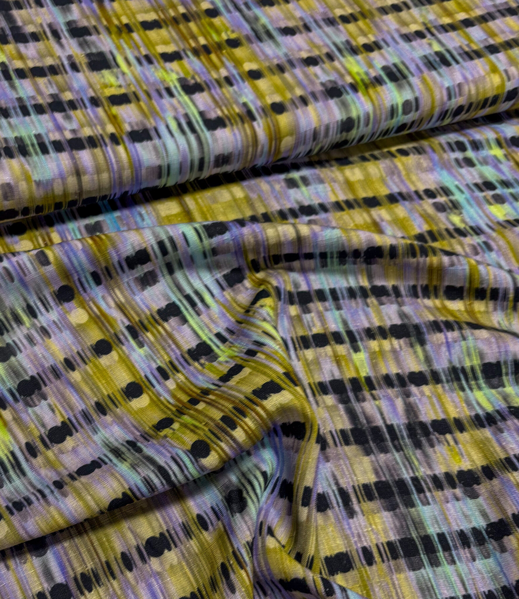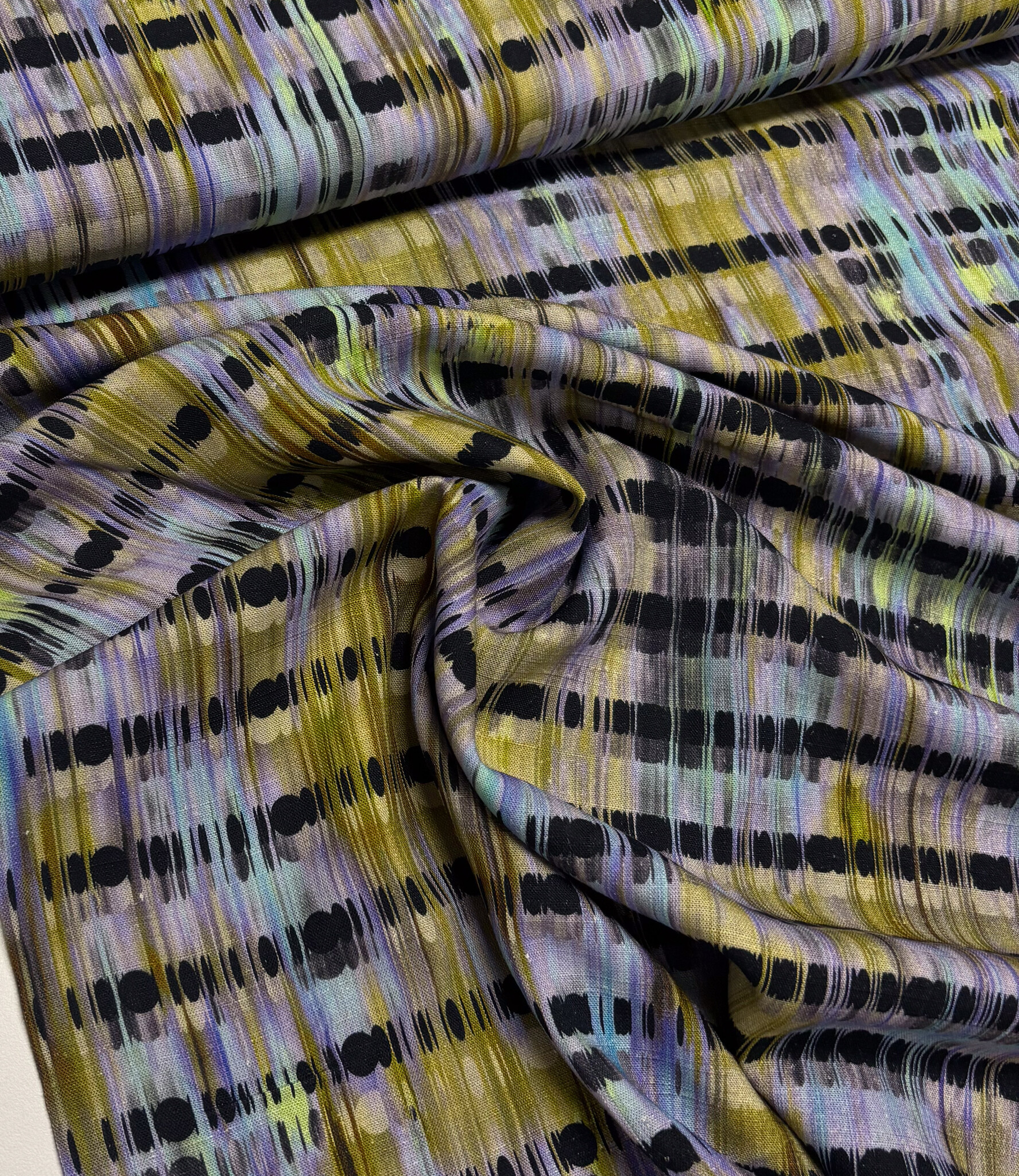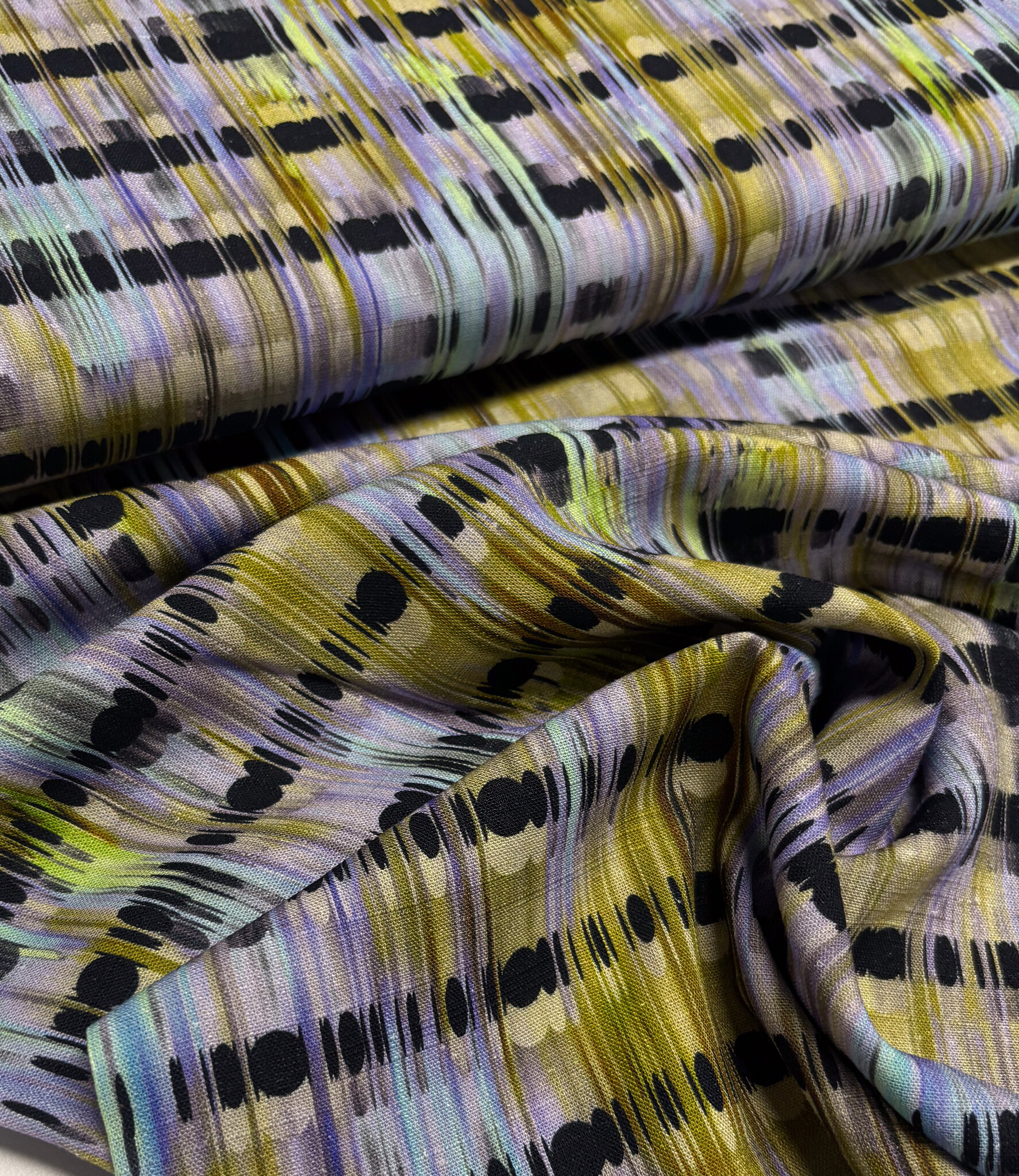 A linen viscose with an abstract print. OEKO-tex certified. Perfect for airy blouses, skirts, and dresses, ...