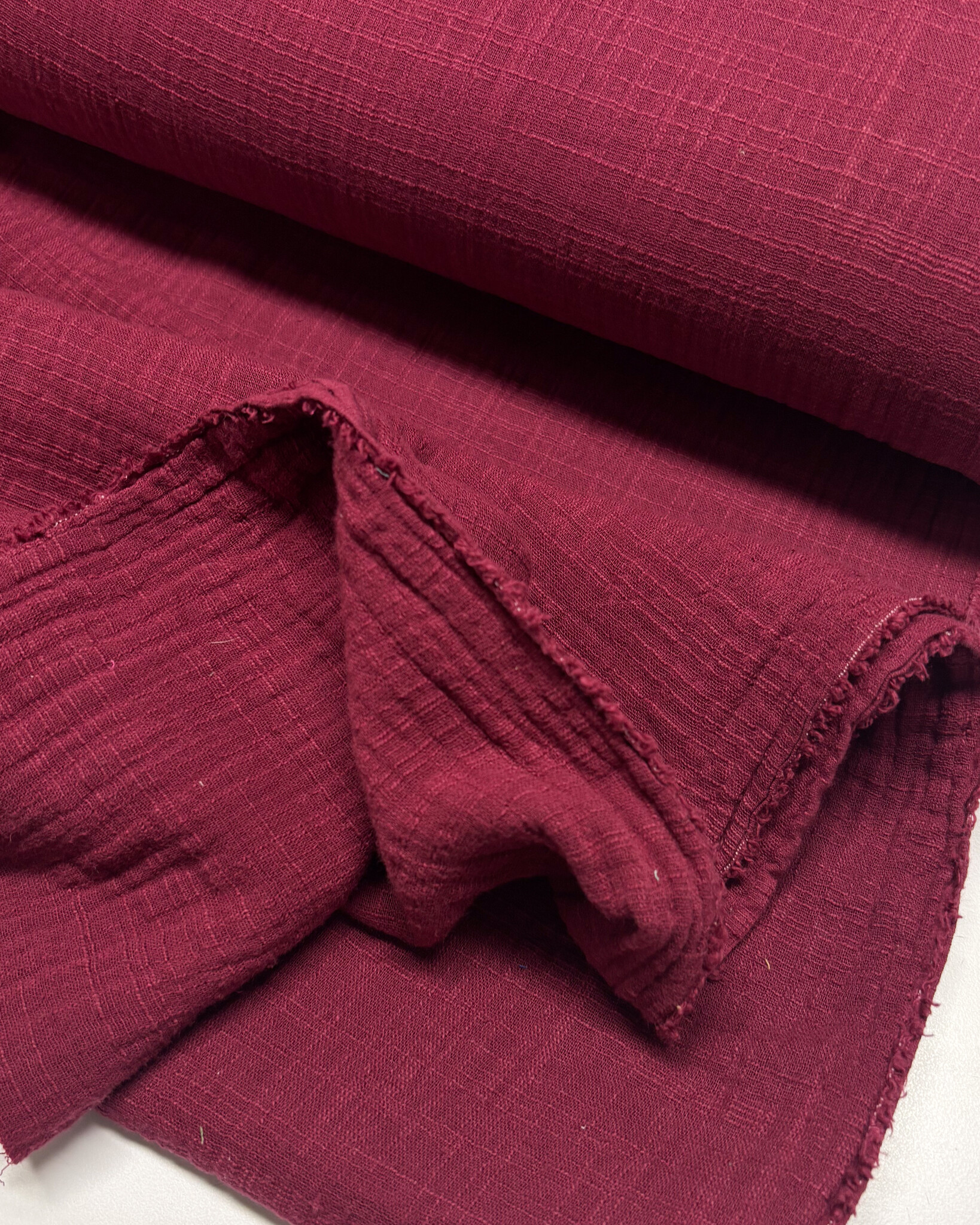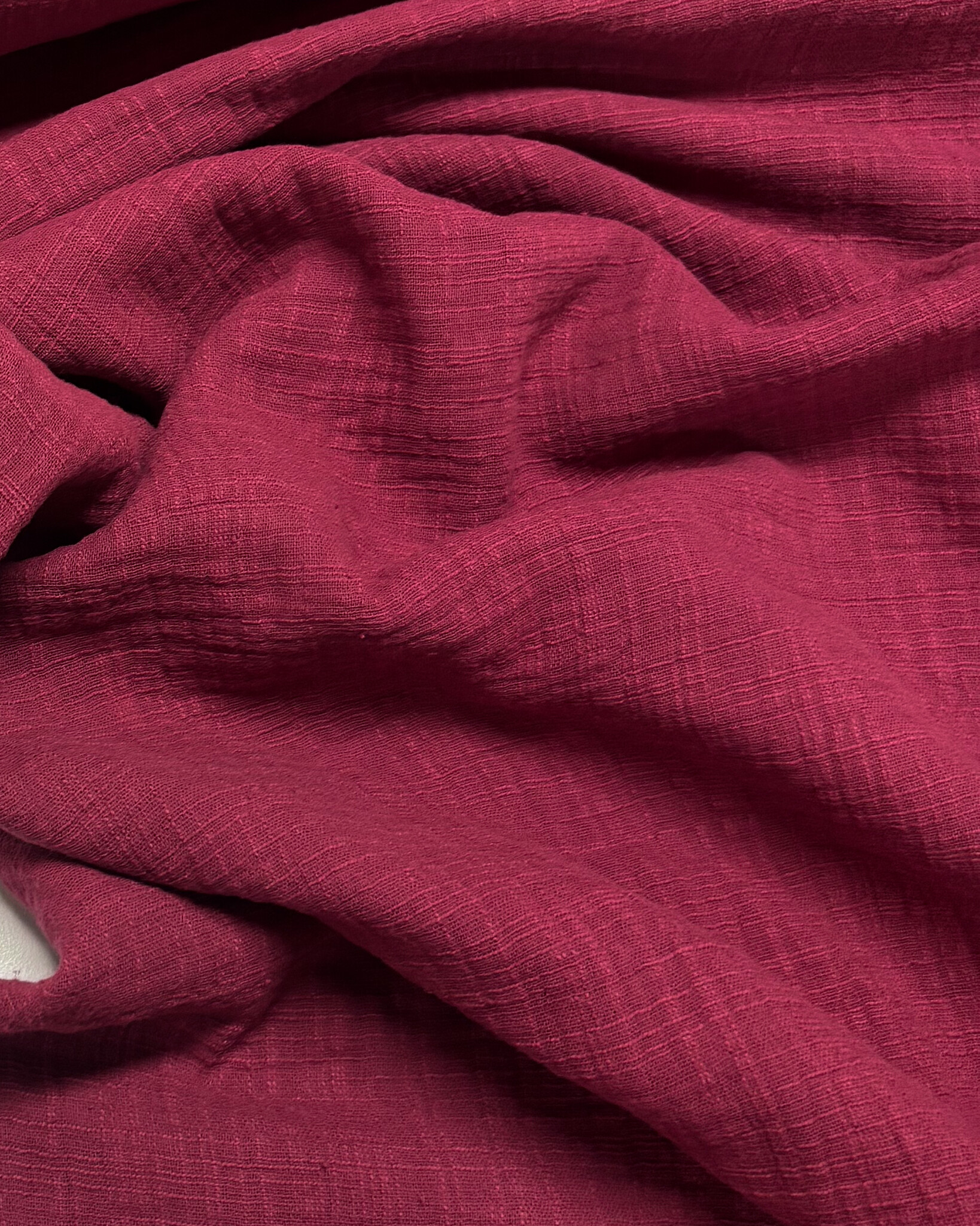 A super soft cotton with linen look. This cotton linen mix is a double gauze. A double gauze fabric has two thin layers of cotton woven together.