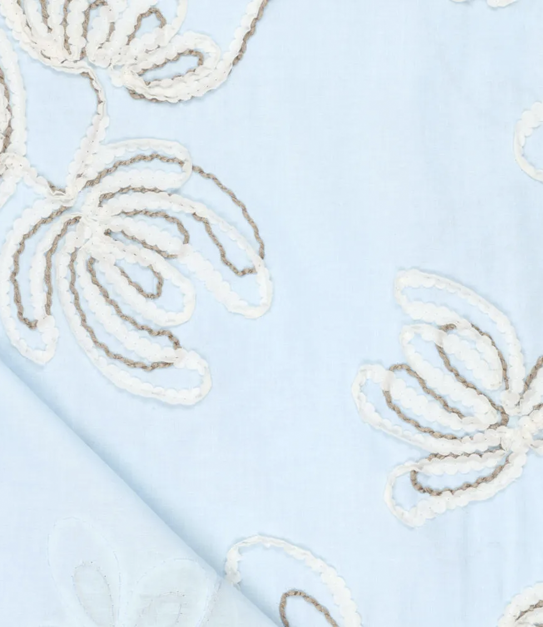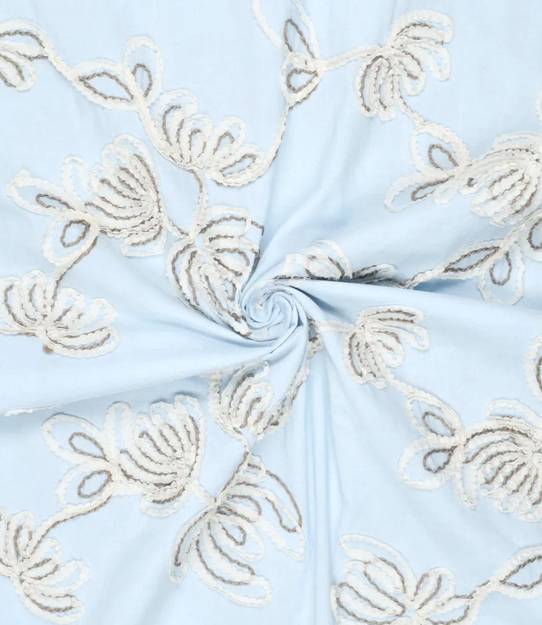 Cotton with beautifully embroidered sequins. Very fashionable. Superb for blouses and dresses.