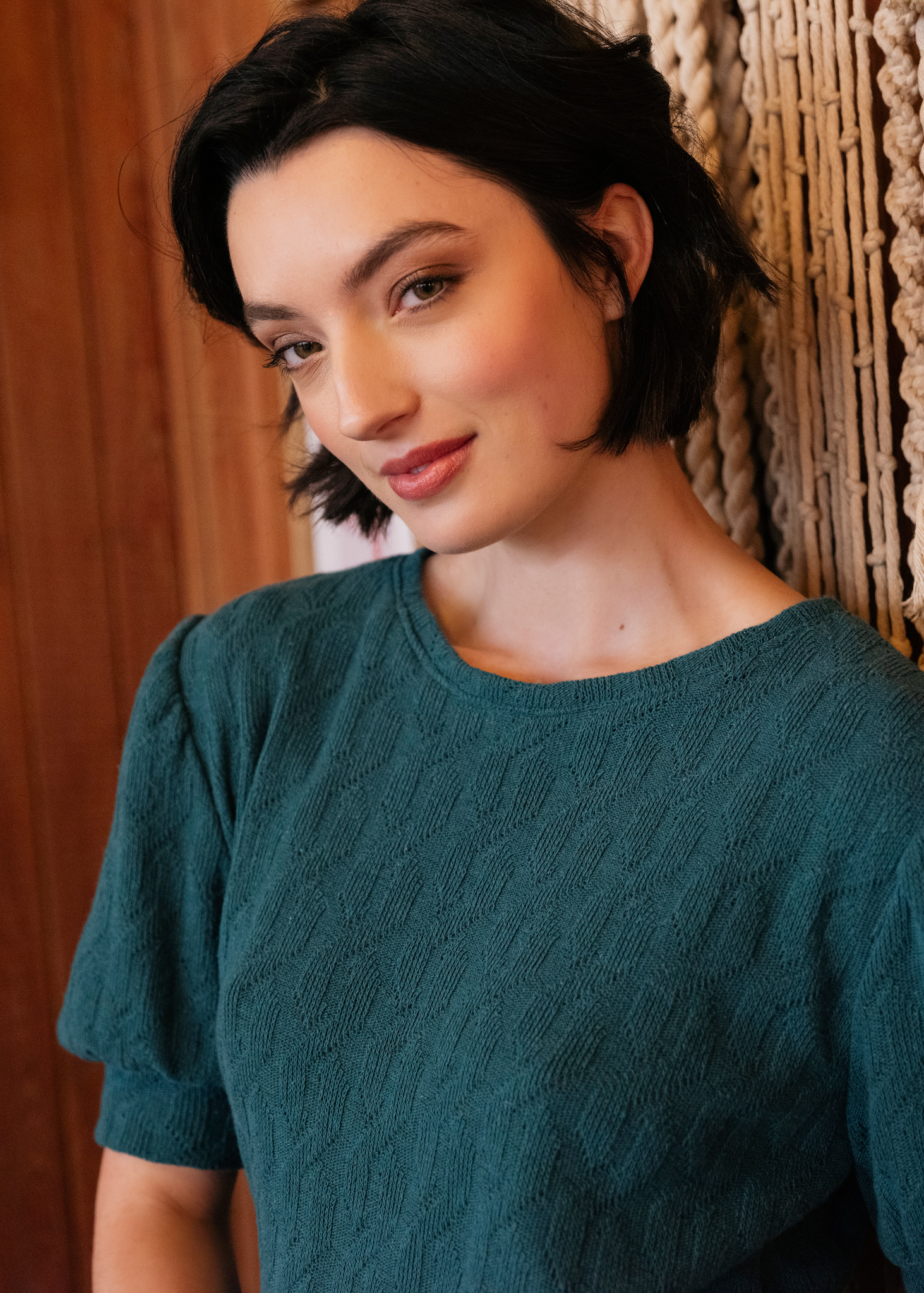 Our Charlie sweater pattern has several options so you can make it your own! You can choose between a round neck with a fine border or a V-neck with a slightly wider border. Also decide for yourself which sleeve you want! Long, wide three-quarter with a fine border or short and gathered, the choice is yours!