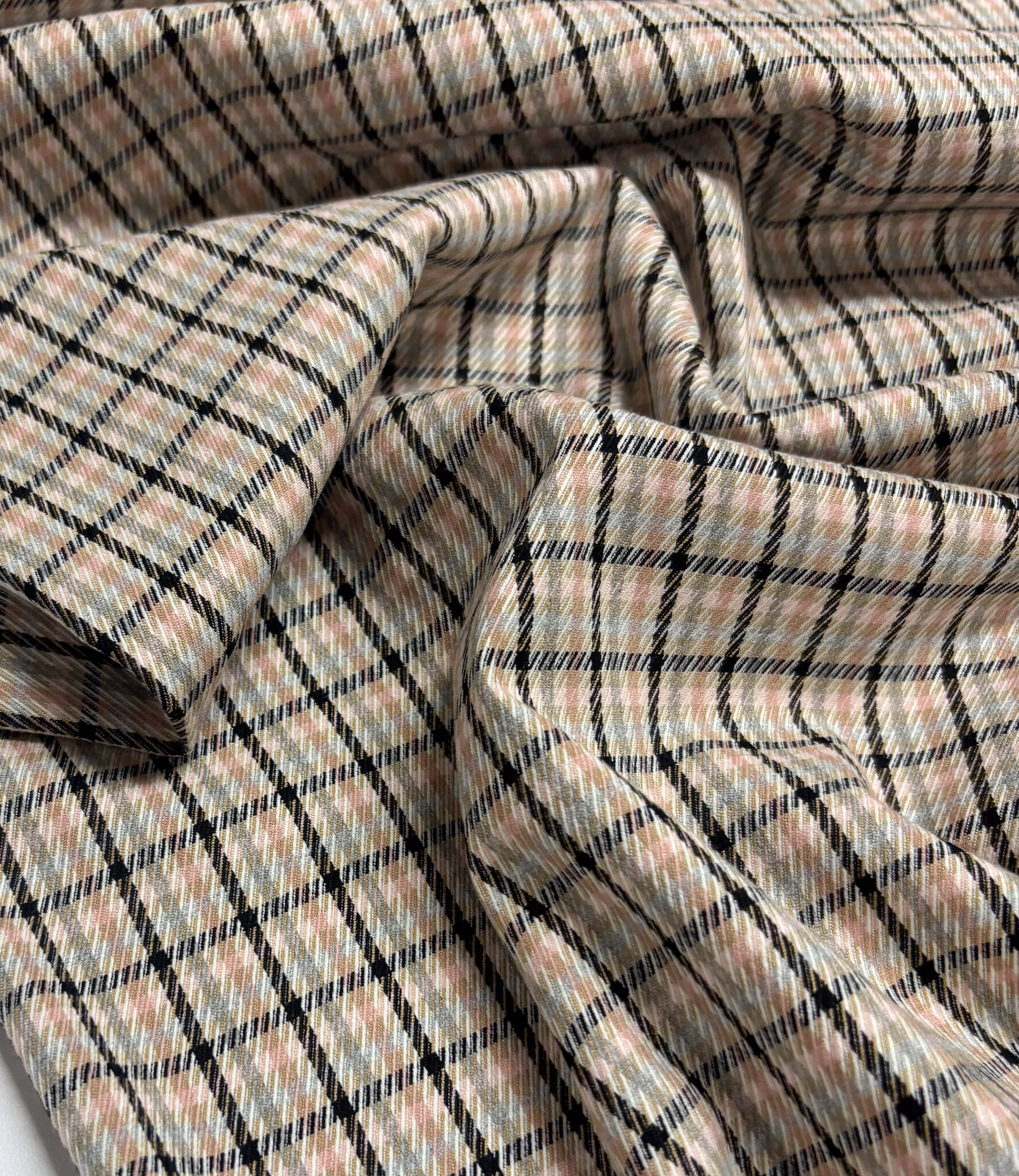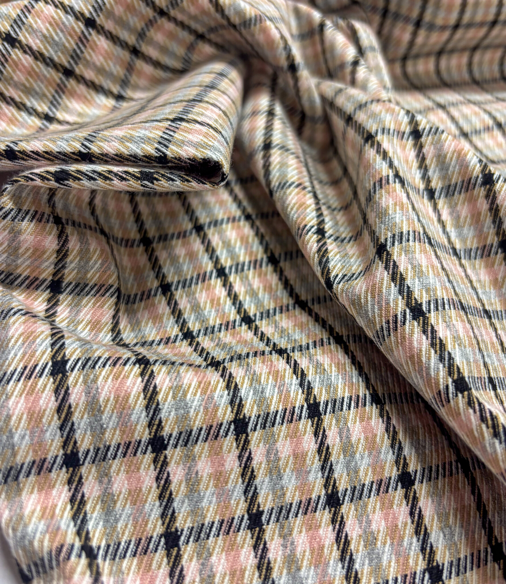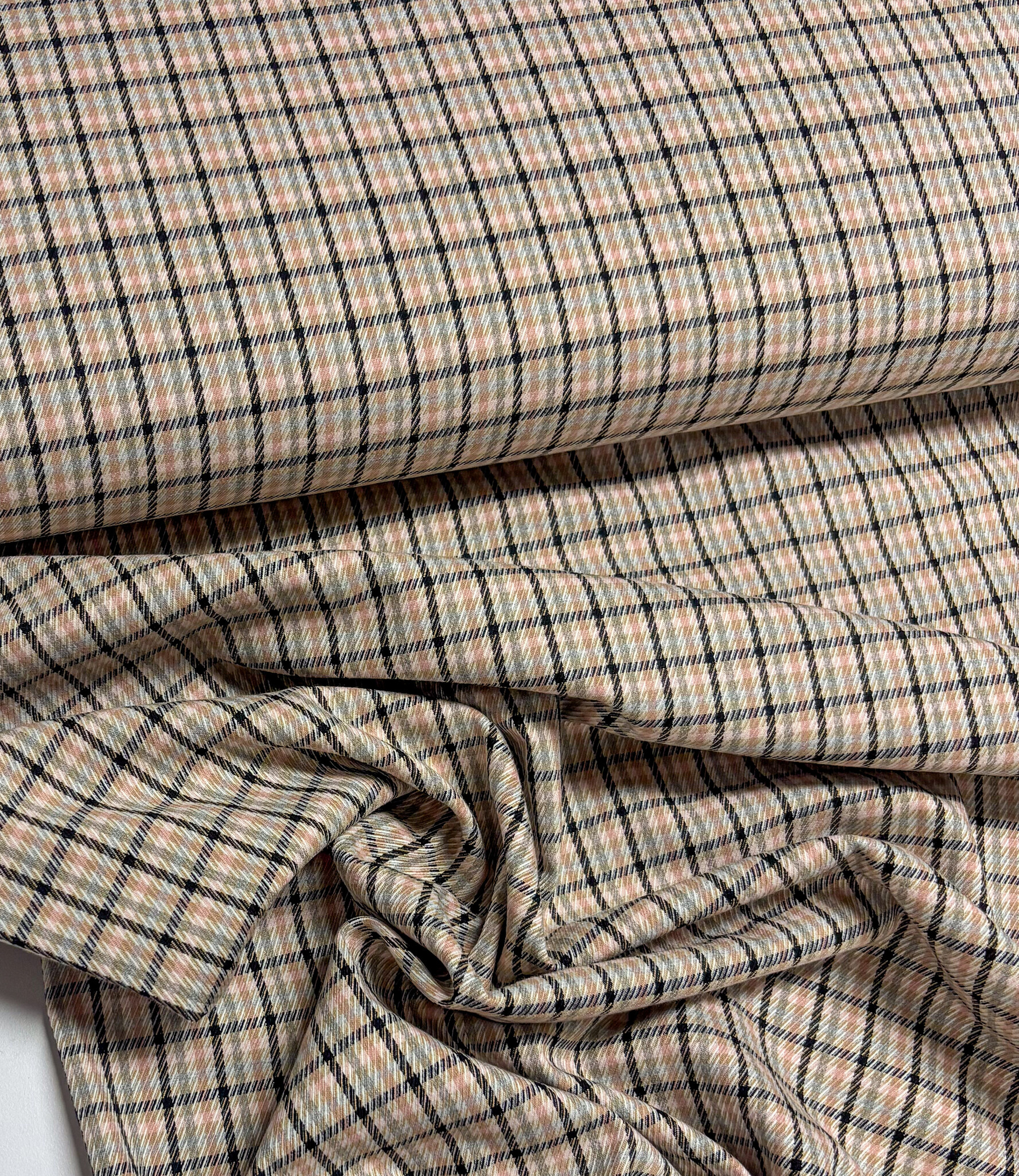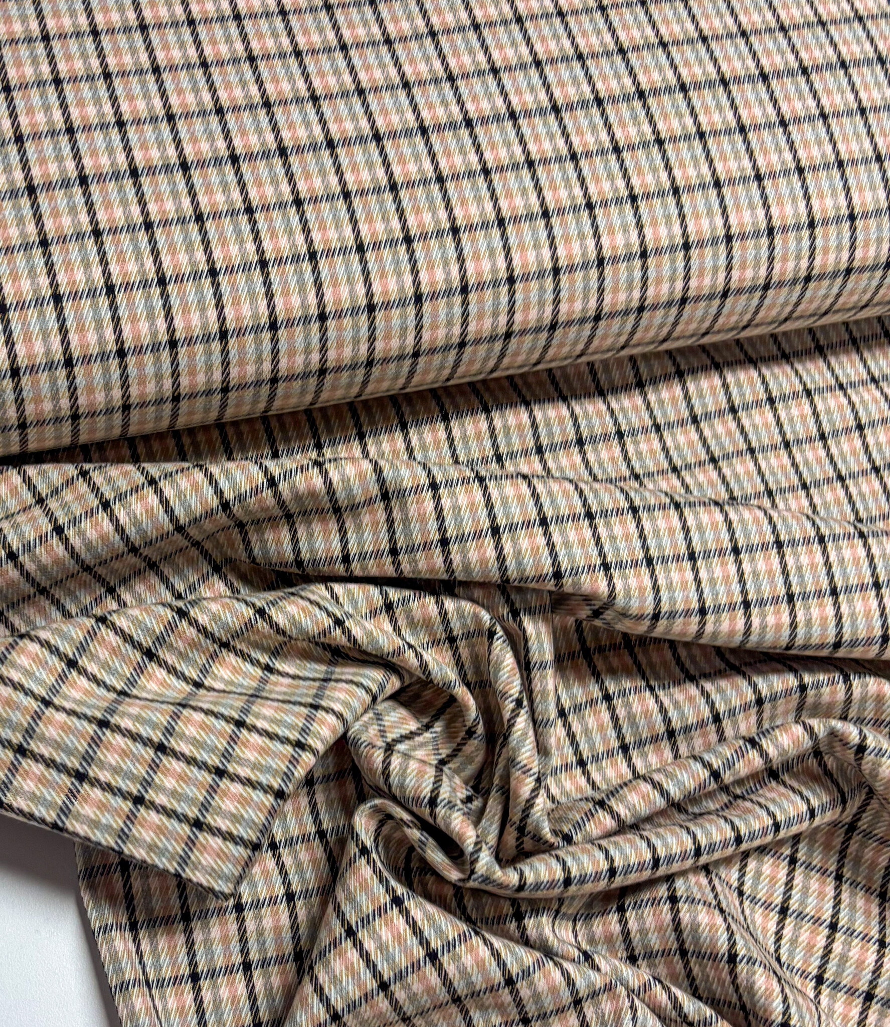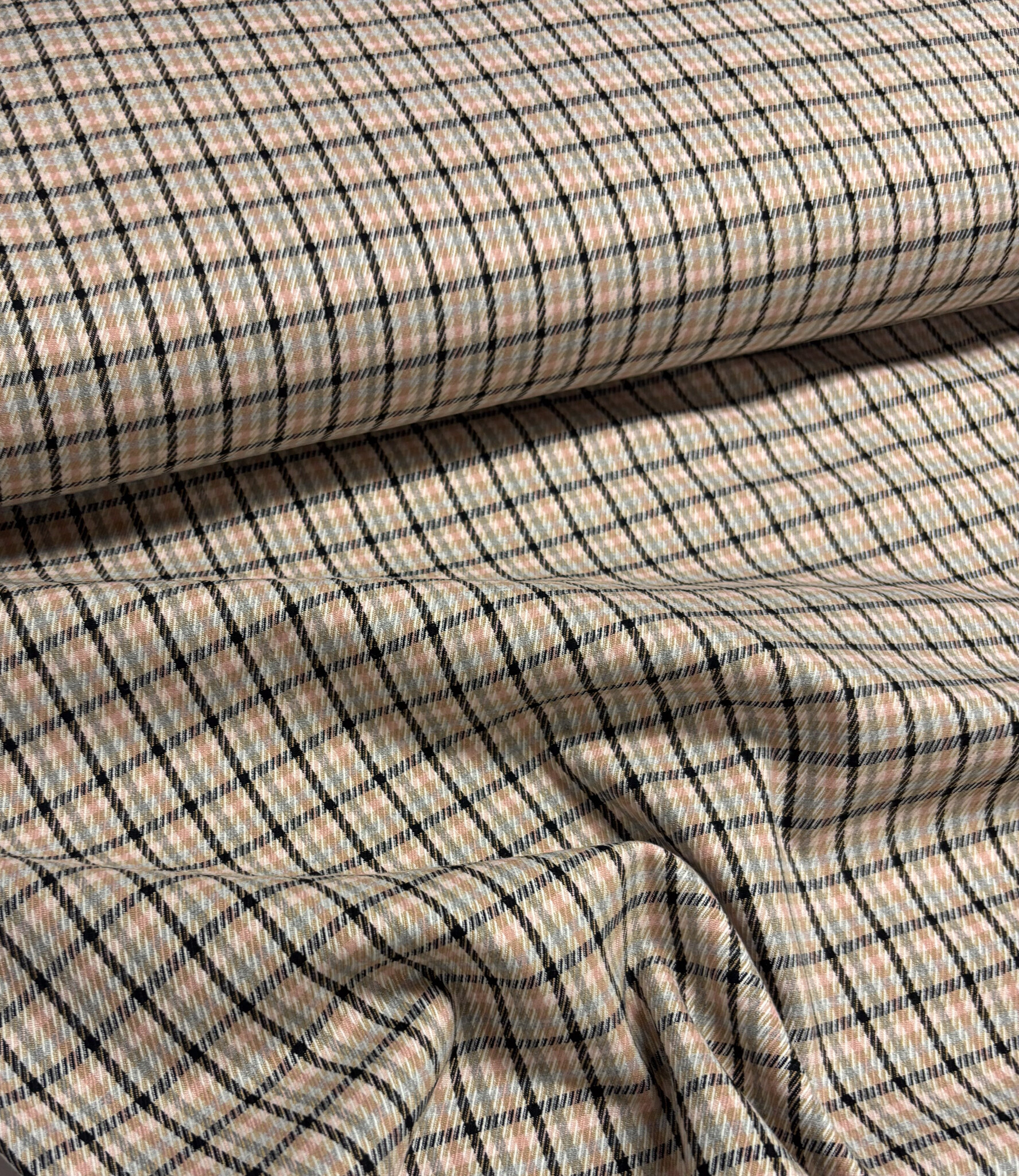 A woven fabric with checked patterns. Perfect for skirts, trousers, blazers, and more.