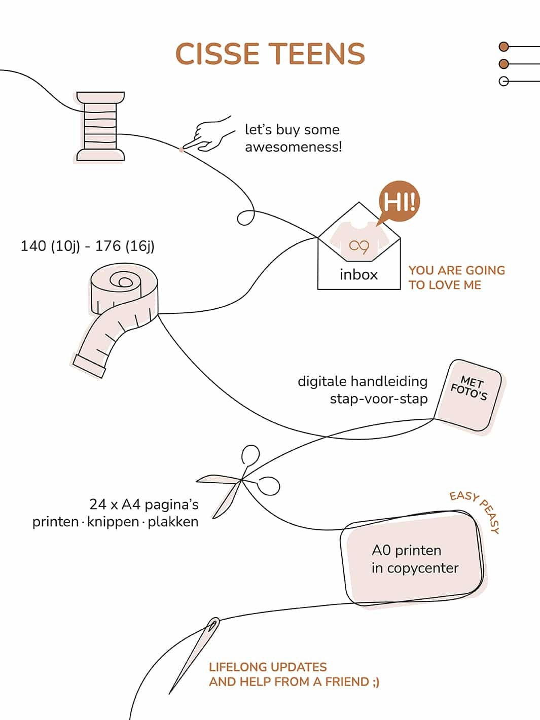 How does it work? Very simple, you order it this way or buy it in our store. You will receive the patterns and manual from us by email. Would you like to receive the pattern on A0 paper? That is also possible, with our A0 printer we will print it out for you immediately. Just click this while ordering.