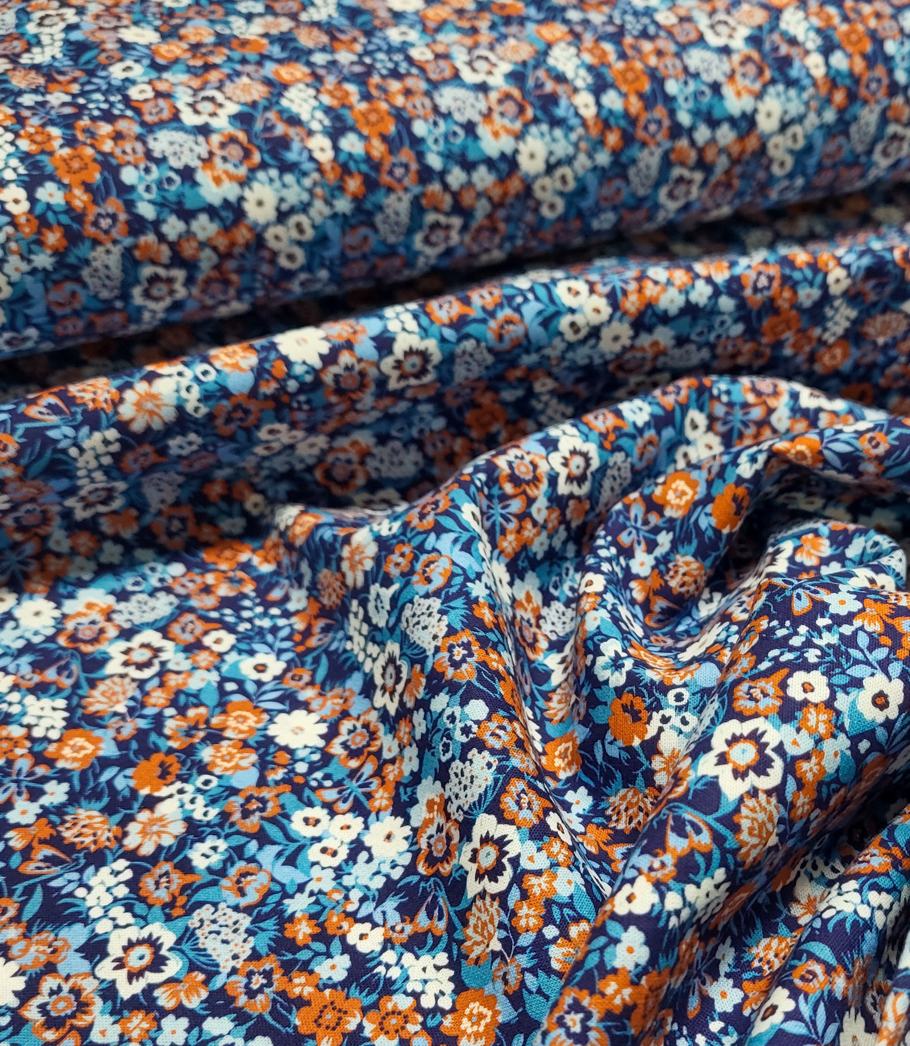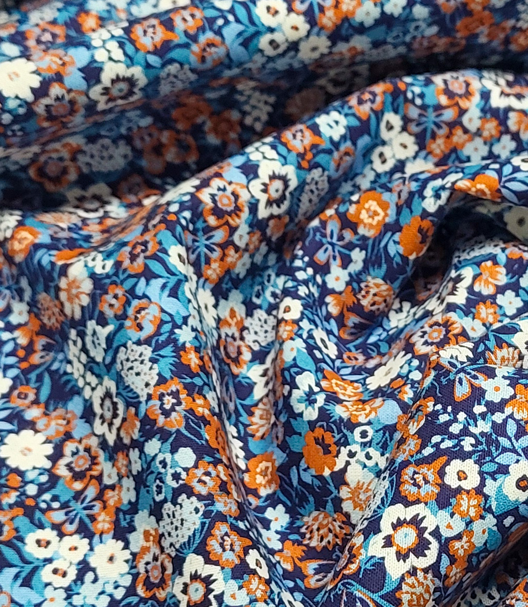 A beautiful cotton with a romantic floral print. Lovely as a lining, but also soft enough for a top, dress, or skirt.