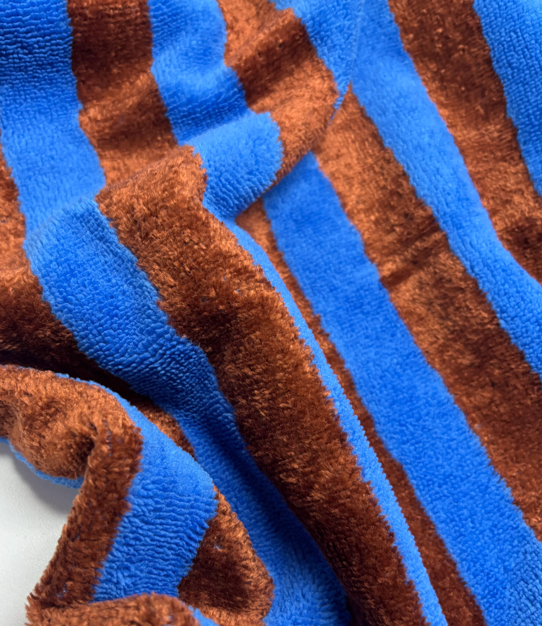 Beautiful quality terry cloth with stripes on one side and a solid color on the other. Great for: bathrobes, towels, beach bags, toiletry bags, shorts, bath capes... Wonderfully soft. OEKO-TEX certified.