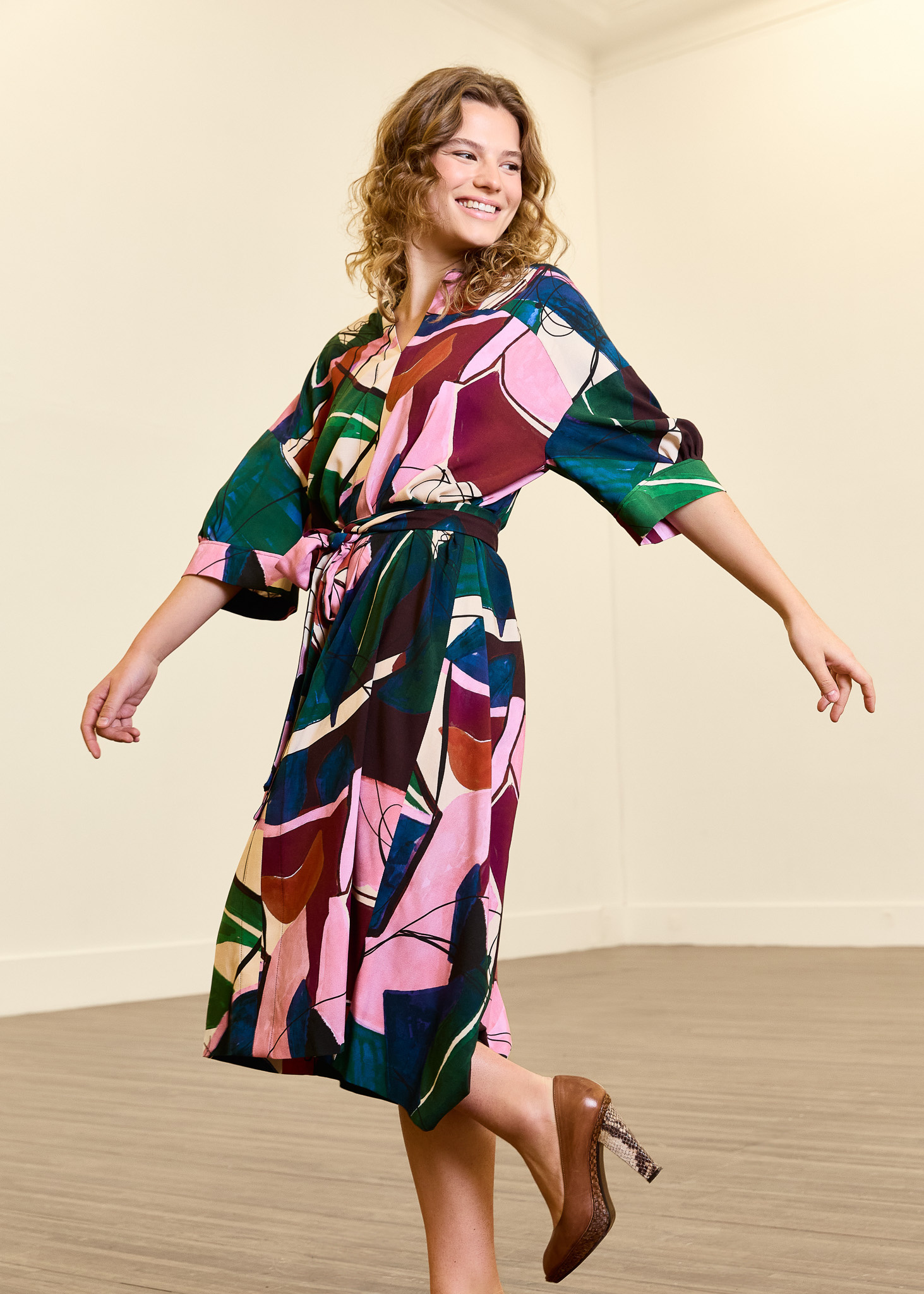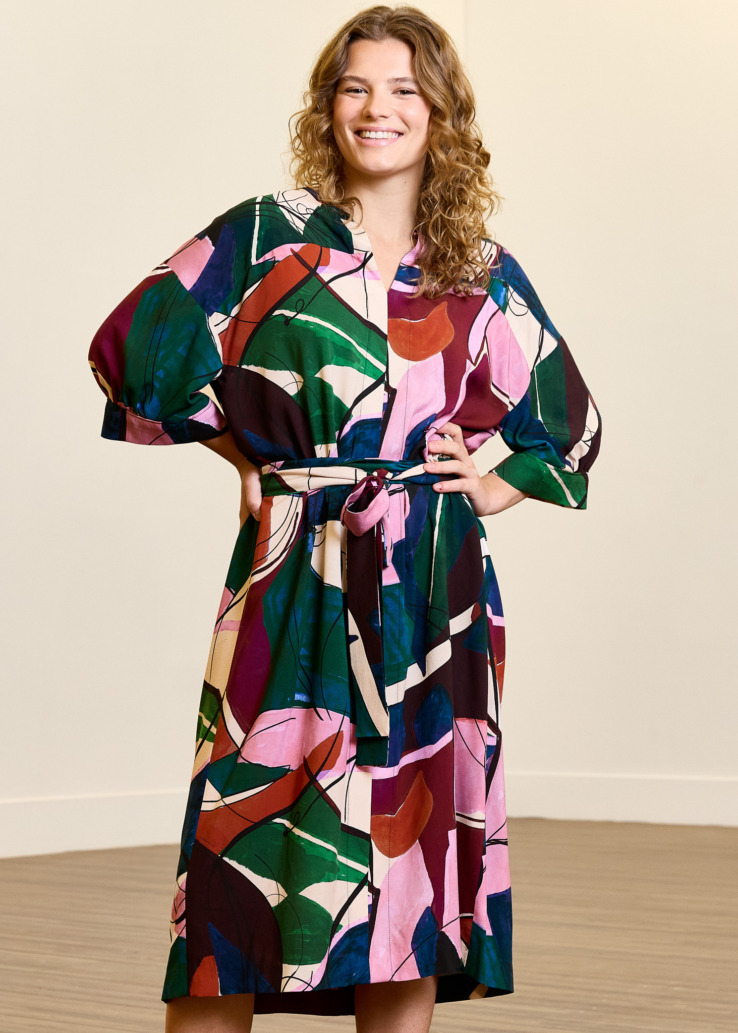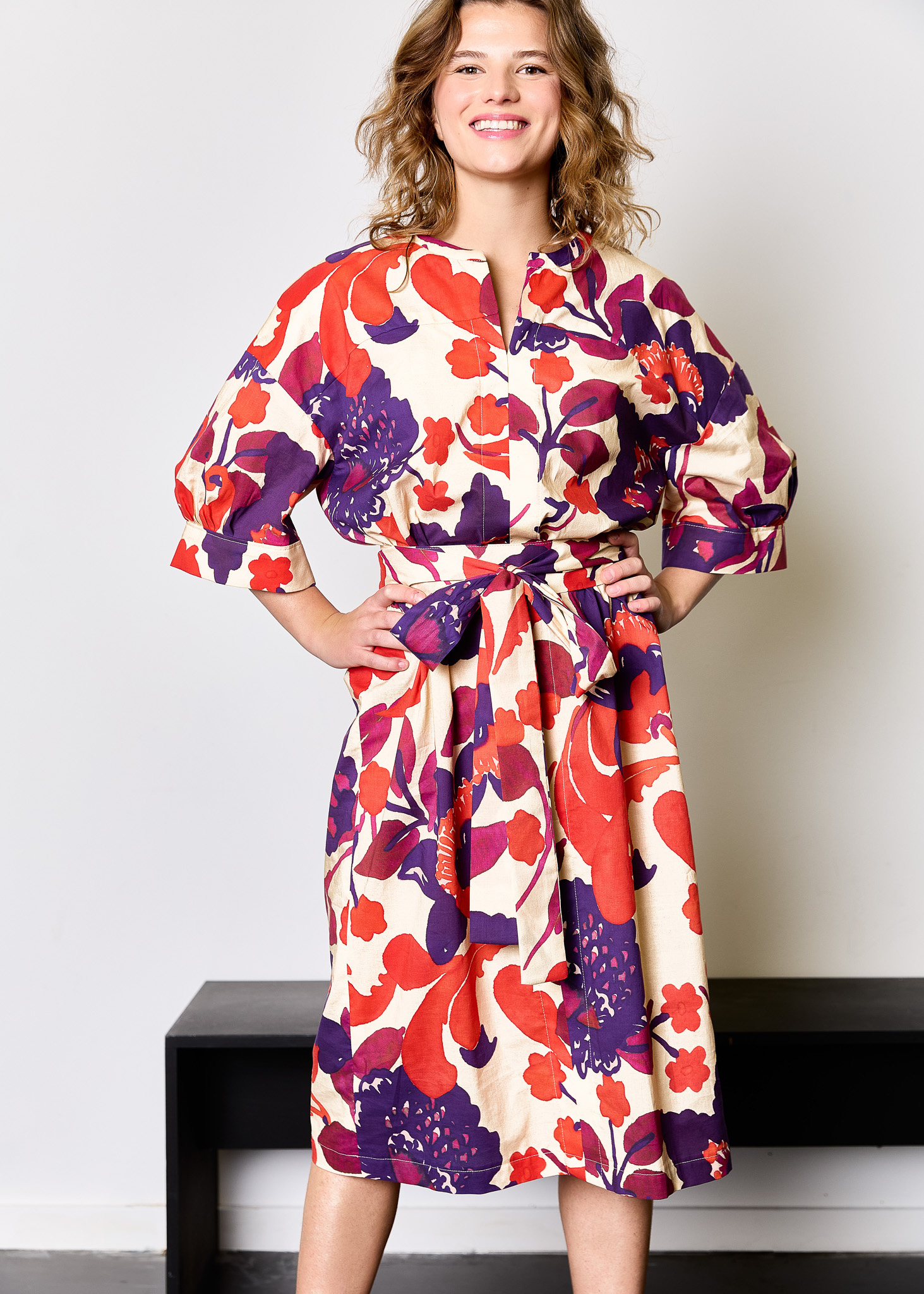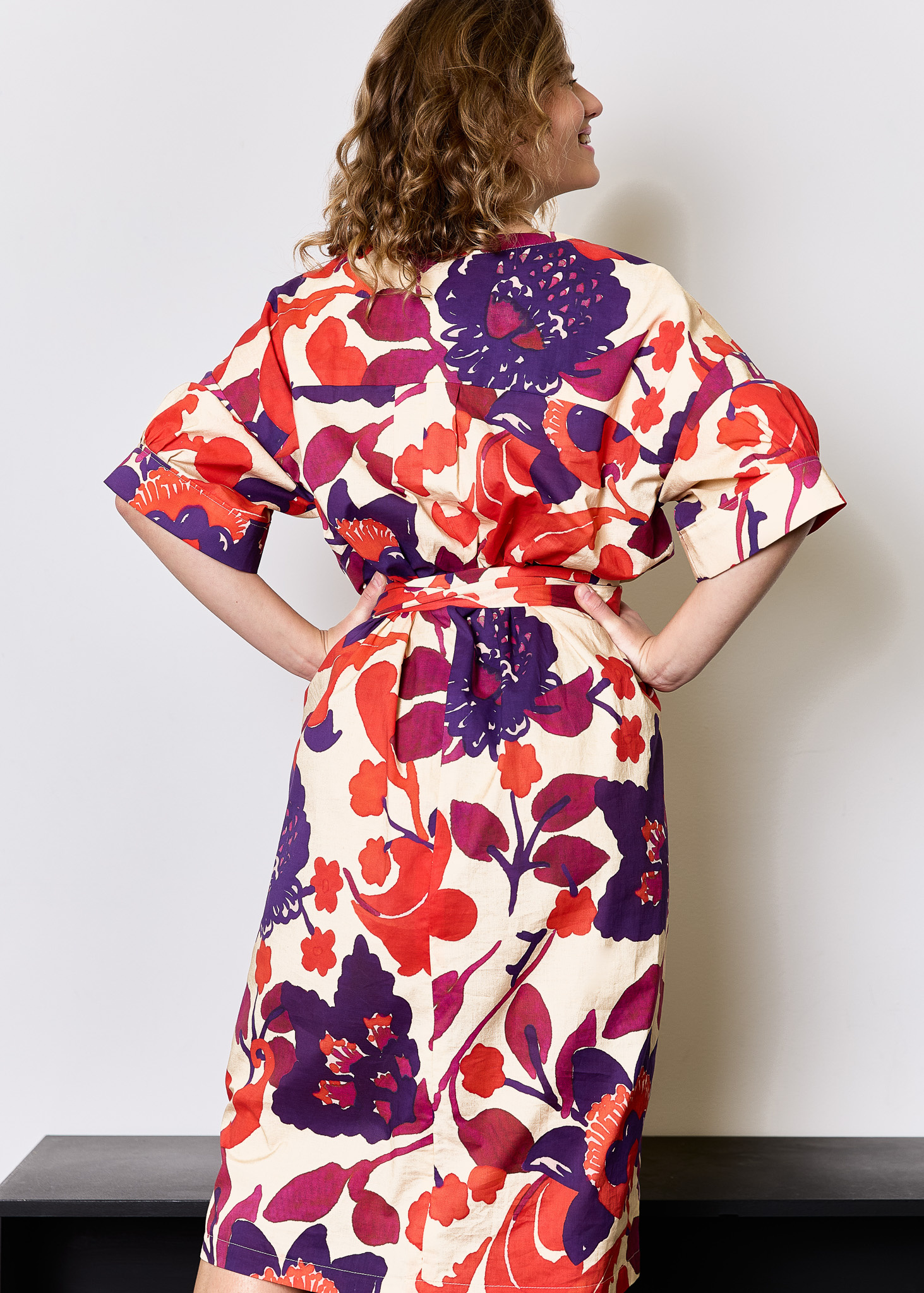 The Lori dress & blouse is an oversized model, with playful elements This pattern has half-length, wide sleeves with nice pleats at the sleeve cuffs, which gives a soft and feminine effect. The Lori dress & blouse is cut horizontally above the chest at the front and back, and vertically at the center front and back. This creates a flattering, structured line that contrasts beautifully with the loose fit.