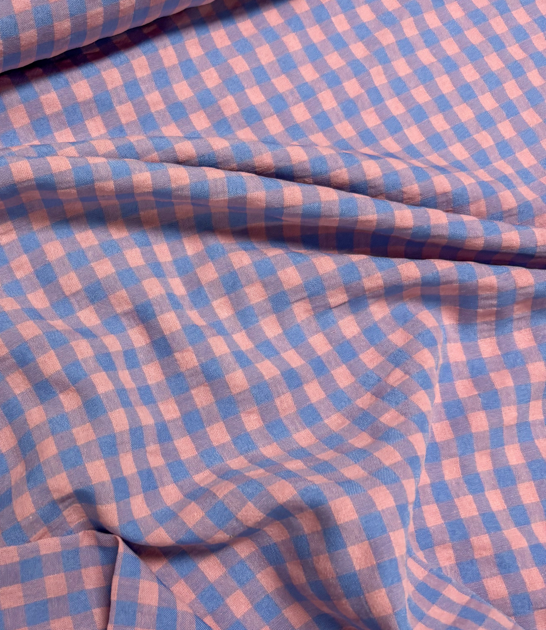blue/salmon pink gingham check - seersucker - Madeline De Stoffenmadam