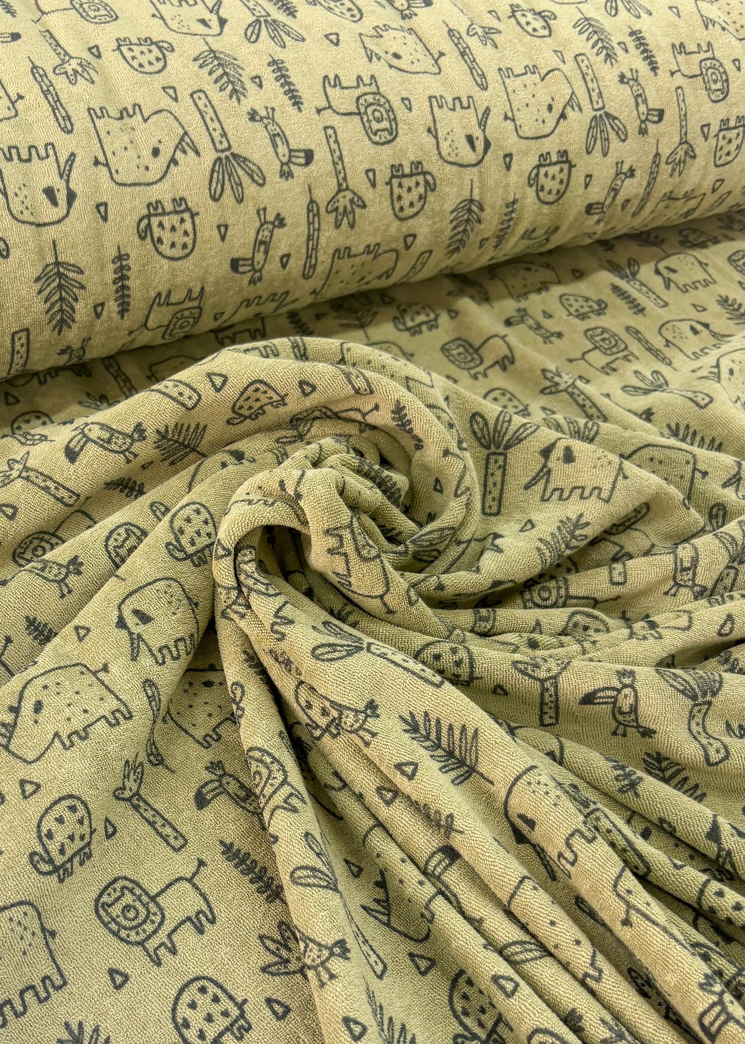 A nice quality stretchy, soft sponge. Super fun with the flowers! Ideal for summer outfits: dresses, shorts, T-shirts, a skirt, ...