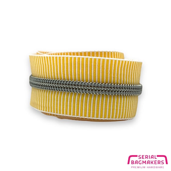 spiral zipper ZEBRA gold yellow - white striped with SILVER spiral #5 (excl. zip pulls)