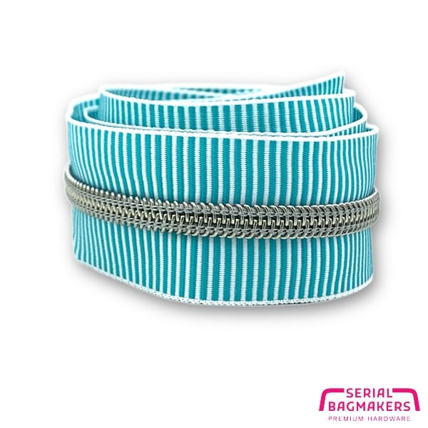 spiral zipper ZEBRA mint - white striped with SILVER spiral #5 (excl. zip pulls)