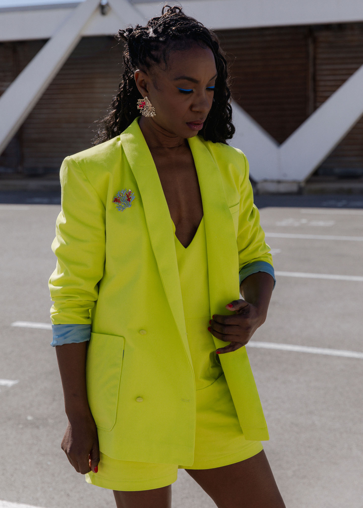 Sewing level : MEDIUM The technical points are sewing darts, sewing a shawl collar, sewing on pockets, making a false welt pocket, mounting shoulder pads and mounting a lining.