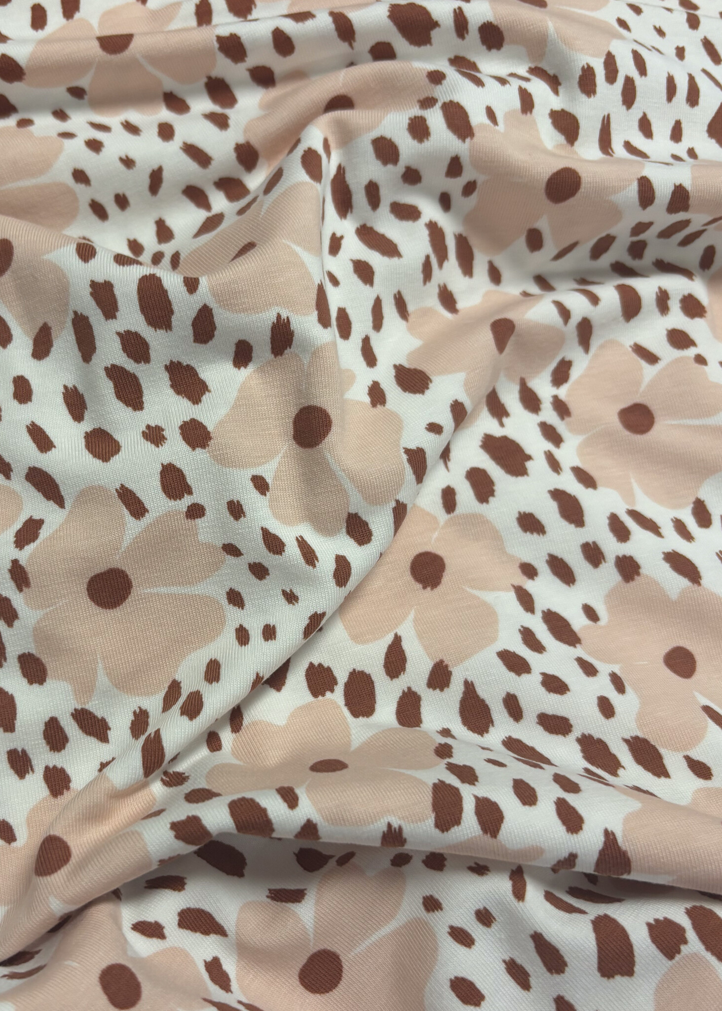 Beautiful quality jersey with flowers. Deliciously soft. Oeko tex.