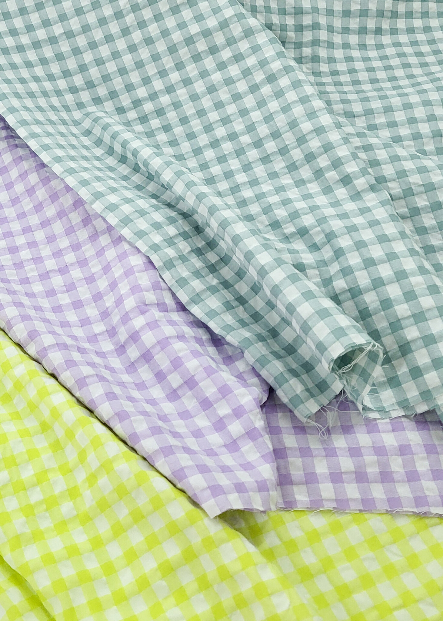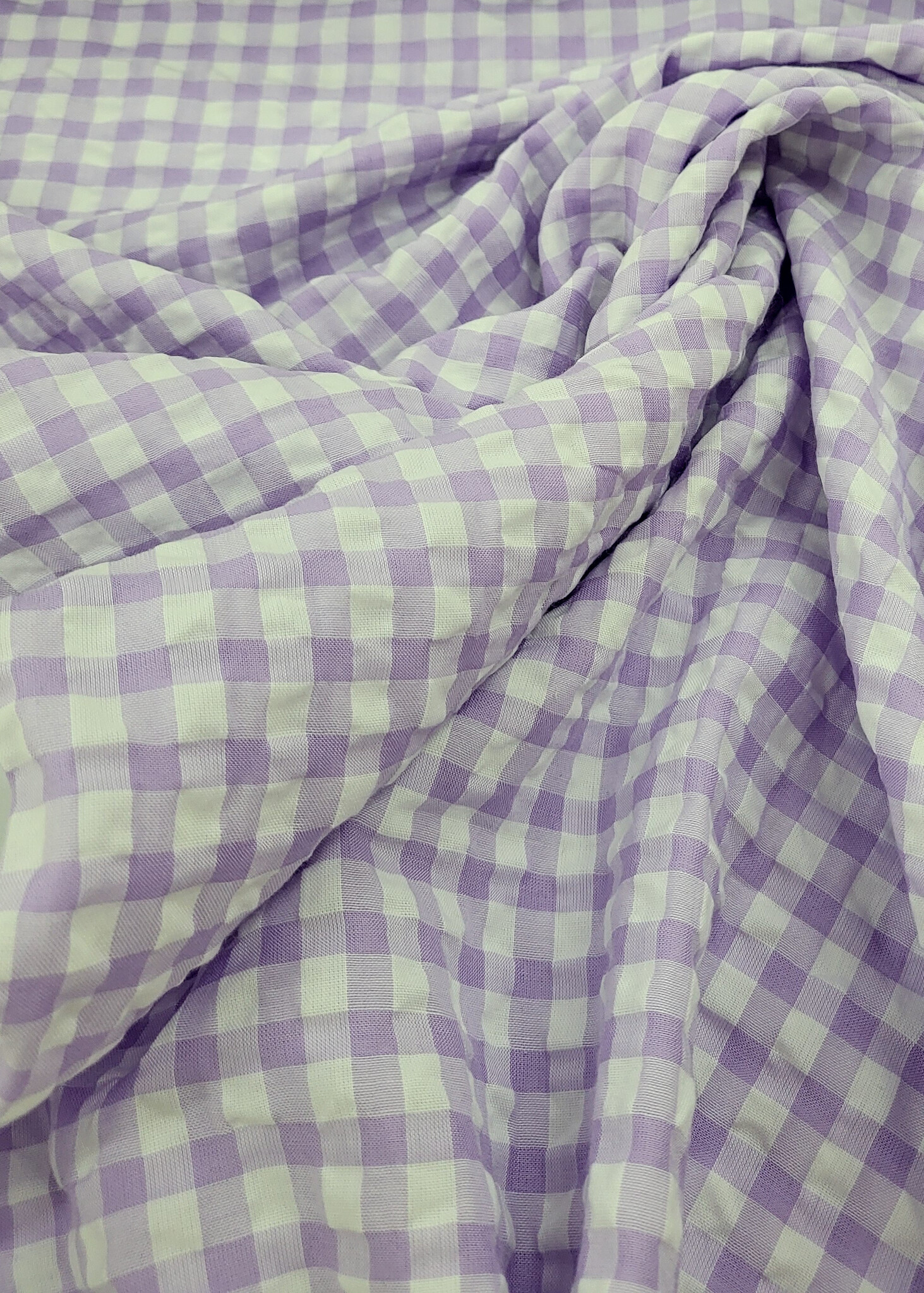 A cool checked seersucker in fresh lilac. Oeko-Tex. Perfect for airy blouses, skirts and dresses.