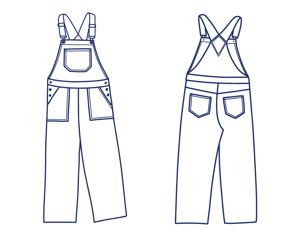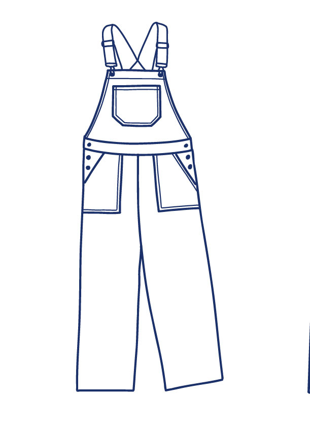 Start your day comfortably and coolly with the Elsie salopette! Elsie has everything a salopette needs: patch pockets at the front and back, loose trouser legs that you can also roll up for a casual look and a checked back panel to which the shoulder straps are attached. The salopette is closed on the sides with three (jeans) buttons each. For Elsie you will need a medium weight cotton, linen, denim or corduroy. You create a completely different look if you choose a plain fabric or a striped denim-like cotton like we did.