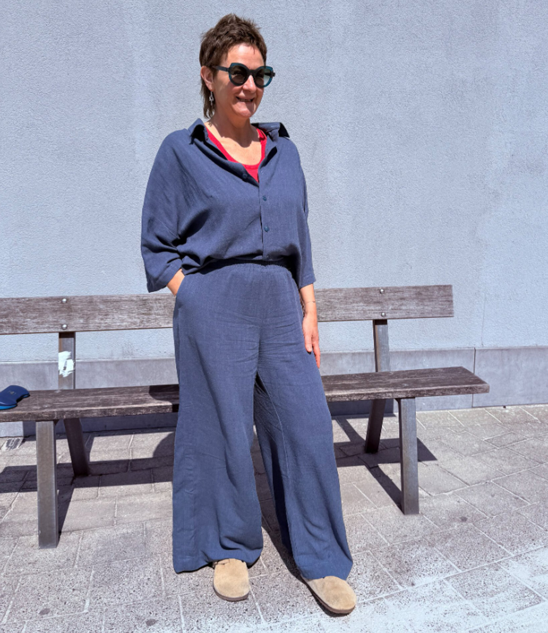 The Kiki set consists of an airy blouse and elegant palazzo-style trousers, ideal for any season.