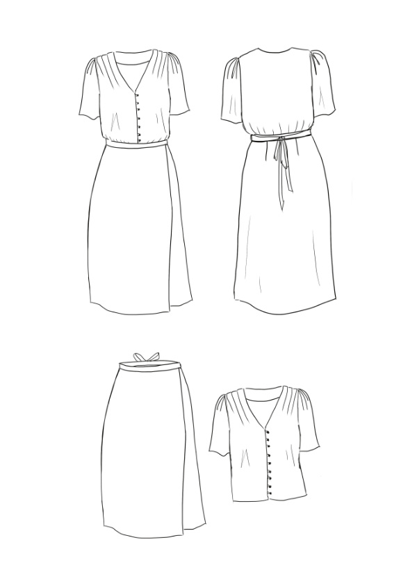 The pattern also includes an explanation on how to transform Penelope into a wrap skirt or blouse. Three-in-one!