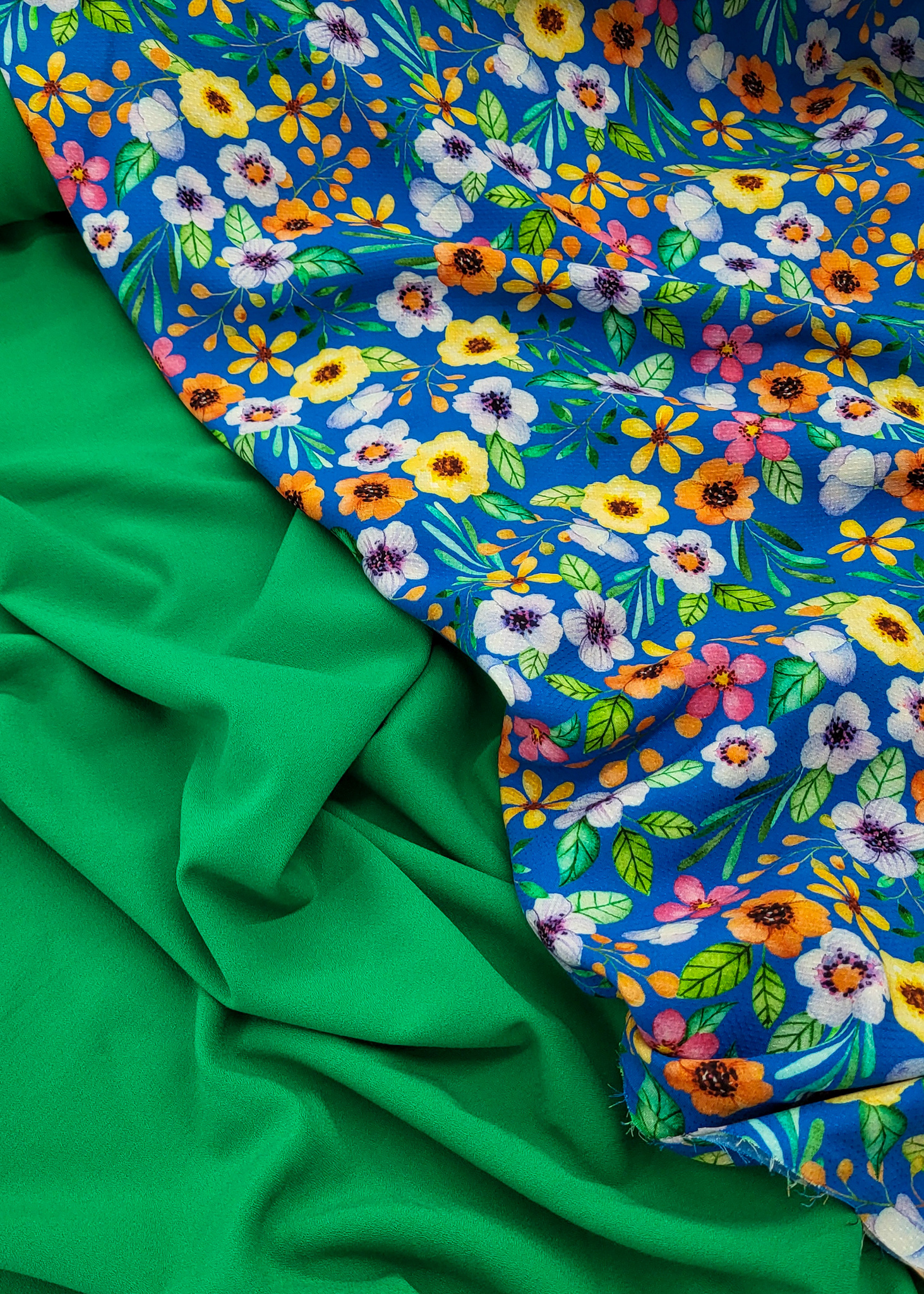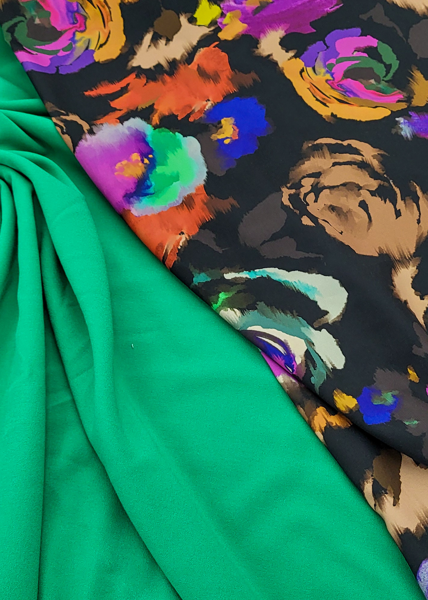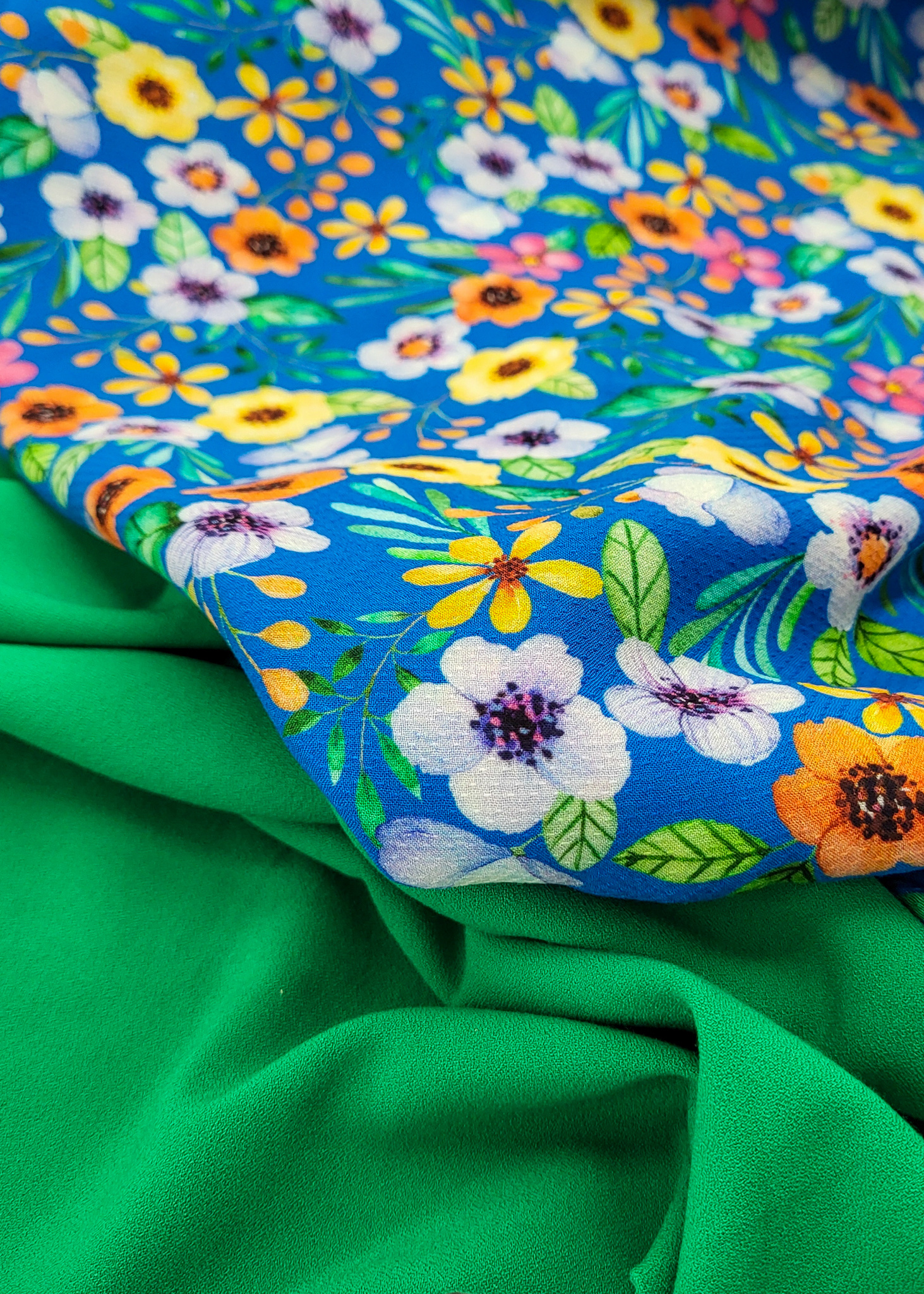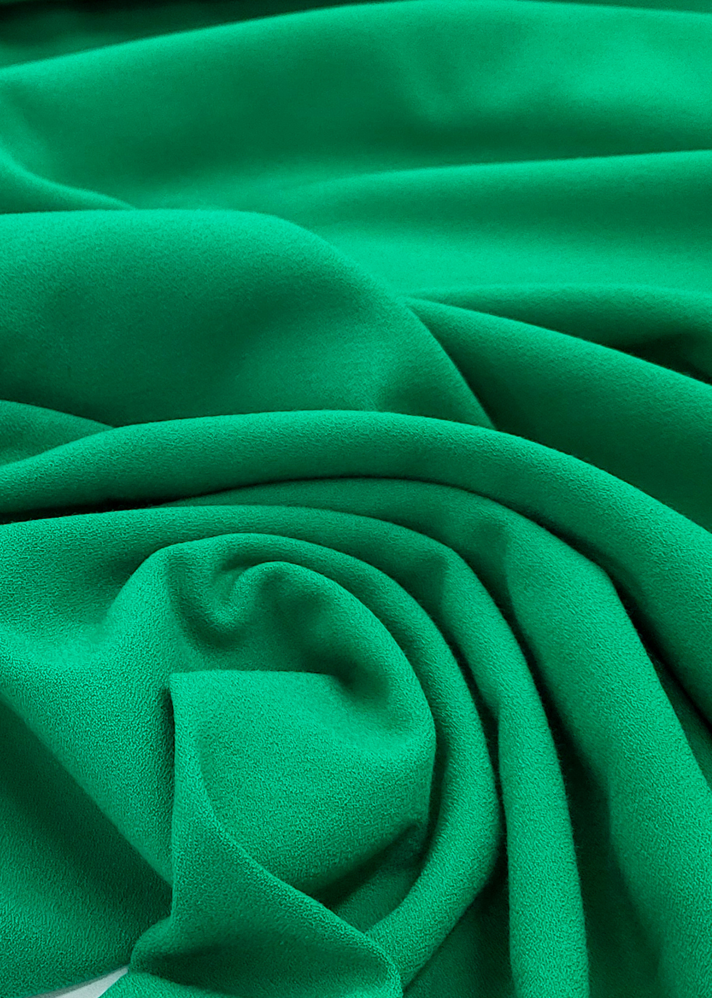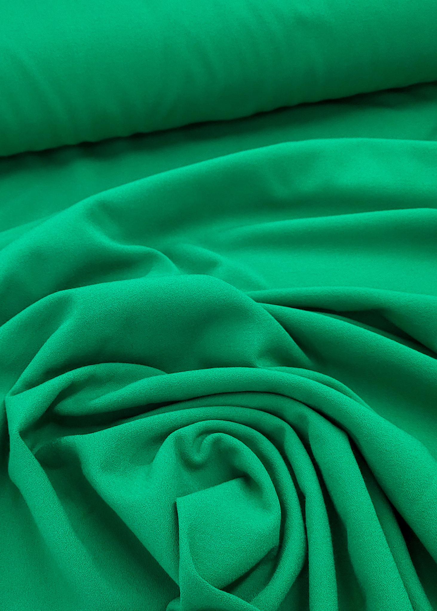 Supple crepe fabric with a nice weight. Does not shine through and falls beautifully smoothly. Ideal for blouses, dresses and skirts. Great for wide, loose trousers! Does not need to be fed. Crepe Marocain.