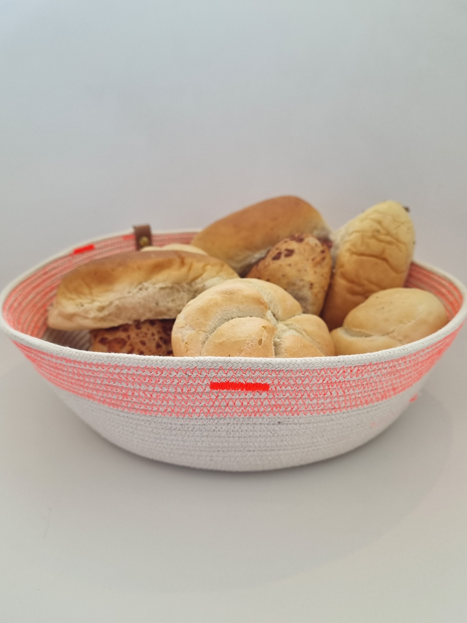 These baskets aren't just beautiful; they also make handy storage solutions. For phone chargers, keys, cookies... in the bathroom or your sewing room. Besides baskets, you can also sew beautiful placemats, for example.
