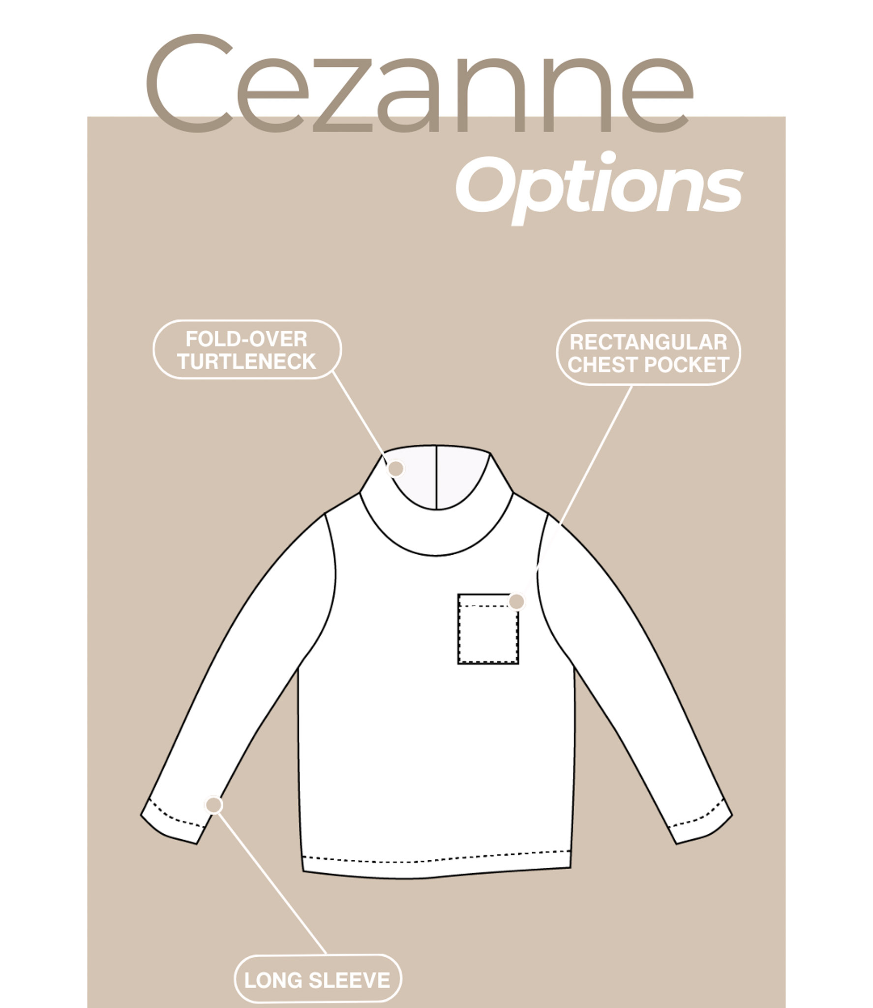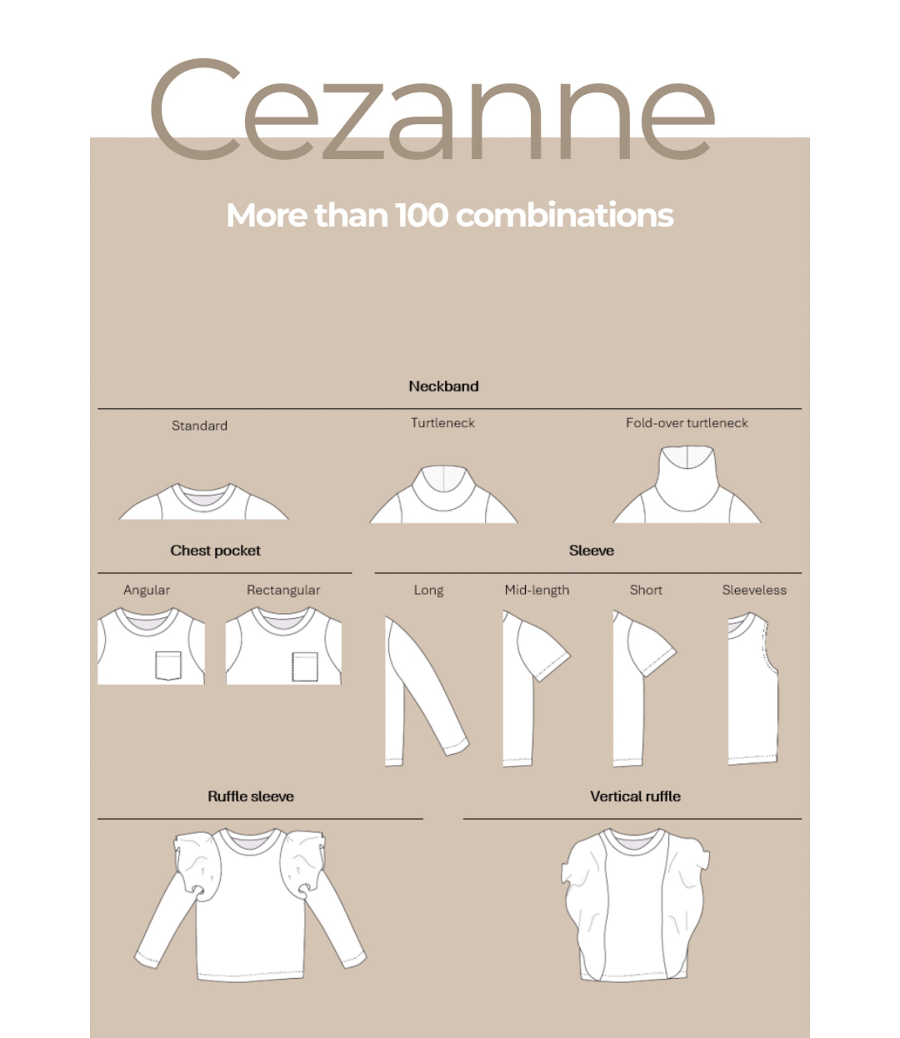 The Cezanne shirt sewing pattern is a versatile pattern that allows you to create your own unique top. Choose from various neck extensions , multiple sleeve options , and an optional chest pocket . This allows you to customize the shirt to your own style, from a simple basic to a playful statement piece.