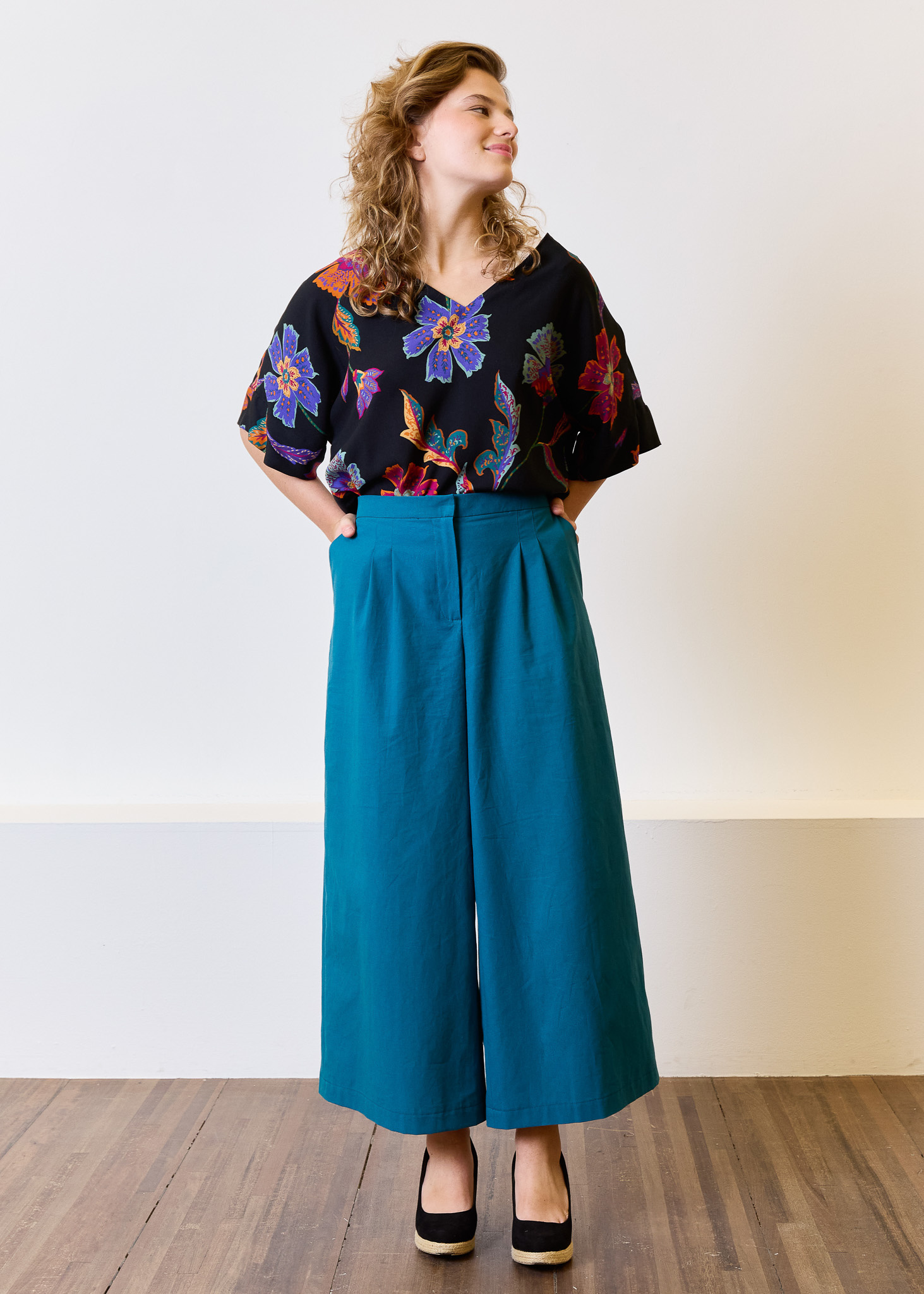 For this pattern it is best to use a medium-weight fabric, such as cotton, viscose, tencel, gabardine, polyester, linen, fine wool,...