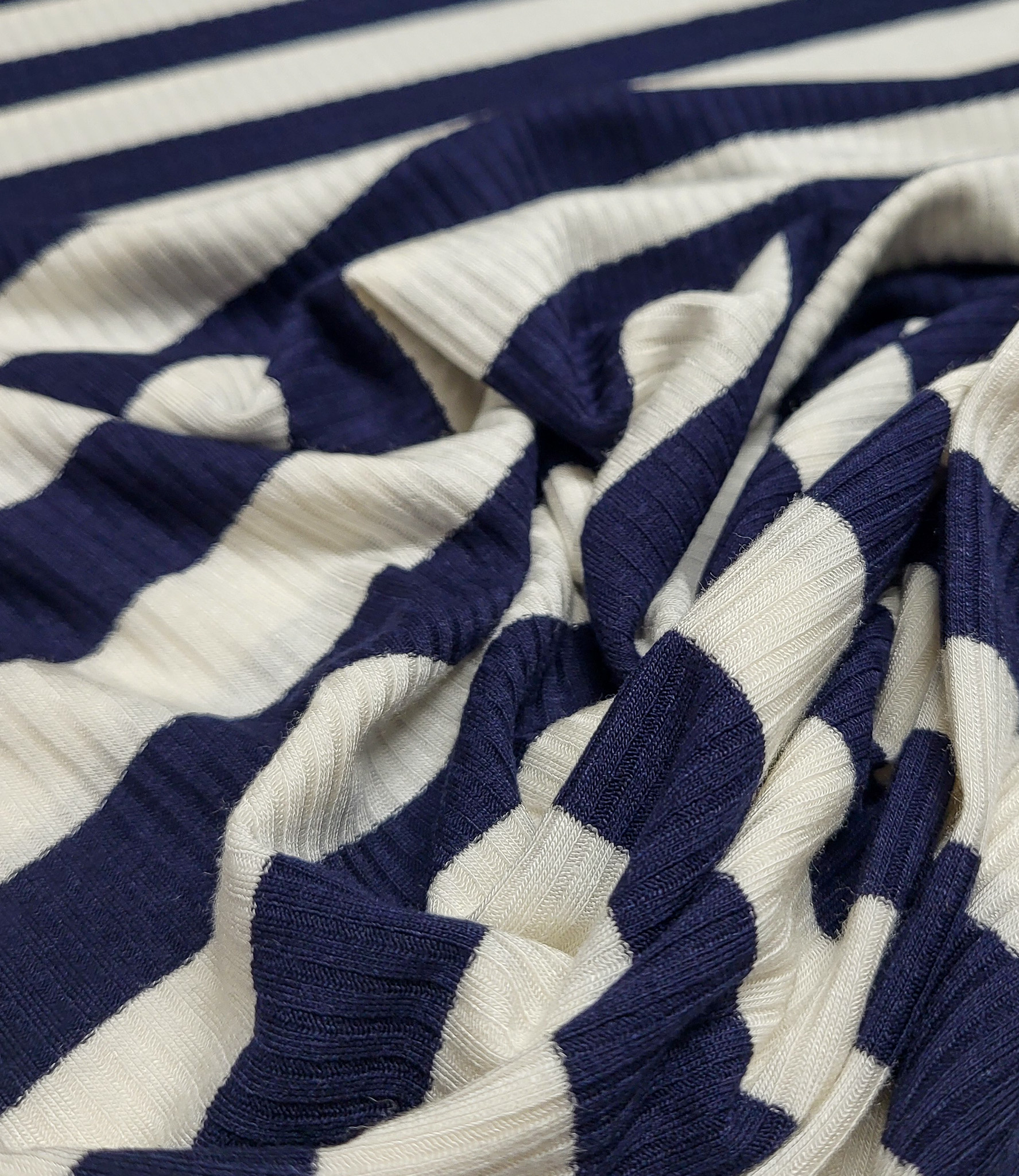 viscose jersey with flat rib - navy blue striped - Madeline De Stoffenmadam
