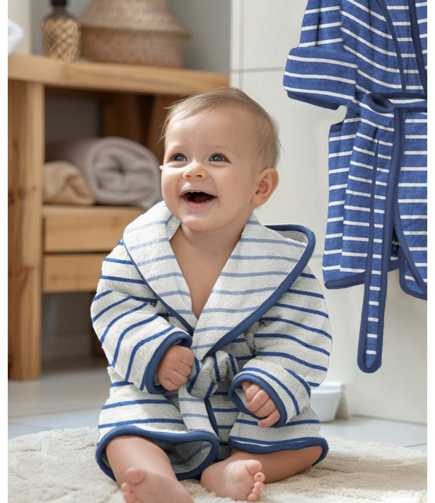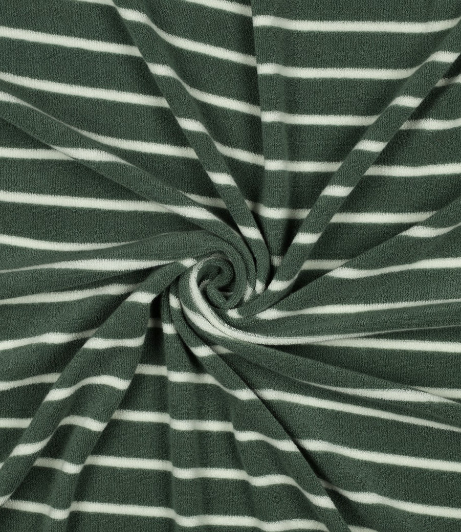 A beautiful, stretchy, soft sponge with stripes. This fabric is used in Poppy Meets Pommé edition 26. Ideal for summer outfits.