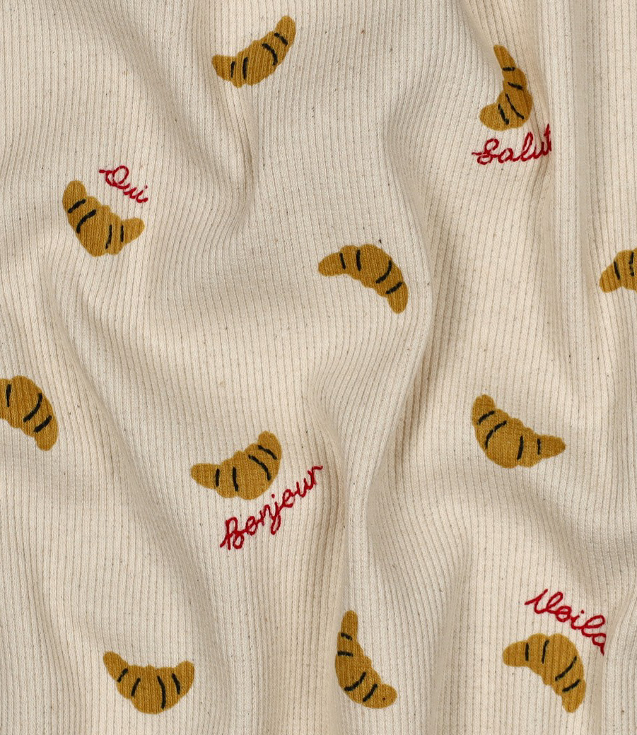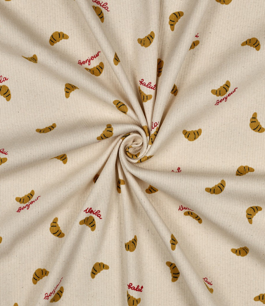 Beautiful, extra-wide ribbed jersey with a cool print. Perfect for T-shirts, children's and baby clothes, and more. Durable yet with plenty of stretch, it returns beautifully to its original shape. OEKO-Tex certified.