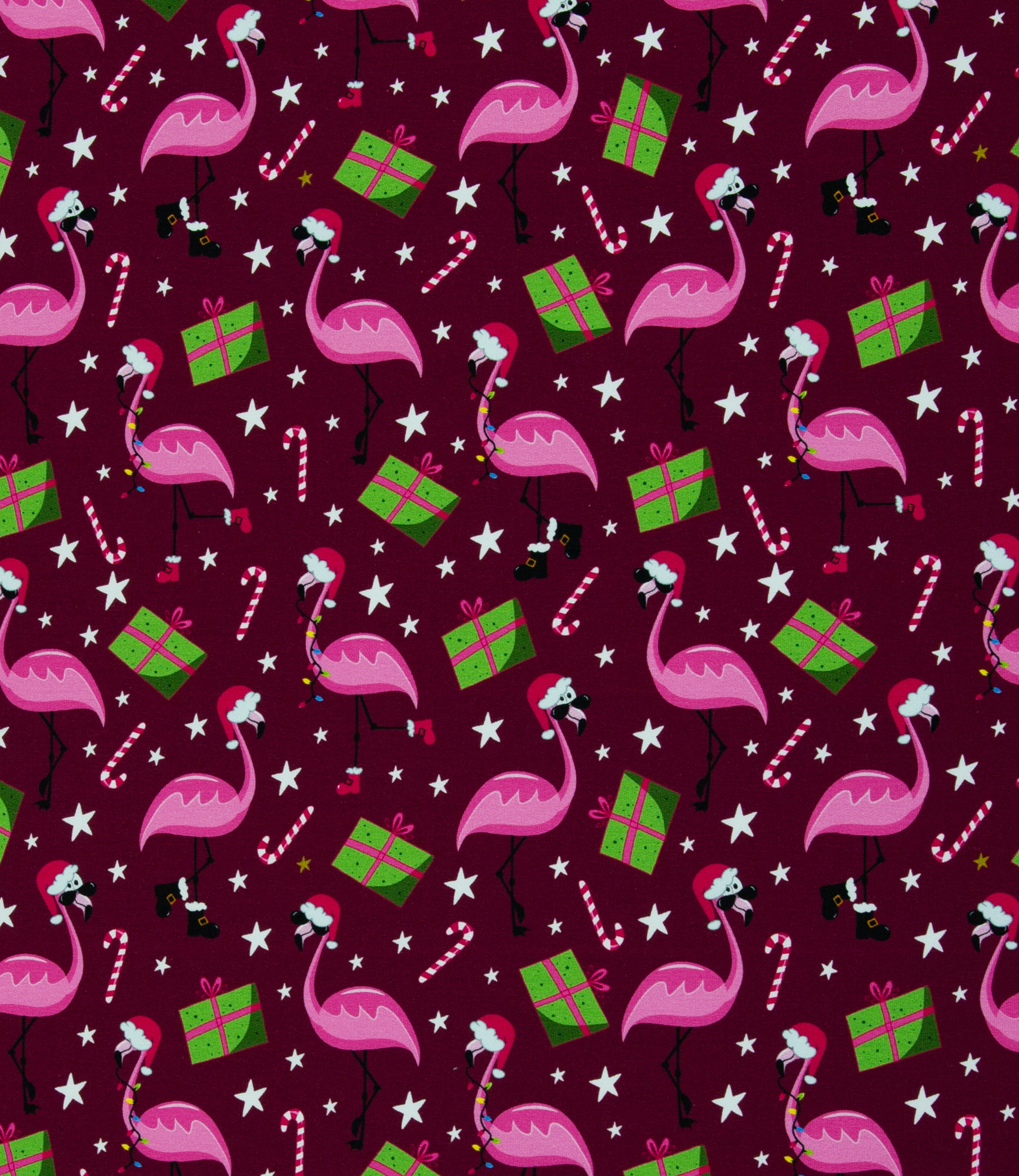 Beautiful, high-quality French terry sweater fabric, looped at the back with Christmas flamingos. OEKO-TEX. Swafing fabric.