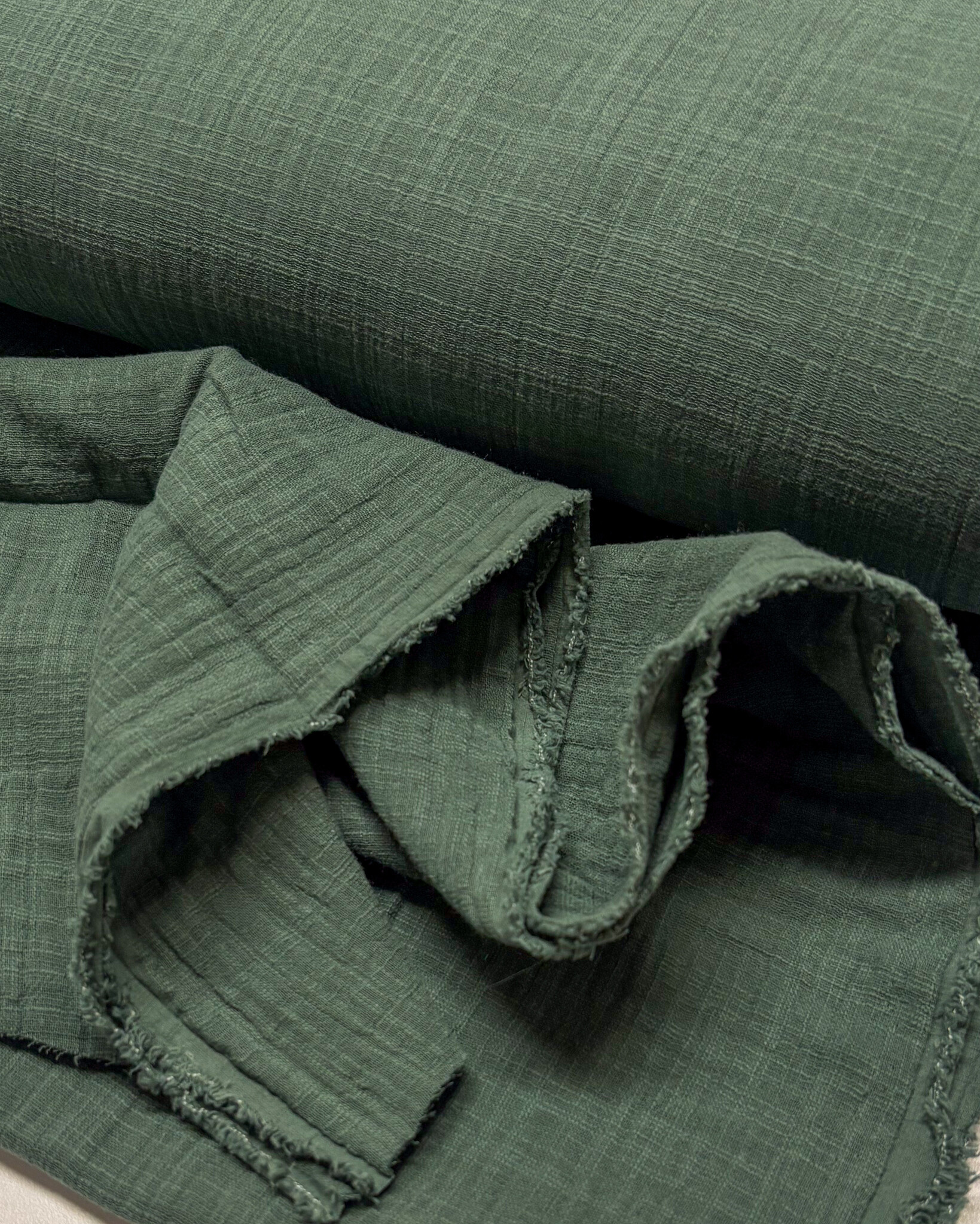 dark balsam green - linen cotton mix double gauze / plain tetra
