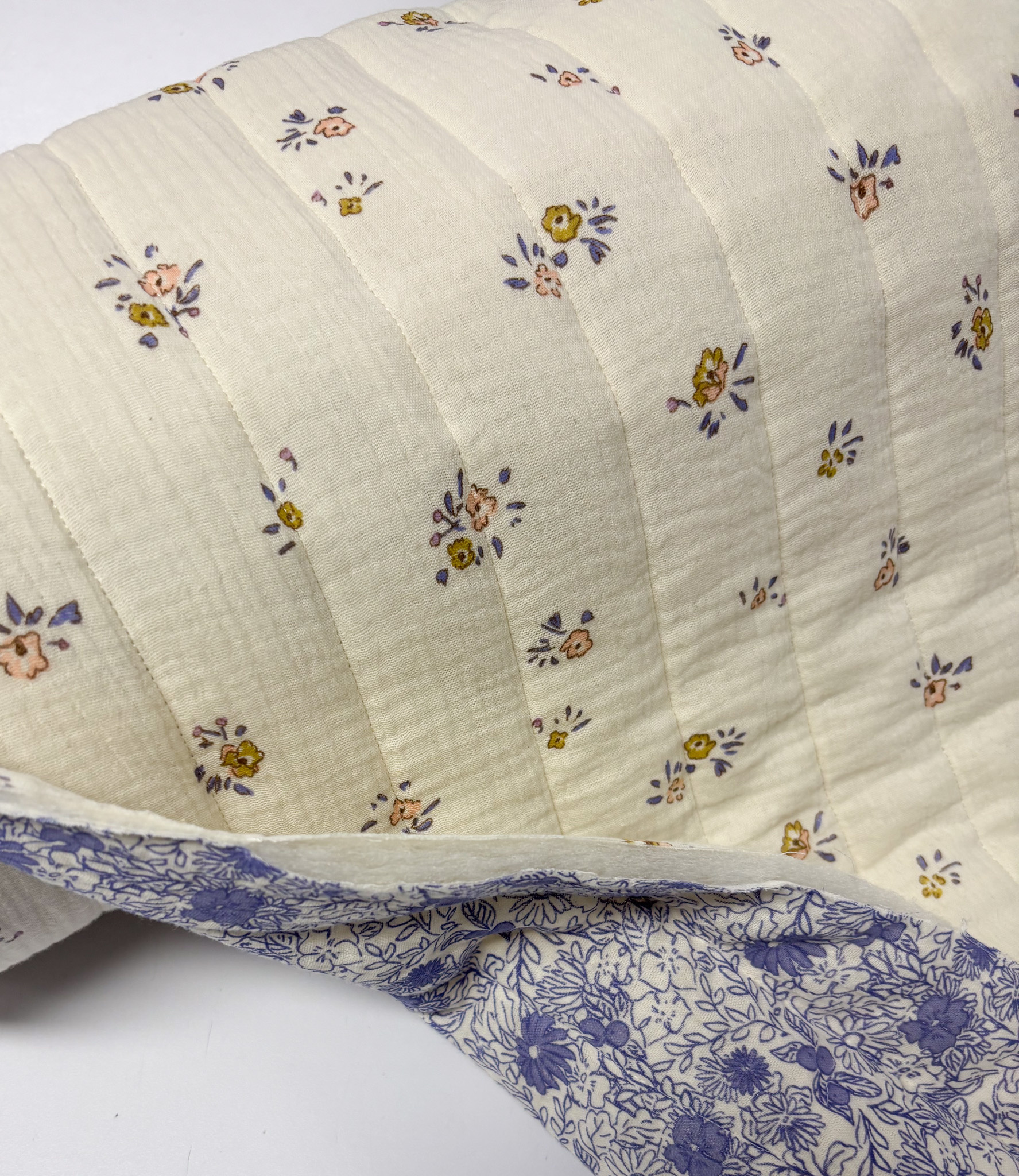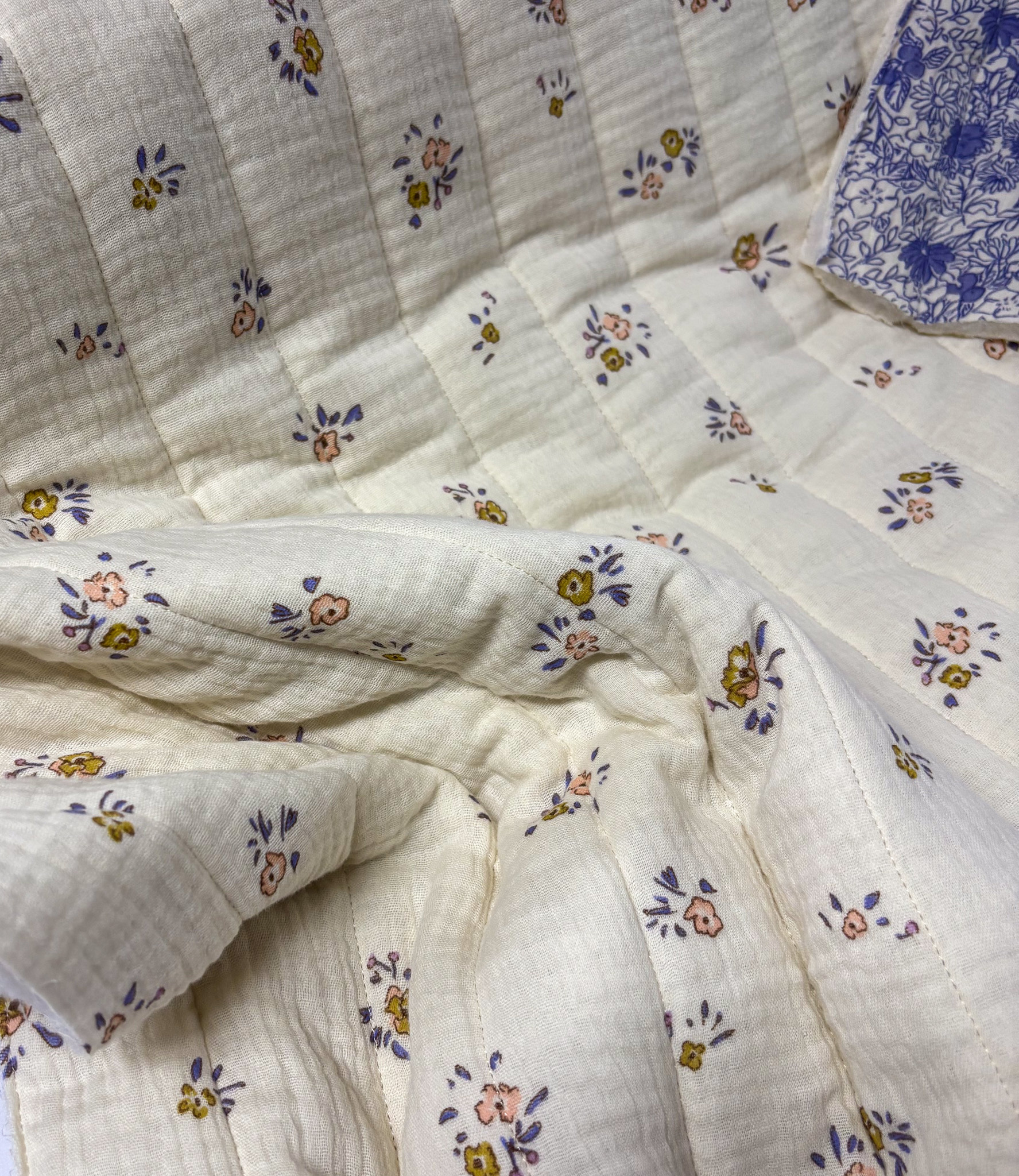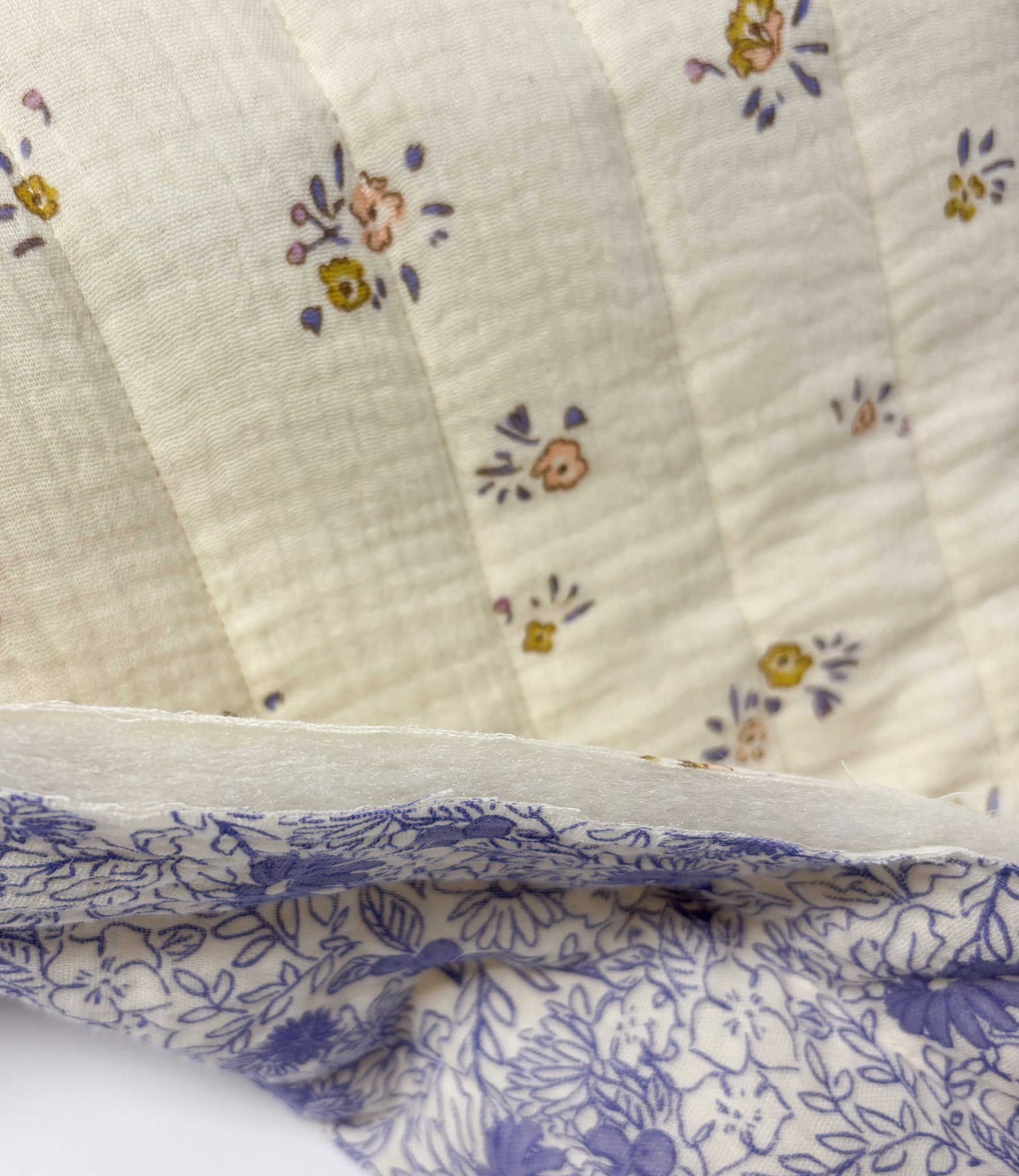 A soft, quilted double gauze tetra. Double-faced, so this fabric can be used on both sides. Perfect for jackets, body warmers, blankets, and more. Perfect for the Junna vest by Bel 'Etoile. Also perfect for the Junna Bodywarmer (zip-up vest) by Bel 'Etoile.