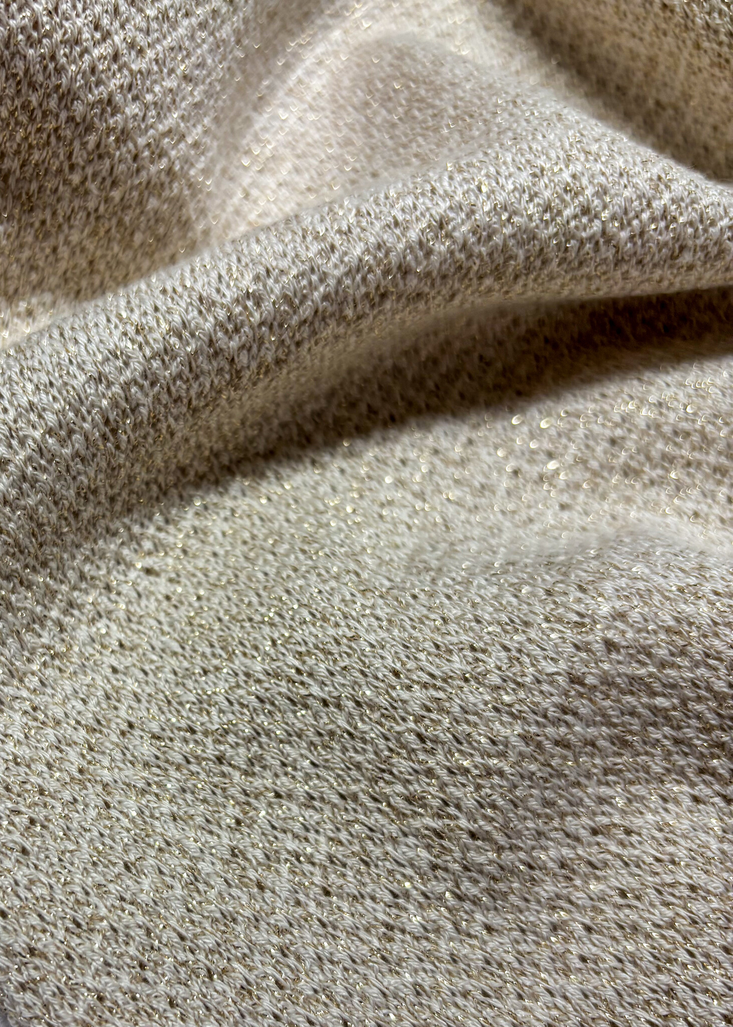A knitted jacquard with lurex (glitter). Perfect for sweaters. This fabric is part of the communion collection.