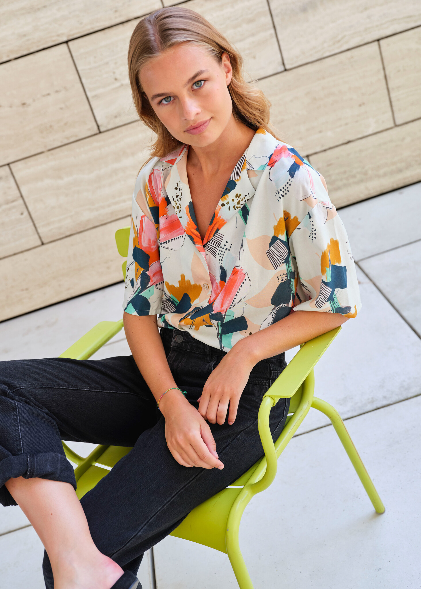 Este is a pattern with which you can make two versions of a shirt blouse with buttons. The model is oversized with slightly dropped shoulders and a back pad with pleats. You can choose between a classic collar or a wrap collar, and between long sleeves with cuffs or wide short sleeves. The front and back facings are also provided for the wrap-over collar.