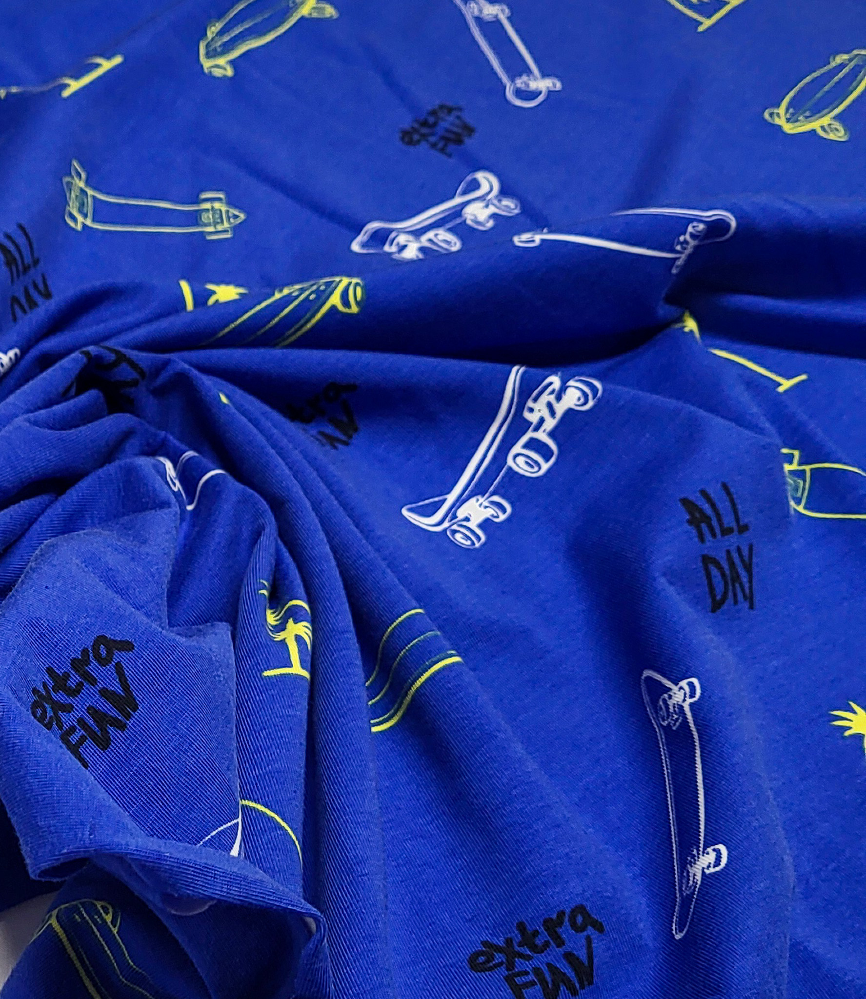 Beautiful quality tricot with skateboards. Deliciously soft. Oeko tex.